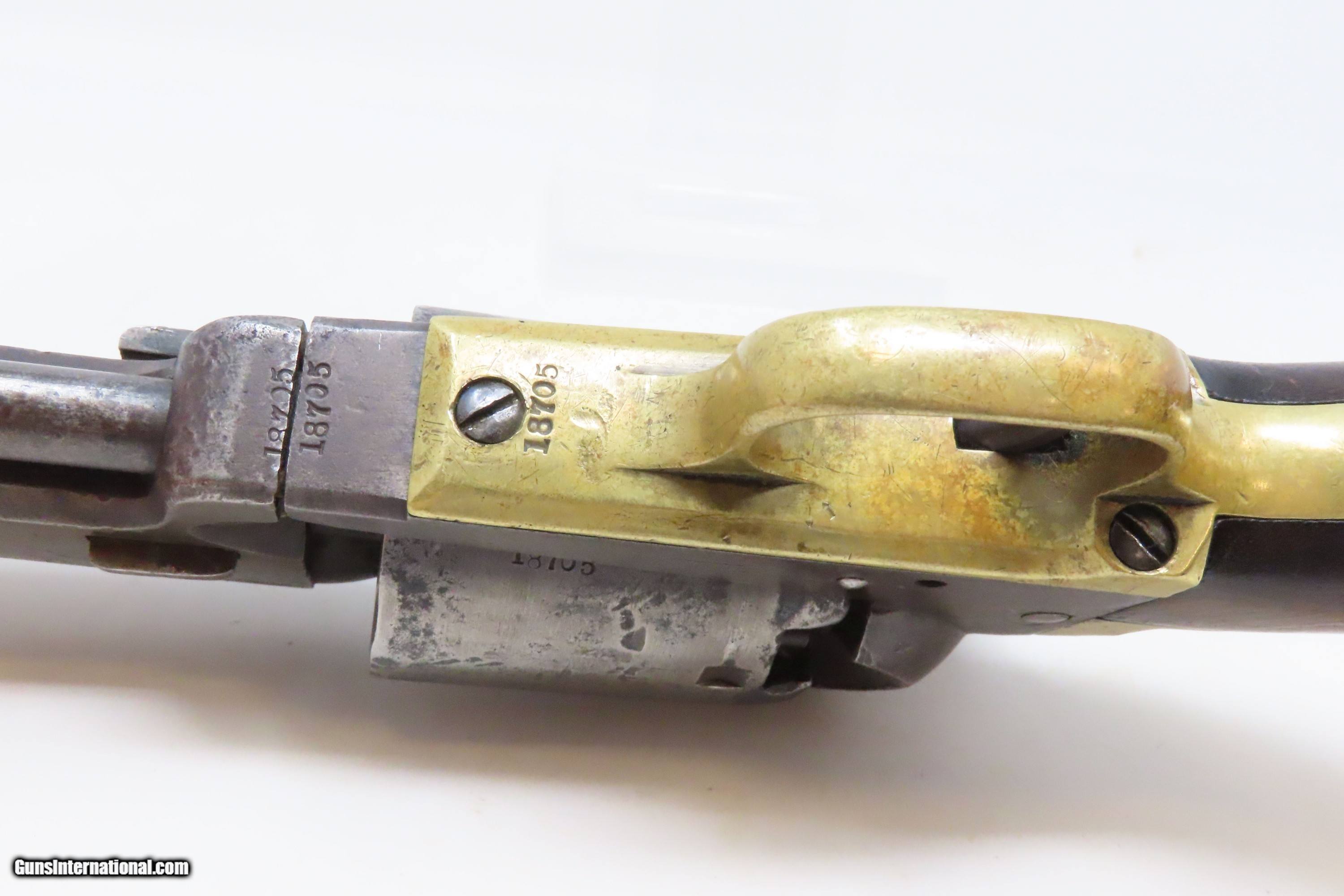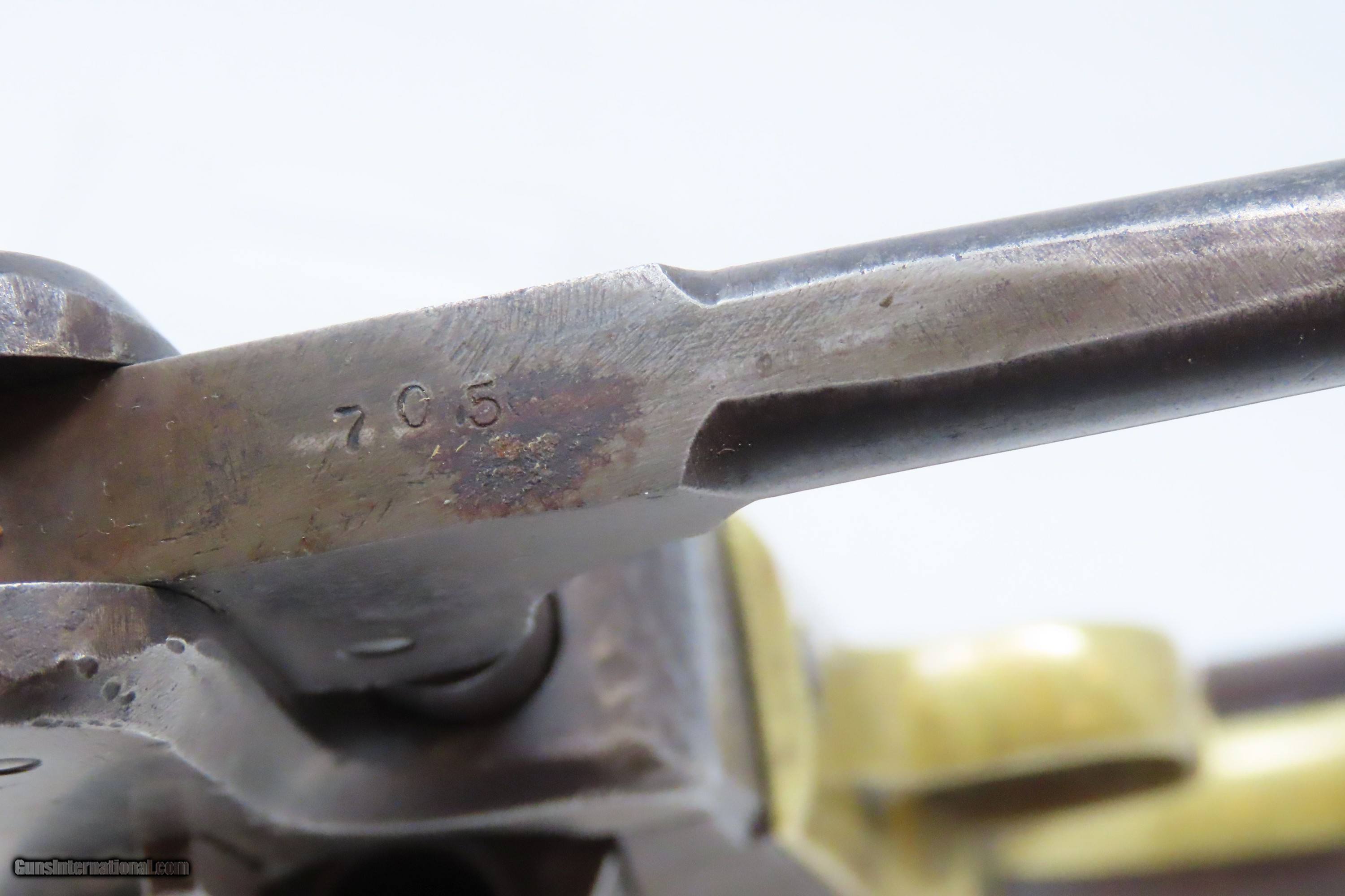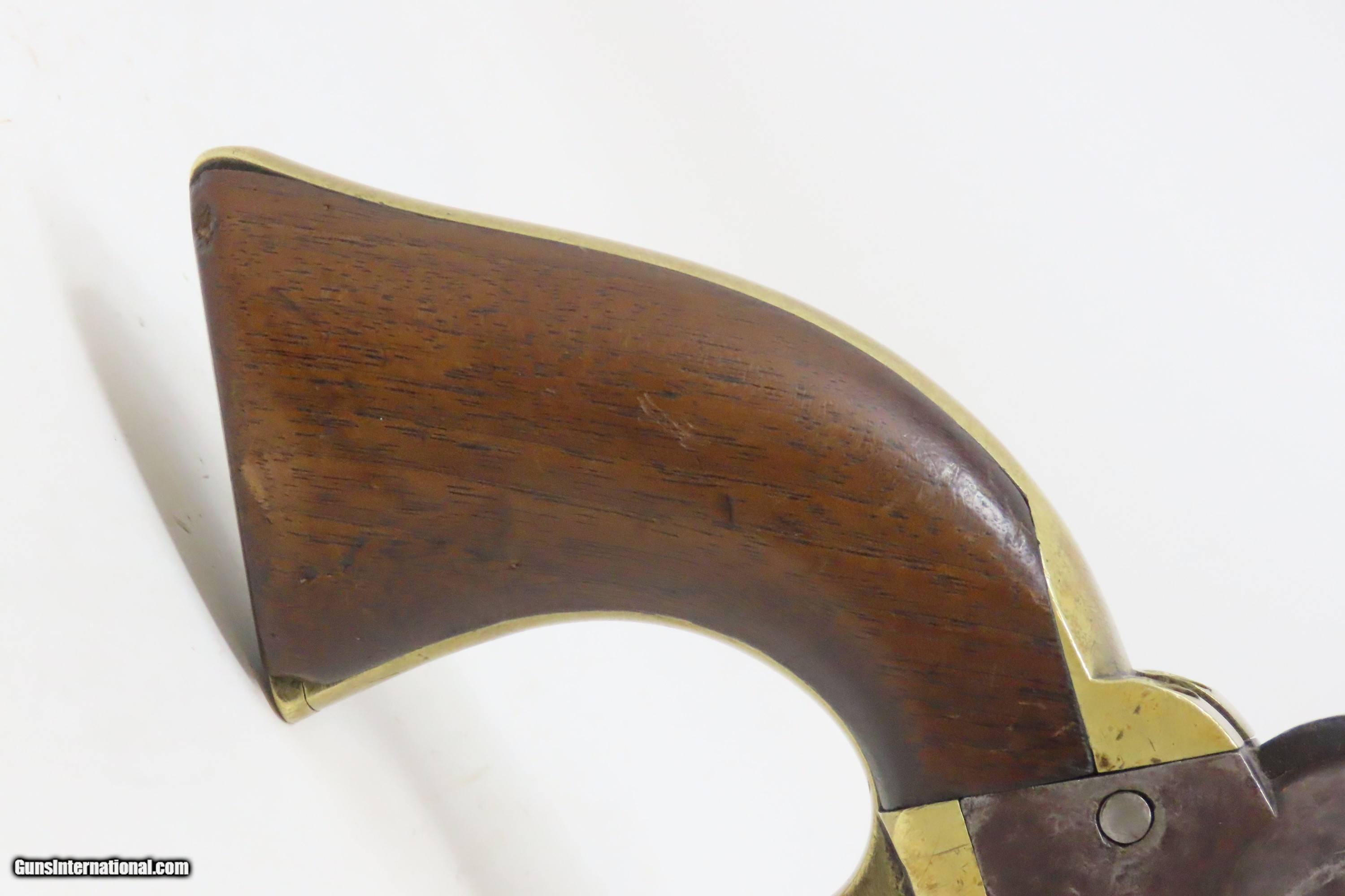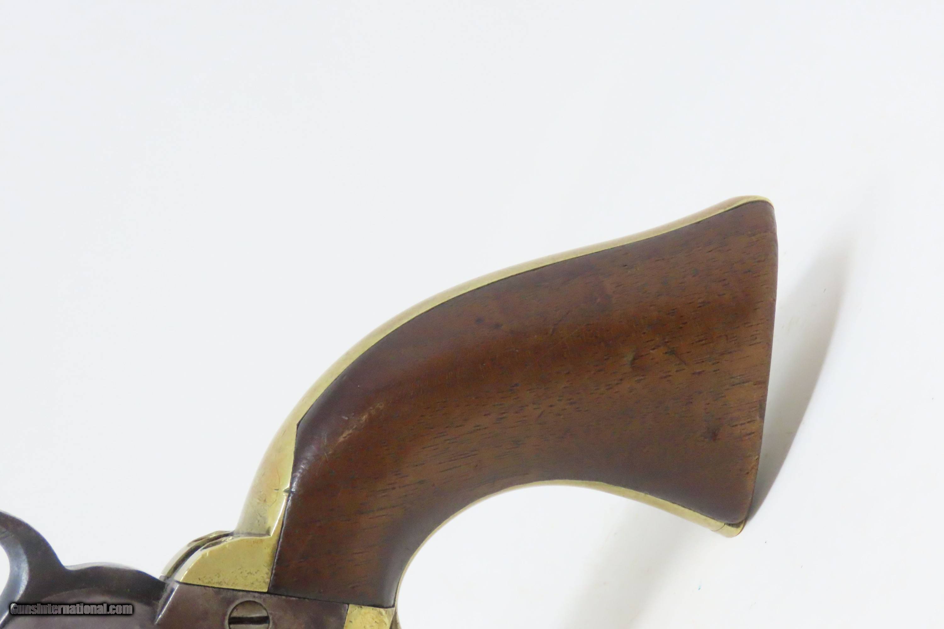 Description: KY 1st CAVALRY MEADE COUNTY Antique COLT DRAGOON .44 Revolver CIVIL WAR CSA 3rd Model Made in 1860 Here we present an antique Colt 3rd Model Dragoon, manufactured in 1860 in Hartford, Connecticut. Only 10,500 of this model were produced. The Third Model was first offered in 1851 and continued production through 1861, for a total of 10,500. The revolver is in .44 caliber and has a part round and part octagonal barrel. Colt’s Dragoons experienced some of the harshest conditions the mid-19th century had to offer, and it is amazing that any survived, in any condition. This pistol was designed for use by horse-mounted rifleman, and it is so much pistol that you will want a horse to carry it for you because of its significant weight. This one would have seen use during the American Civil War. This is a great opportunity to add one of Samuel Colt’s most recognized inventions to your collection, a Civil War era Colt Dragoon! This one has several names marked throughout. The bottom of the grip frame is inscribed with what appears to be the oldest: “G.L. NEAFUS”. George Louis Neafus was born in Meade County, Kentucky circa 1840. His father, George W. Neafus, was the captain of a steamer called the Tishomingo, which operated on the Ohio River stopping at Owensboro, Evansville, and Henderson and all points between. George L. would have been 21 years of age when the Civil War broke out. He enlisted as a Private and mustered into the Confederate Kentucky 1st Cavalry K Company on 1 November 1861. Kentucky was very much a divided state during the war, with loyalties torn between the Union and the Confederacy. According to a newspaper article in The Courier-Journal from 13 December 1862, he and others were homeward bound from Vicksburg, Mississippi, along with many of the Shacklett clan from the KY 1st, some of whom appear to have engaged in guerilla warfare in the area of Meade County. George would become a successful farmer after the war. His wife passed before him and at least one of his sons. At some point he moved to southwest Oklahoma where he continued farming. George Neafus passed away in December of 1925 at the age of 85 and it was lamented in the local paper that he and several other Civil War veterans were gone, both gray and blue. Of the other names, we could locate them to Nobles County, Minnesota, where Wilmont is, but as to how the revolver came to be in their possession remains a mystery. They seemed to have used it as a yearbook of sorts by adding their three names to it: Raymond William Ager, Adam W. Ager, and Tom Carey. Perhaps there is more to be discovered! The overall condition is very good. Gray patina throughout. The numbers match with the exception of the barrel wedge, which is not numbered. The action is excellent. The bore is in good condition: patinated with good rifling. The grip is solid. A very neat piece of history! Own the original! This is a legitimate antique and not a reproduction. Barrel is 8 inches. Caliber: .44 Percussion Overall condition as seen in photos. Very Fast. Very Safe. FREE SHIPPING WORLDWIDE. Delivered directly to your door by express mail! Guaranteed AUTHENTIC & Includes CERTIFICATE OF AUTHENTICITY. ancestryguns $7800 #233154 SOLD Antique: Yes |