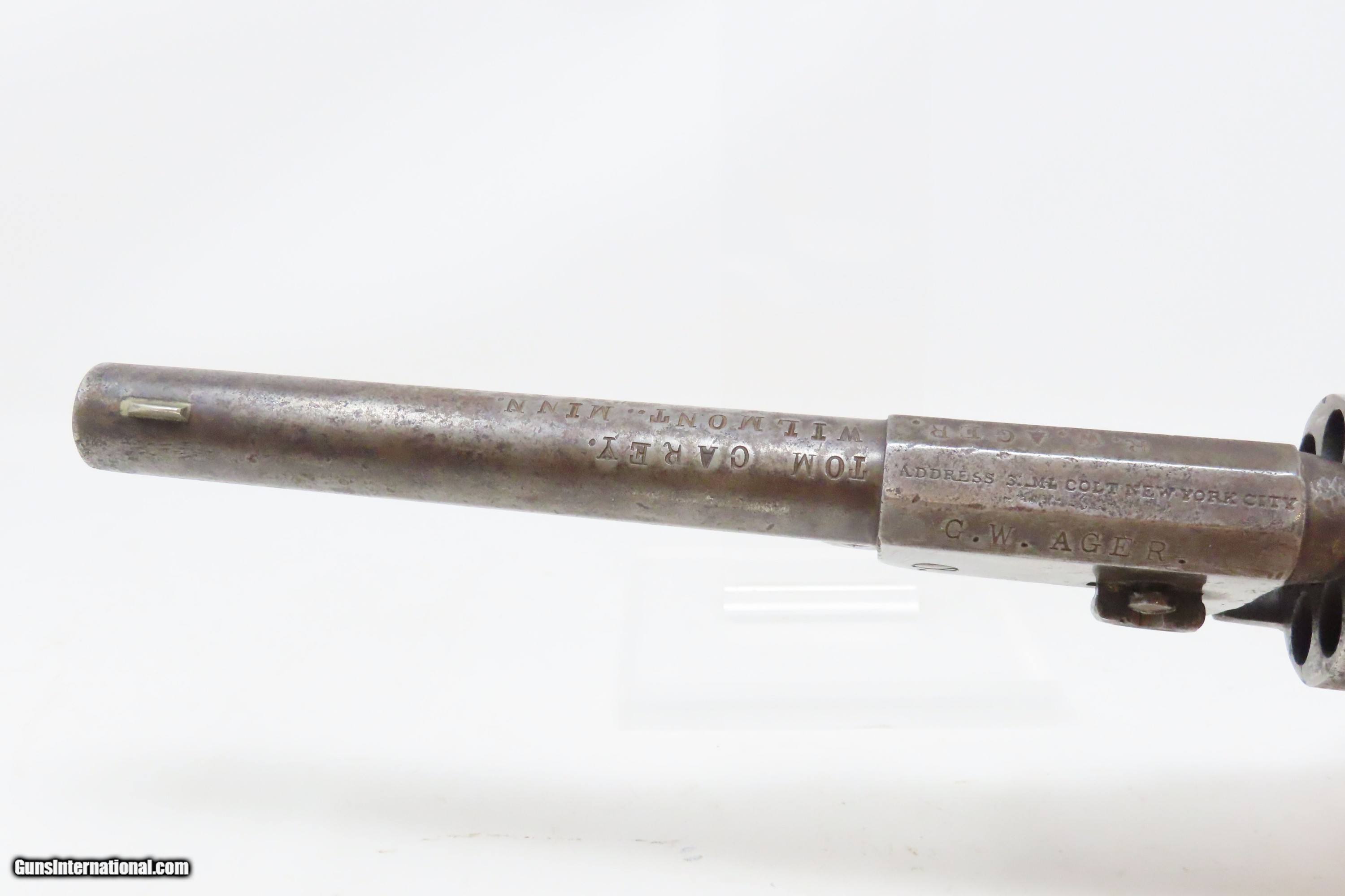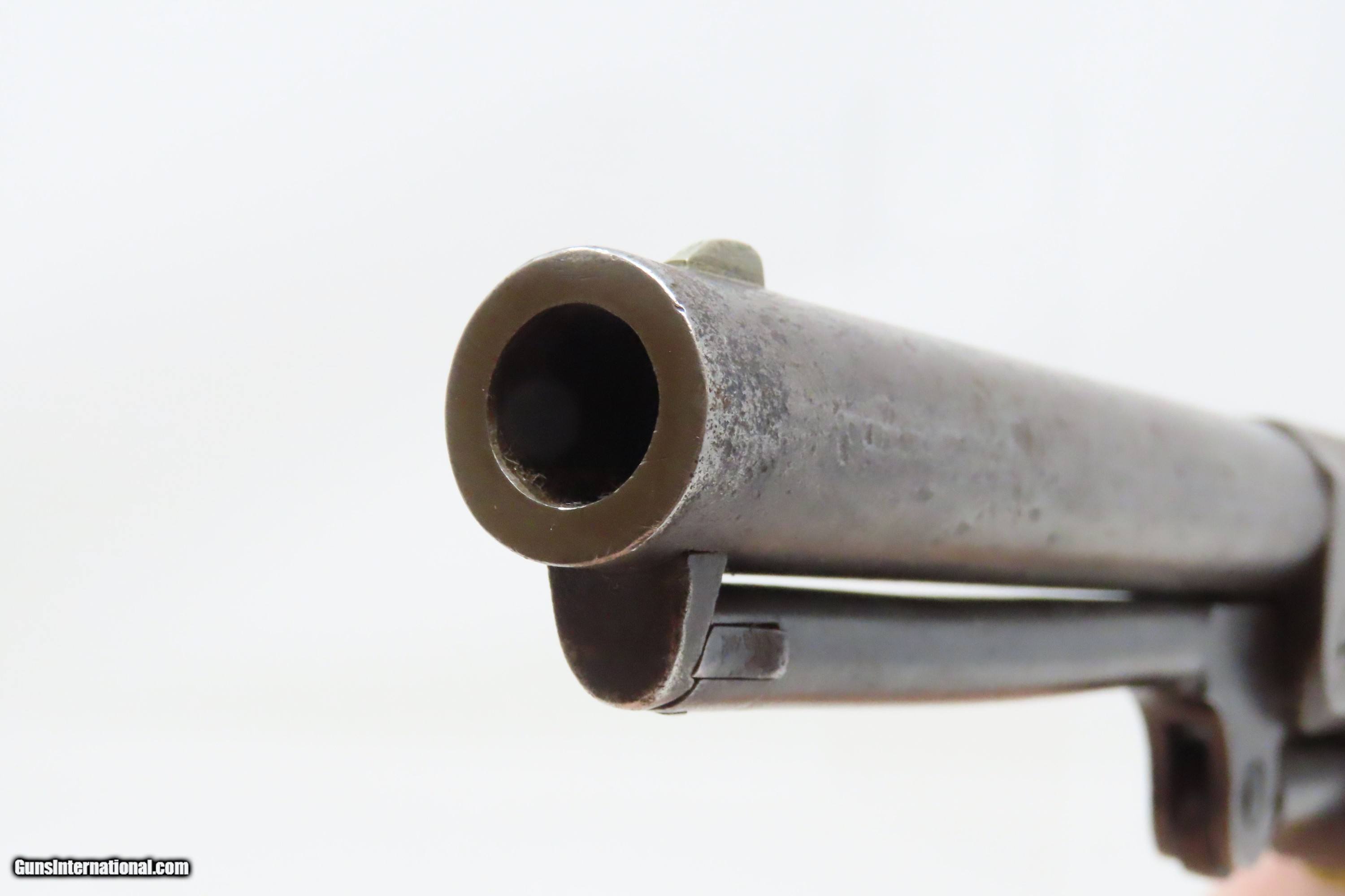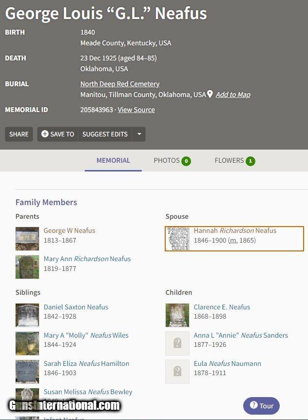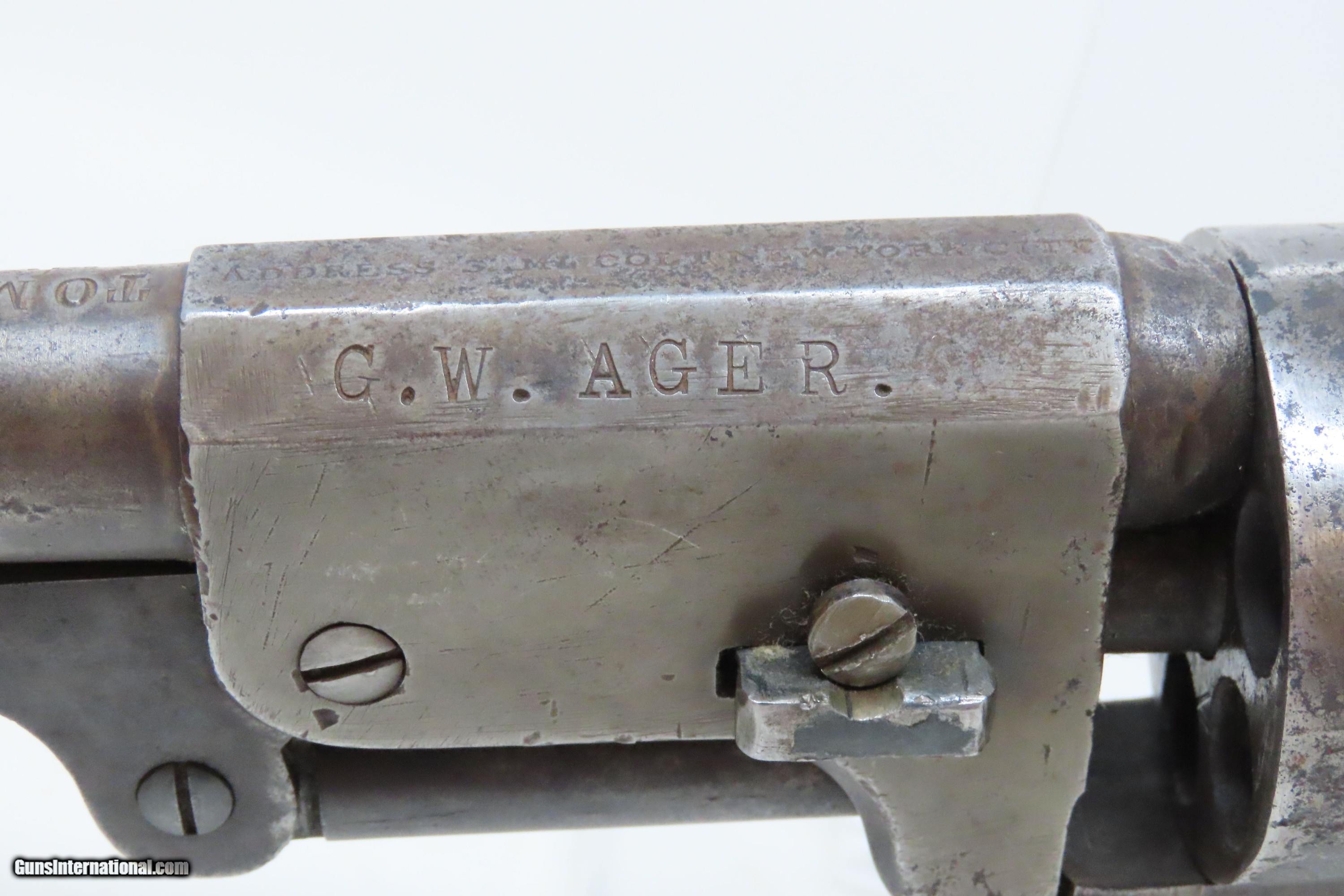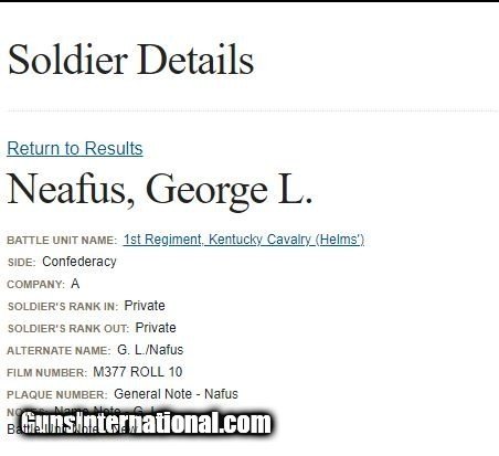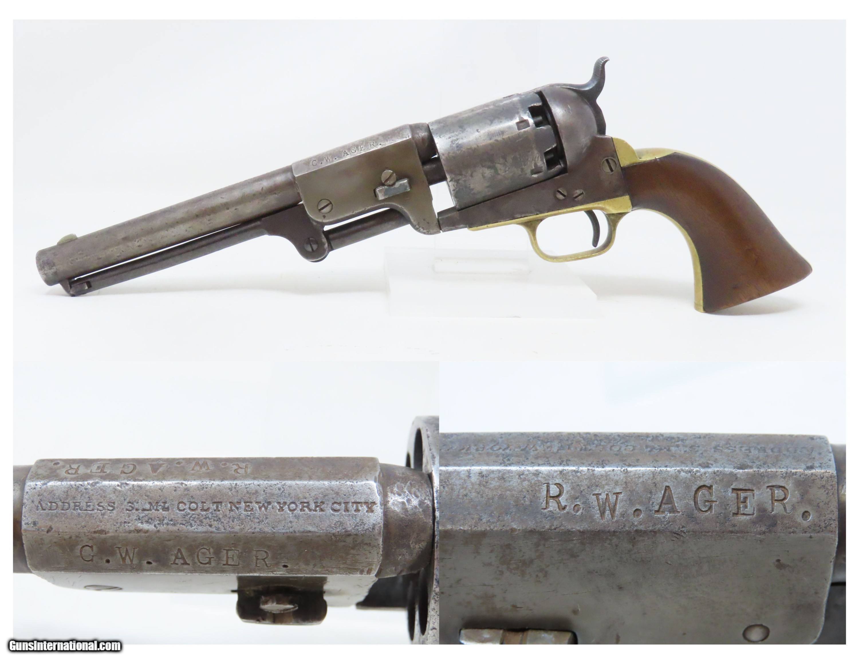 Description: KY 1st CAVALRY MEADE COUNTY Antique COLT DRAGOON .44 Revolver CIVIL WAR CSA 3rd Model Made in 1860 Here we present an antique Colt 3rd Model Dragoon, manufactured in 1860 in Hartford, Connecticut. Only 10,500 of this model were produced. The Third Model was first offered in 1851 and continued production through 1861, for a total of 10,500. The revolver is in .44 caliber and has a part round and part octagonal barrel. Colt’s Dragoons experienced some of the harshest conditions the mid-19th century had to offer, and it is amazing that any survived, in any condition. This pistol was designed for use by horse-mounted rifleman, and it is so much pistol that you will want a horse to carry it for you because of its significant weight. This one would have seen use during the American Civil War. This is a great opportunity to add one of Samuel Colt’s most recognized inventions to your collection, a Civil War era Colt Dragoon! This one has several names marked throughout. The bottom of the grip frame is inscribed with what appears to be the oldest: “G.L. NEAFUS”. George Louis Neafus was born in Meade County, Kentucky circa 1840. His father, George W. Neafus, was the captain of a steamer called the Tishomingo, which operated on the Ohio River stopping at Owensboro, Evansville, and Henderson and all points between. George L. would have been 21 years of age when the Civil War broke out. He enlisted as a Private and mustered into the Confederate Kentucky 1st Cavalry K Company on 1 November 1861. Kentucky was very much a divided state during the war, with loyalties torn between the Union and the Confederacy. According to a newspaper article in The Courier-Journal from 13 December 1862, he and others were homeward bound from Vicksburg, Mississippi, along with many of the Shacklett clan from the KY 1st, some of whom appear to have engaged in guerilla warfare in the area of Meade County. George would become a successful farmer after the war. His wife passed before him and at least one of his sons. At some point he moved to southwest Oklahoma where he continued farming. George Neafus passed away in December of 1925 at the age of 85 and it was lamented in the local paper that he and several other Civil War veterans were gone, both gray and blue. Of the other names, we could locate them to Nobles County, Minnesota, where Wilmont is, but as to how the revolver came to be in their possession remains a mystery. They seemed to have used it as a yearbook of sorts by adding their three names to it: Raymond William Ager, Adam W. Ager, and Tom Carey. Perhaps there is more to be discovered! The overall condition is very good. Gray patina throughout. The numbers match with the exception of the barrel wedge, which is not numbered. The action is excellent. The bore is in good condition: patinated with good rifling. The grip is solid. A very neat piece of history! Own the original! This is a legitimate antique and not a reproduction. Barrel is 8 inches. Caliber: .44 Percussion Overall condition as seen in photos. Very Fast. Very Safe. FREE SHIPPING WORLDWIDE. Delivered directly to your door by express mail! Guaranteed AUTHENTIC & Includes CERTIFICATE OF AUTHENTICITY. ancestryguns $7800 #233154 SOLD Antique: Yes |