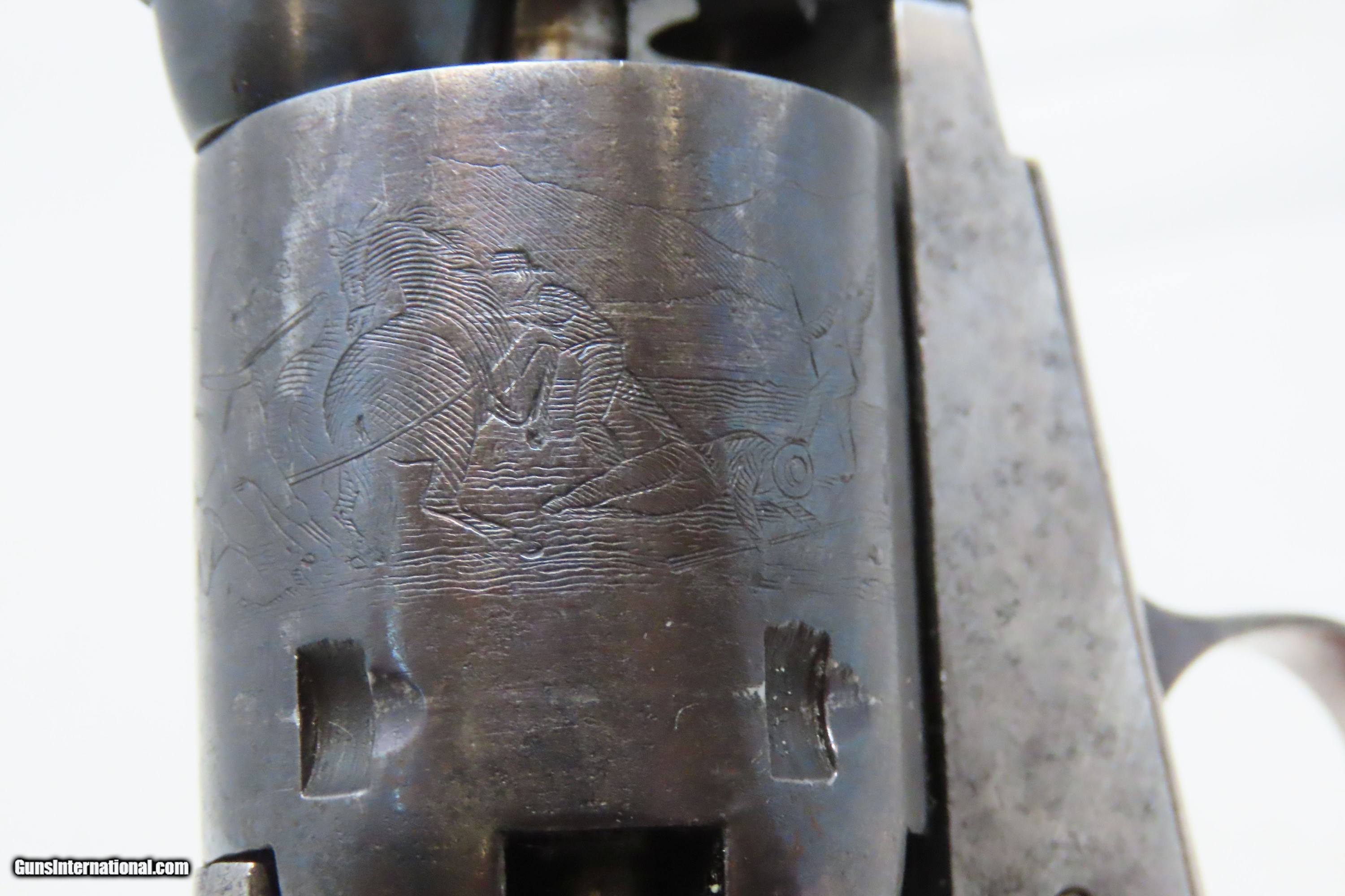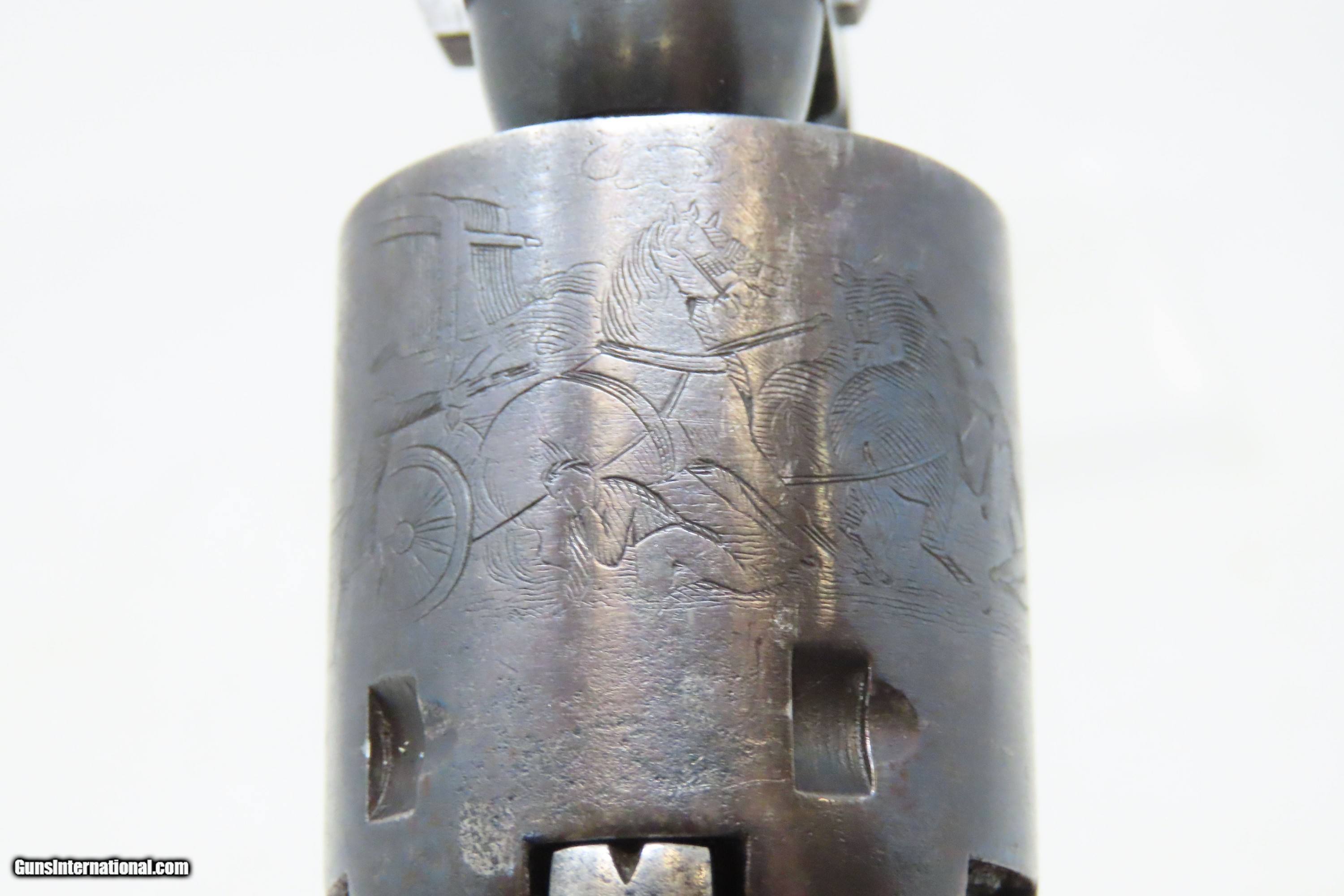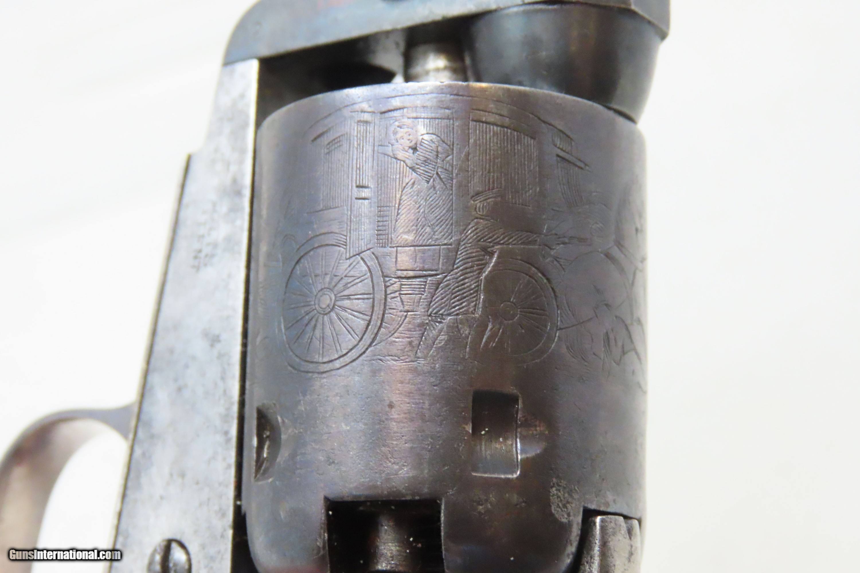 Pre-CIVIL WAR Cased Antique COLT Model 1849 POCKET w Robbery Cylinder Scene Inscribed to “JAs MERCER” on the Frame