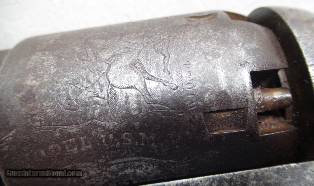 Description: Colt Model 1848 Percussion Revolver; Serial No. 14451; .44 Caliber; 7 ½” Barrel; Outstanding Wood and Brass with a Nice Grey Patina Finish; 100% Legible Cylinder Scene; Signed by “W.L. Ormsby”; Fantastic 170 Year-Old Civil War Era Colt Dragoon; See All Photos for Condition; No Texts; Call (254)541-5765 or Email Only; PERSONAL PROPERTY of Harold Wieser; NOTICE: We Do Not Do Any Consignments - All Items Listed are Owned by Us - NO SALES to New Jersey or New York City - Antiques Only to Massachusetts and California; NOTE: All Modern Firearms Must Go to FFL Dealer who will Accept From Individual with Texas Driver License; Price: $4,975 + $75 S&H; Payment Address: Harold Wieser - 1466 U.S. Hwy 77 - Rosebud, TX 76570; SEND PAYMENTS VIA USPS PRIORITY MAIL; BEWARE of SCAMS!!! - DO NOT SEND MONEY or CORRESPONDENTS ELECTRONICALLY UNLESS YOU HAVE SPOKEN to HAROLD WIESER FIRST! (254)541-5765 Antique: Yes Manufacturer: Colt Model: 1848 Serial Number: 14451 Price: $4,975.00 Contact Seller |