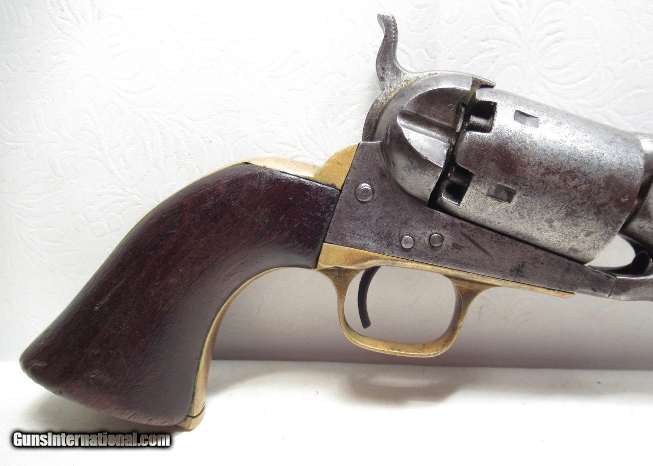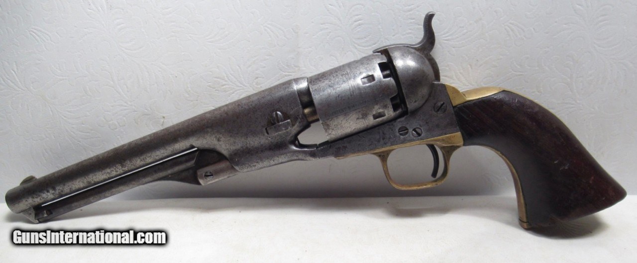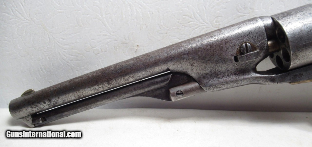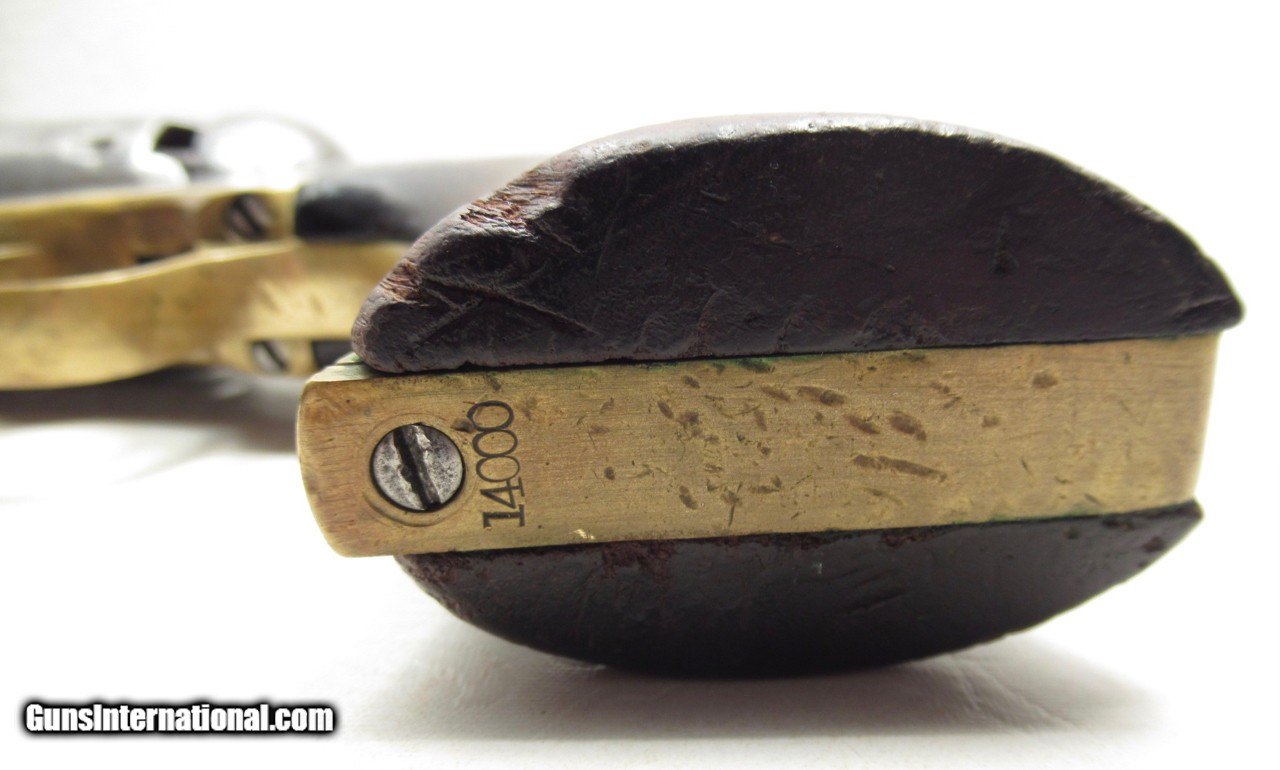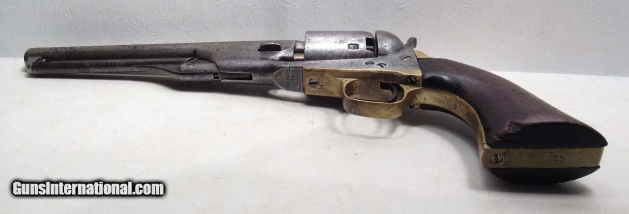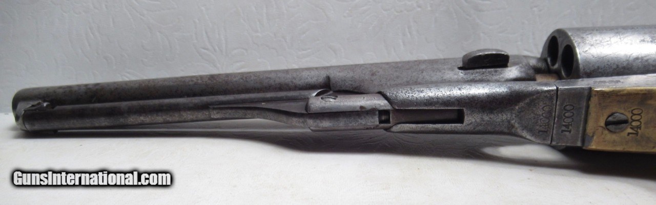 Description: Colt Model 1861 Navy Revolver; Serial No. 14000; Made 1863; 36 Caliber with 7 ½” Round Barrel; 100% Original and Matching - Including Numbered Wedge; Metal has Worn to Gray Patina; Some Original Varnish on Wood Grips Remains; Great Action and Very Strong Bore with light even chattering; Probable Civil War Use; See All Photos for Condition; No Texts; Call (254)541-5765 or Email Only; PERSONAL PROPERTY of Harold Wieser; NOTICE: We Do Not Do Any Consignments - All Items Listed are Owned by Us - NO SALES to New Jersey or New York City - Antiques Only to Massachusetts and California; Price: $2,975 + $45 S&H Via USPS PRIORITY MAIL; Payment Address: Harold Wieser - 1466 U.S. Hwy 77 - Rosebud, TX 76570; SEND PAYMENTS VIA USPS PRIORITY MAIL; BEWARE of SCAMS!!! – DO NOT SEND MONEY or CORRESPONDENTS ELECTRONICALLY UNLESS YOU HAVE SPOKEN to HAROLD WIESER FIRST! 254-541-5765 SOLD Antique: Yes Manufacturer: Colt Model: 1861 Navy Serial Number: 14000 |