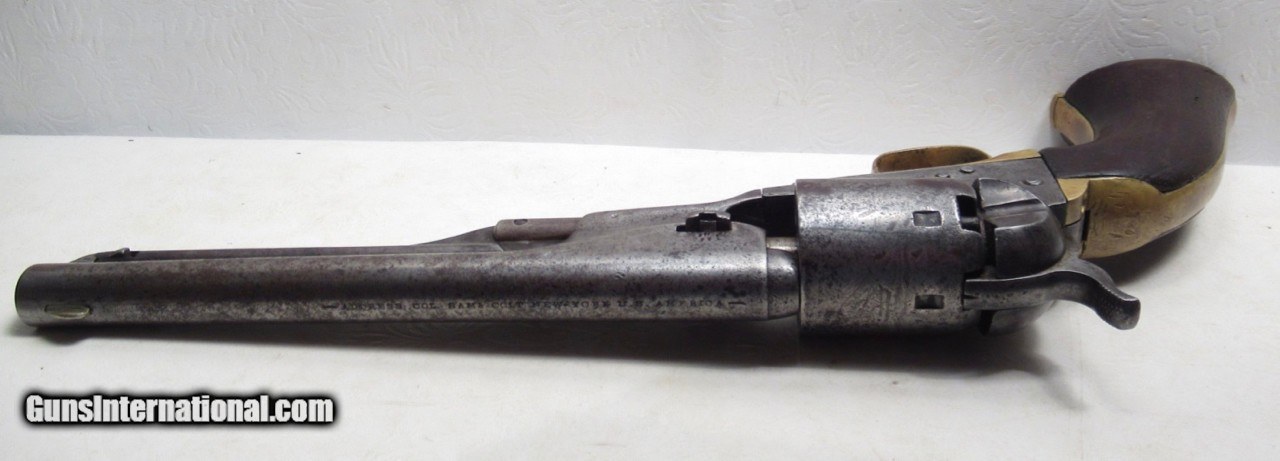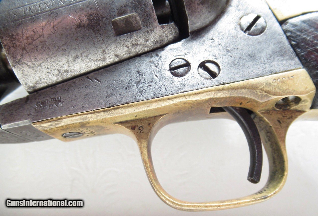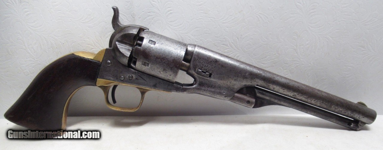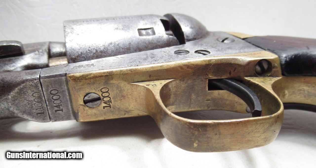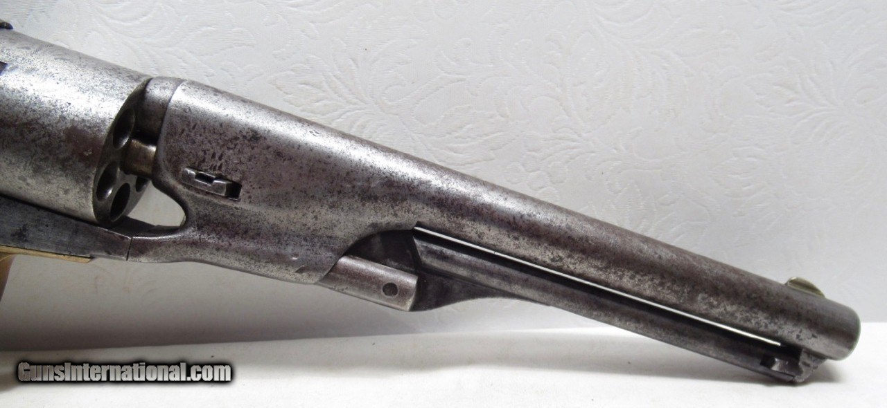 Description: Colt Model 1861 Navy Revolver; Serial No. 14000; Made 1863; 36 Caliber with 7 ½” Round Barrel; 100% Original and Matching - Including Numbered Wedge; Metal has Worn to Gray Patina; Some Original Varnish on Wood Grips Remains; Great Action and Very Strong Bore with light even chattering; Probable Civil War Use; See All Photos for Condition; No Texts; Call (254)541-5765 or Email Only; PERSONAL PROPERTY of Harold Wieser; NOTICE: We Do Not Do Any Consignments - All Items Listed are Owned by Us - NO SALES to New Jersey or New York City - Antiques Only to Massachusetts and California; Price: $2,975 + $45 S&H Via USPS PRIORITY MAIL; Payment Address: Harold Wieser - 1466 U.S. Hwy 77 - Rosebud, TX 76570; SEND PAYMENTS VIA USPS PRIORITY MAIL; BEWARE of SCAMS!!! – DO NOT SEND MONEY or CORRESPONDENTS ELECTRONICALLY UNLESS YOU HAVE SPOKEN to HAROLD WIESER FIRST! 254-541-5765 SOLD Antique: Yes Manufacturer: Colt Model: 1861 Navy Serial Number: 14000 |