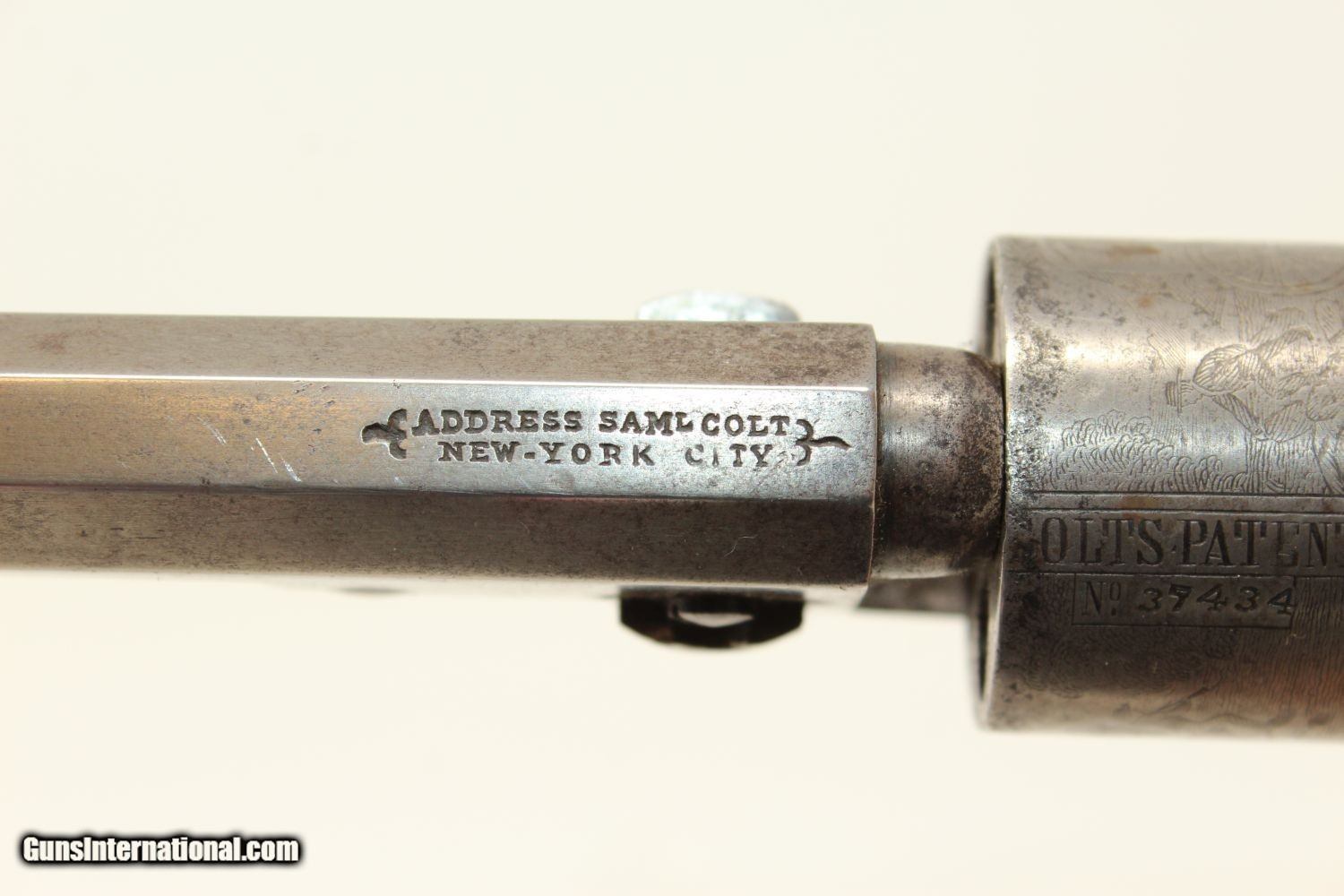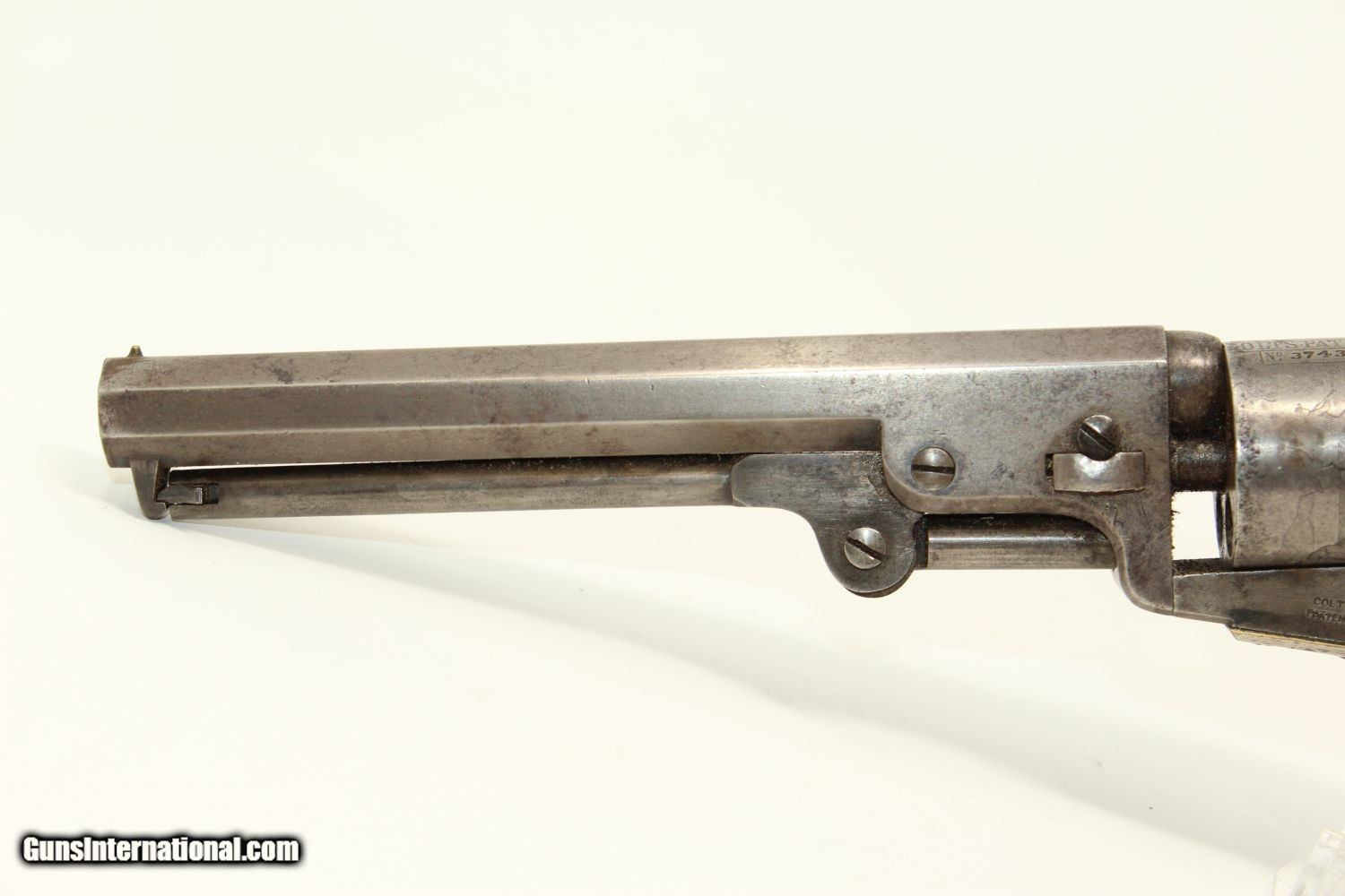 Description: SCRIMSHAW IVORY Colt 1849 Belonged to SEA CAPTAIN WHALING, Sealing Ship Captain, Attacked by the Alabama! Here we present an antique percussion Colt 1849 Pocket Revolver, made in 1852 in Hartford, Connecticut and was owned by Captain R. H. Glass of New London, Connecticut. Captain Glass was a whaler and sealer and the owner of the ship “Francis Allyn” based in New London, Connecticut in the second half of the 19th century. He was born July 21, 1825 on the Island of Tristin de Achuna (Acuña), which is between the continents of South America and Africa in a very remote part of the Atlantic Ocean. In fact, it is the most remotely inhabited archipelago in the world and was inhabited by as few as 50 people in the 19th Century. As a legal petition from 1883, described them, the inhabitants were “mainly the descendants of runaway or ship-wrecked mariners, who live thereon without any laws, officers, government, protection, or flag.” Glass came to the US in 1849. The legal petition from which this information comes to us is from a rather interesting legal case. During the Civil War, British ship builders made and sold vessels to the Confederacy and these were used for piracy and smuggling. The most famous of these raiding ships was called the Alabama, and it devastated many ships. The United States sought damages after the war since Britain was supposed to be neutral during the conflict. A treaty was signed and $15 million was the amount of the settlement. This commission was set up so that plaintiffs could seek compensation out of this pool of money. Robert H. Glass’s petition states that his ship, the Alert, was attacked near the island of Flores, Azores, just West of Portugal on September 9, 1862. The cargo and ship (the bark Alert) was seized or destroyed. Finally, Captain Glass also has the distinction of having Glass Point named for him in the Shetland Islands after he rescued a stranded survivor from a sealing ship from Potter Cove in the Shetlands. This revolver appropriately features scrimshaw ivory grips with “CAPT./R.H. GLASS” and “NEW LONDON” on the bottom of the grip. The left side of the grip features an eagle while the right features a bark. The grip frame is silver plated. There is an “X” under the serial number on the trigger guard, denoting a special piece. The case has a silver plaque with the same inscription and is full of accoutrements to include lead ingots, lead balls, a small powder flask, an original Colt’s patent .31 caliber bullet mold, and a tin of caps. The overall condition is near fine. 75% of the silver plate remains. The markings are clear. The numbers match. The cylinder scene is quite clear. The scrimshaw is superb. The grip is in fine shape. The bore is very good with sharp rifling. The action is excellent. The case is in fine condition. Here is a wonderful example of a Colt Model of 1849 with provenance to a sea captain of some renown! Own the original! This is a legitimate antique and not a reproduction. Barrel is 5-7/8 inches. Caliber: .31 Overall condition as seen in photos. Very Fast. Very Safe. FREE SHIPPING WORLDWIDE. Delivered directly to your door by express mail! Guaranteed AUTHENTIC & Includes CERTIFICATE OF AUTHENTICITY. ancestryguns $9300 #190186 SOLD Antique: Yes |
