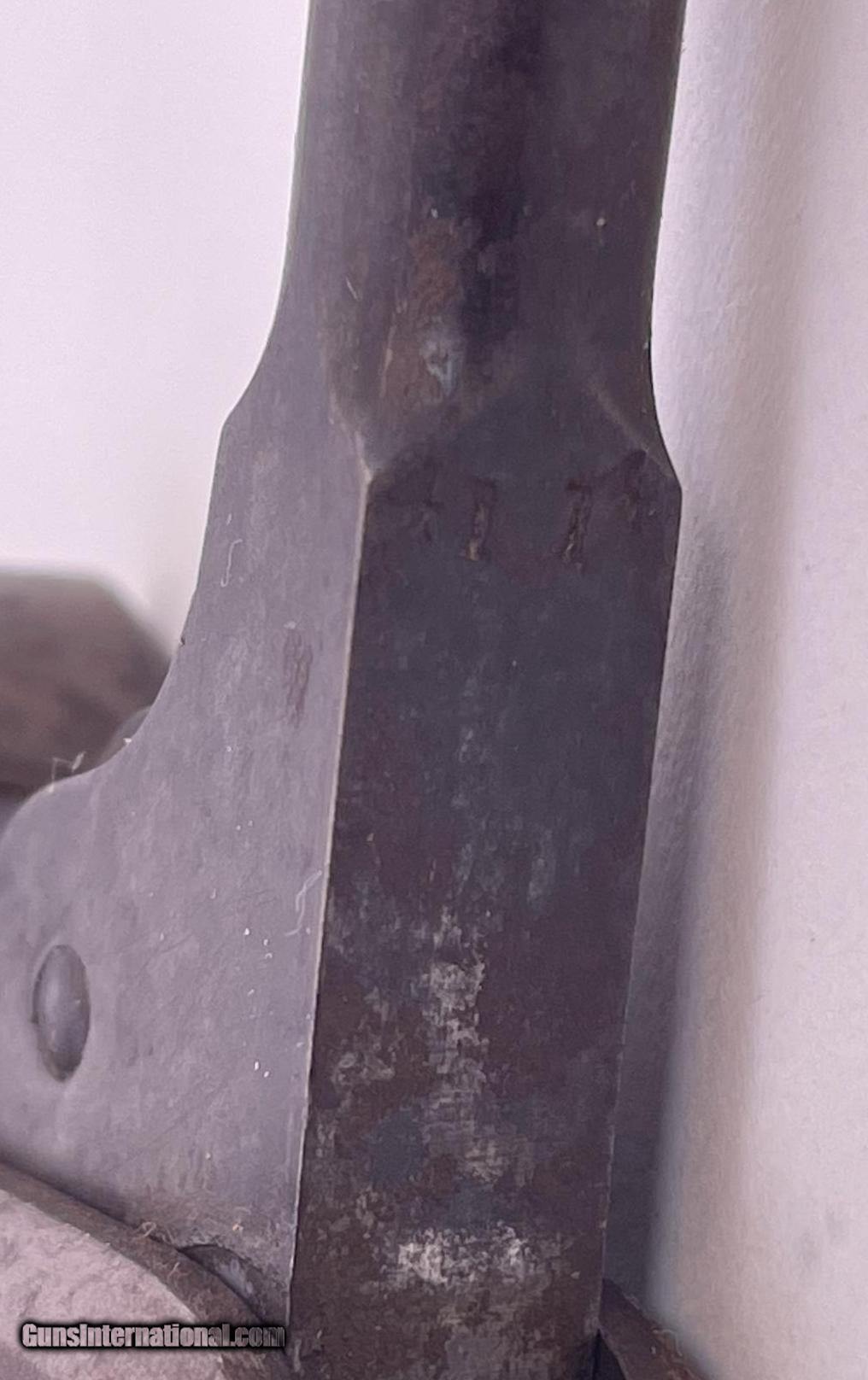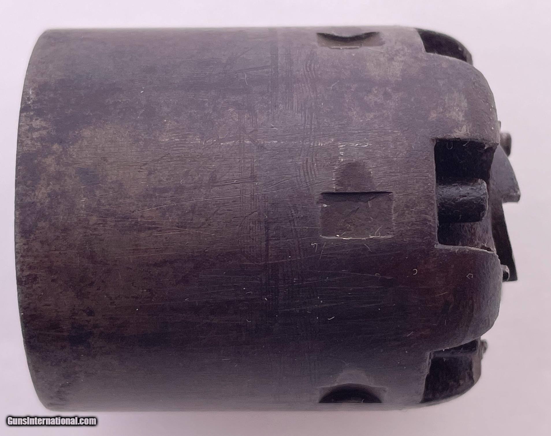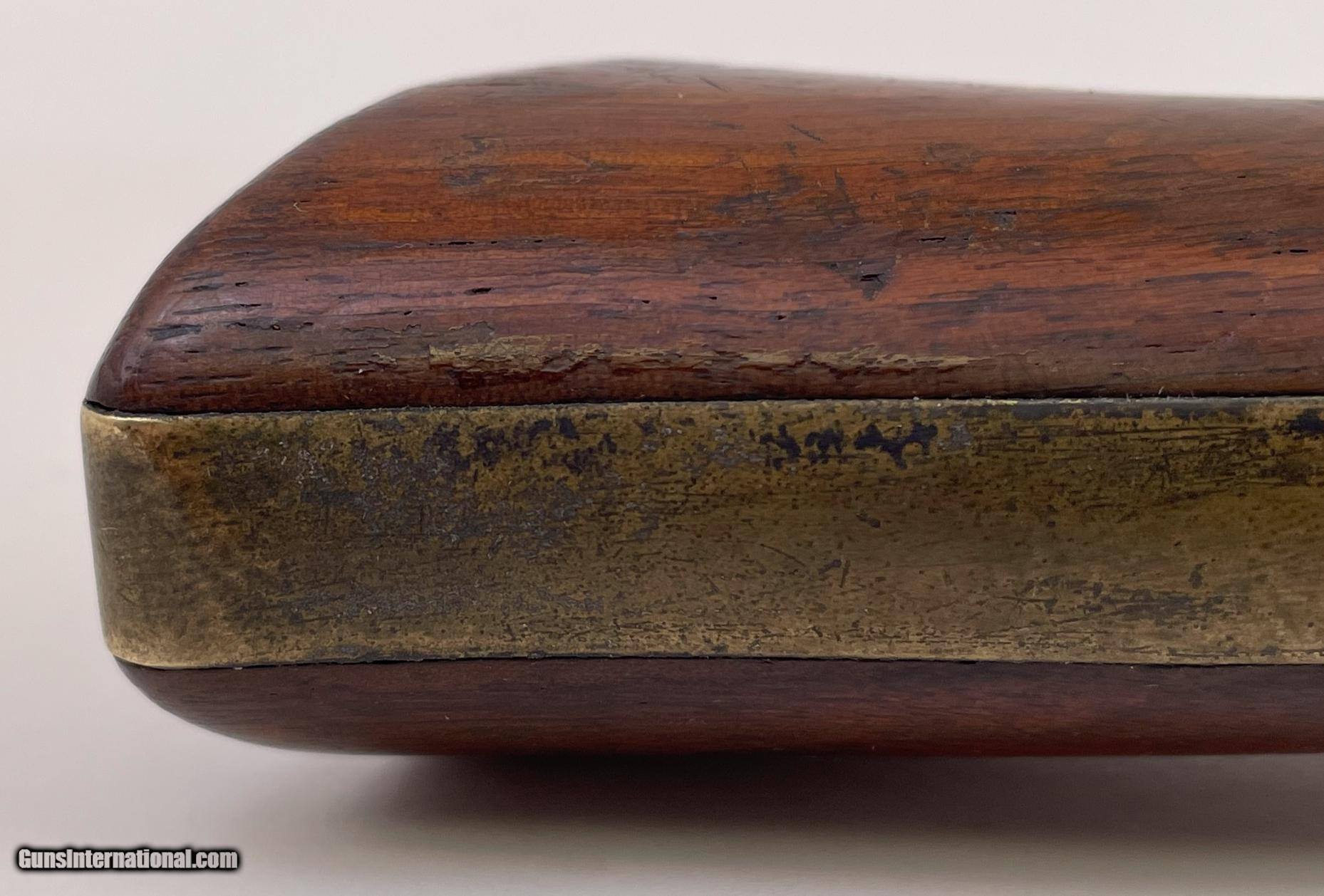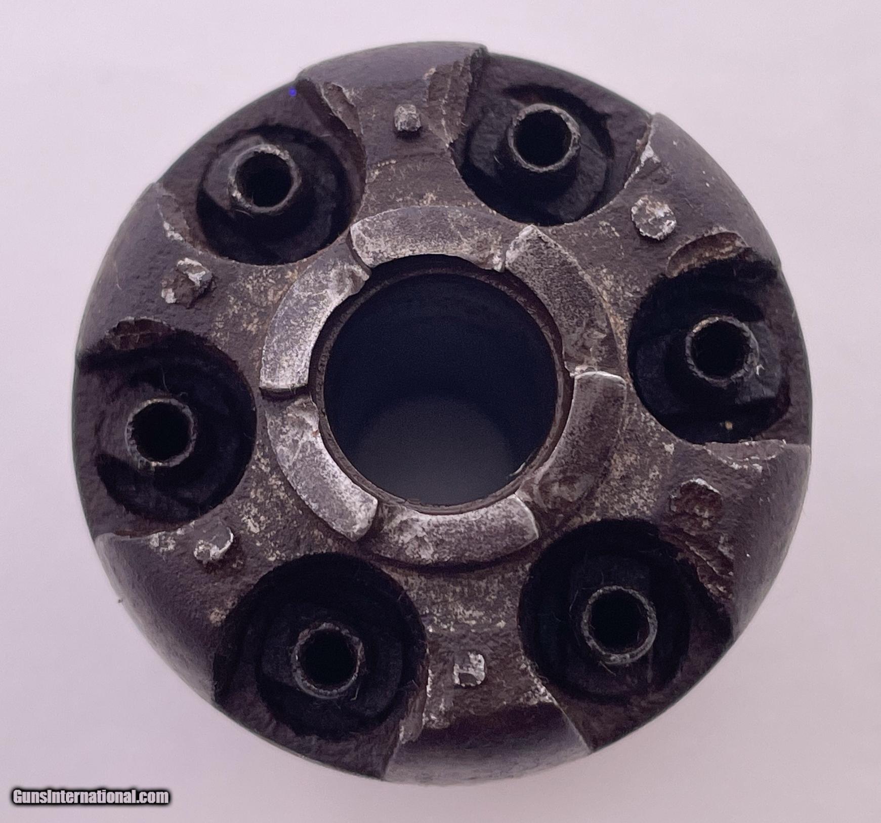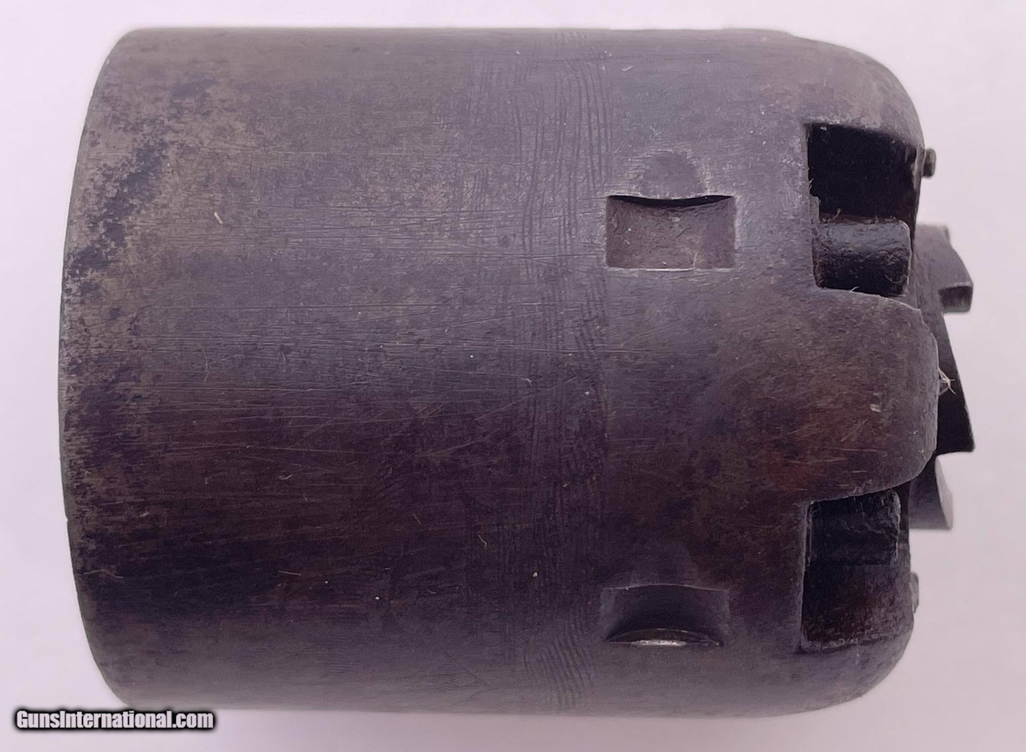 Description: This gun was produced in 1851 during the overlap period when Colt was still producing some 2nd Model Squareback Navies at the same time as the early 3rd Model guns. The letters" D C C " are engraved on the right barrel lug. See photos for condition. SOLD Antique: Yes Handgun Caliber: .36 Manufacturer: Colt Model: 1851 Navy Serial Number: 4114 Barrel Length: 7.5 |
