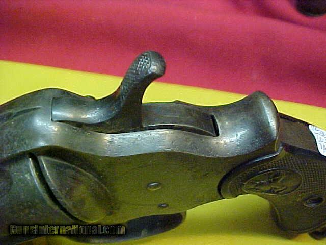 Description: #4998 Colt 1878 D/A 4-3/4”x44WCF, manufactured in the 36XXX serial range (1897), VG bore and action is working properly on both S/A and D/A modes. There is some thin traces of original blue, but mostly this is a brown gun with scattered light/moderate pitting ..and some deeper pitting in a few spots. It has good hard rubber grips with moderate wear, and still has the lanyard intact. It does have the correct two-line barrel address and the much desired COLT FRONTIER SIX-SHOOTER barrel logo. Like its earlier Single Action brother gun, this was “the short-barreled bad forty-four” that Marty Robbins sang about in his song, “Mr. Shorty” (well worth listening to as it is a very “descriptive” song; look it up on the Internet). Good+/VG. $1175 SOLD Antique: Yes |