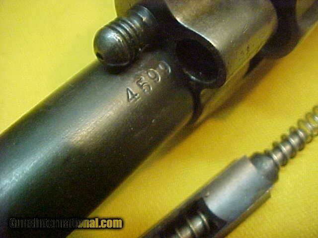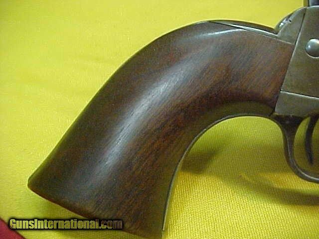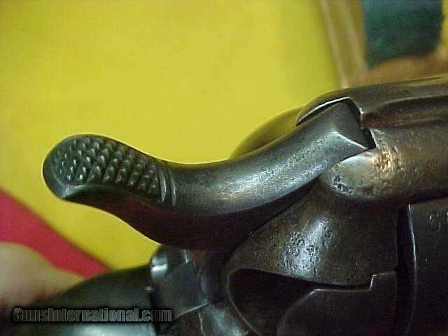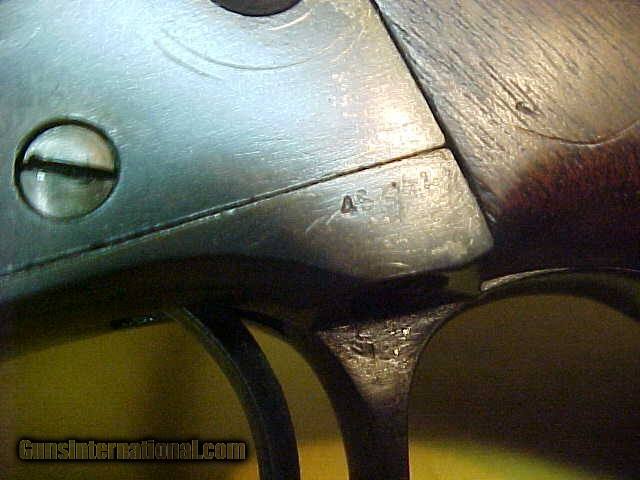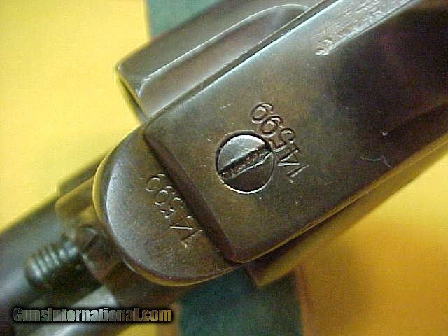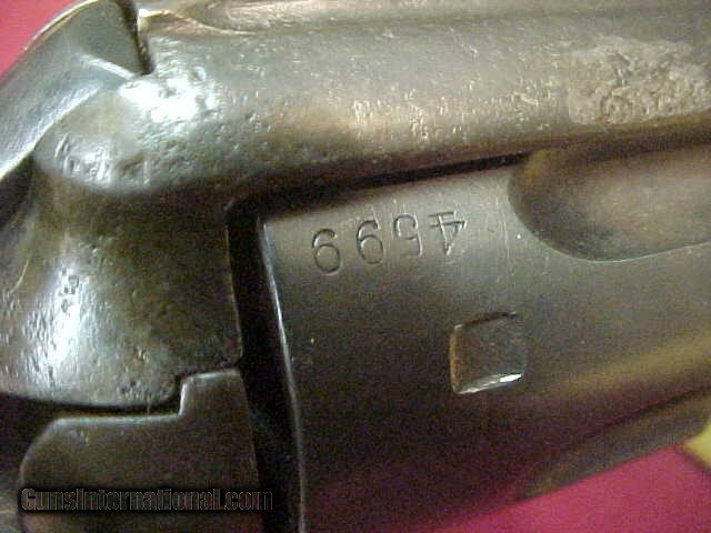 Description: #5011 Colt S/A 7-1/2”x45COLT, 14XXX range (1875), fine bore with just some very light leading, and a smooth, tight action with all four clicks on the hammer. The metal is really nice for its age and well above average for what is basically a no-finish gun, and it has an even thin brown patina with almost no pitting or serious wear anywhere, just a very light roughless around the front sight. The one-piece original wood grips have been lightly cleaned slightly undersize but otherwise are really fine grips. The overall look is well above what one usually sees for such an early old cowboy Colt. However suffice to say this (…and this is a VERY important fact!!)…that since many, if not most Single Actions have been enhanced and/or “juiced-up” to some degree (especially the very highly sought after and desirable militaries), that one should always take the possibility of some degree upgrading from the many previous owners and this gun has been valued and priced with that possbility in mind, although in MY opinion, aside of the grips, this revolver looks pretty danged good and I don’t see anything that looks incorrect. There are a lot of photos to this VERY desirable and very early Civilian S/A, so if they all don’t load (there are about 20 in all), just email me and I will forward them to you by return email. This is a real opportunity to own a real early piece of the most coveted of all of the many Wild West frontier cartridge handguns, and one of the fastest value appreciator in the antique gun field. VG+/VG++ $4395 SOLD Antique: Yes |