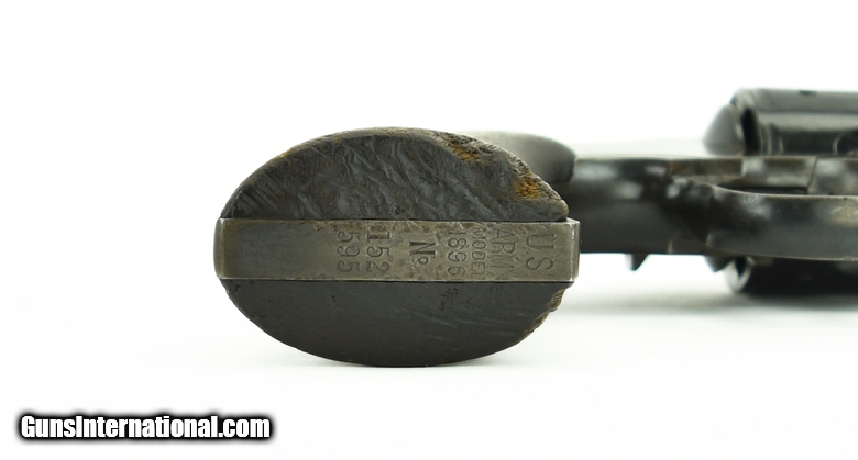 Description: Colt 1896 .38 Colt caliber revolver with a 6” barrel. Metal has 35% of the finish. Bore is excellent. Grips are wood with nice sharp cartouches. Ejector rod has pitting. SOLD Antique: Yes |
