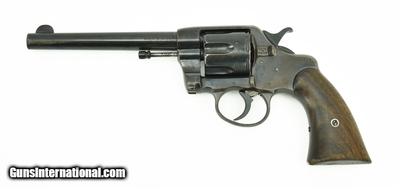 Colt 1896 .38 Colt caliber revolver with a 6” barrel. Metal has 35% of the finish. Bore is excellent. Grips are wood with nice sharp cartouches. Ejector rod has pitting.