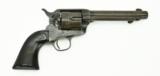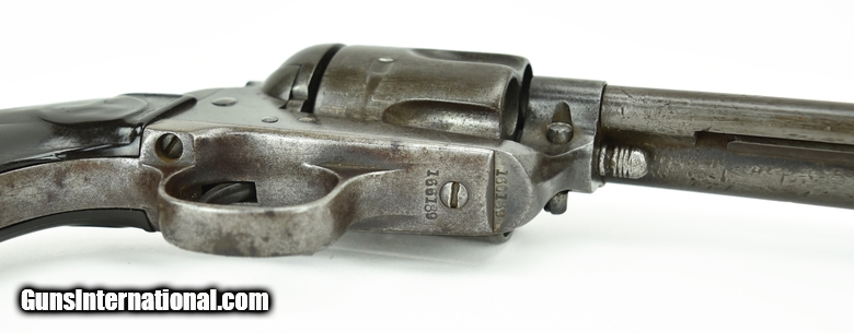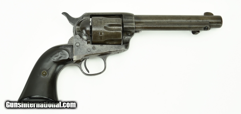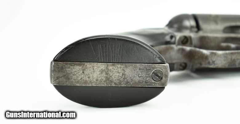 Description: Colt Blackpowder Single Action. Manufactured approximately 1896. Gun has matching numbers. The action is crisp and indexes perfectly. The bore has rifling but not much. Bore is well worn. Grips are well worn. This pistol had to have been used by some old cowboy who used it every day. You can’t wear grips this smooth or wear out the bore this much without a heck of a lot of real daily use. The amazing thing about the grips is that for being worn smooth they are not cracked or even chipped! You always hear the expression “if it could only talk”. After 41 years of selling single actions, I do wish this one could talk. SOLD Antique: Yes |