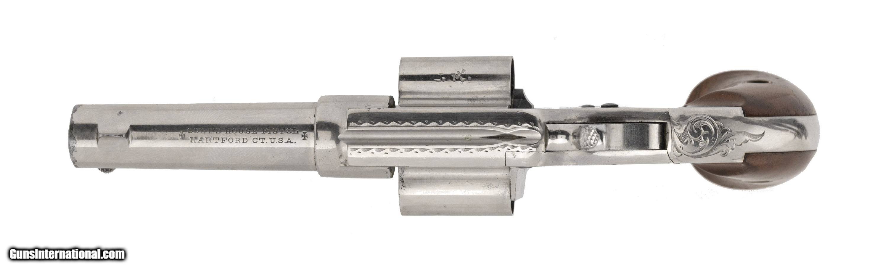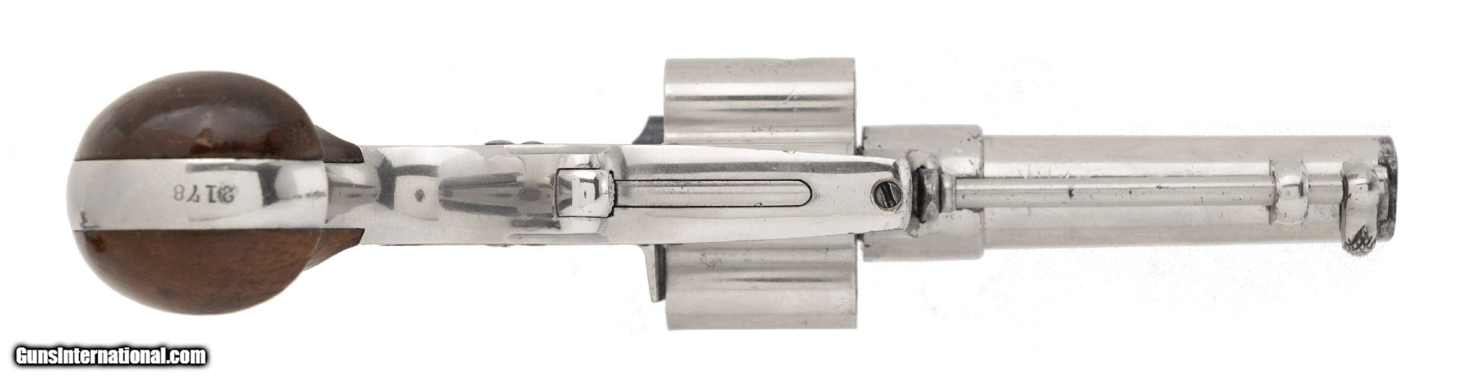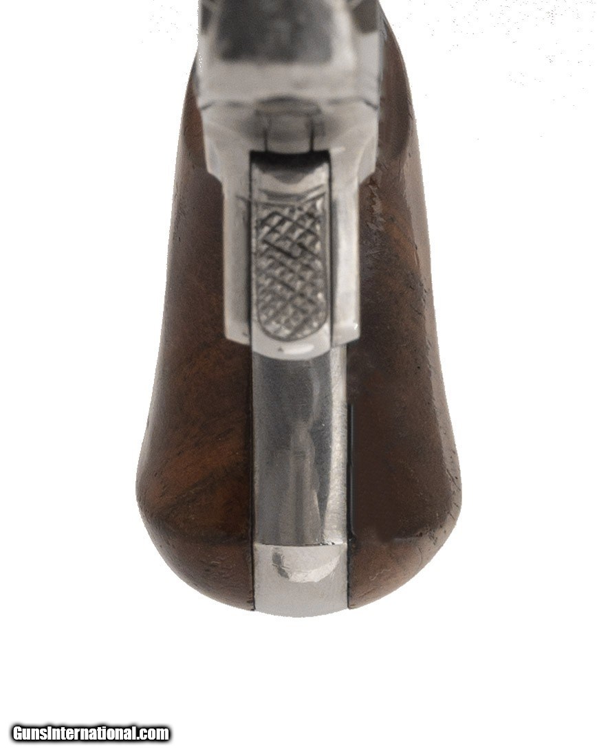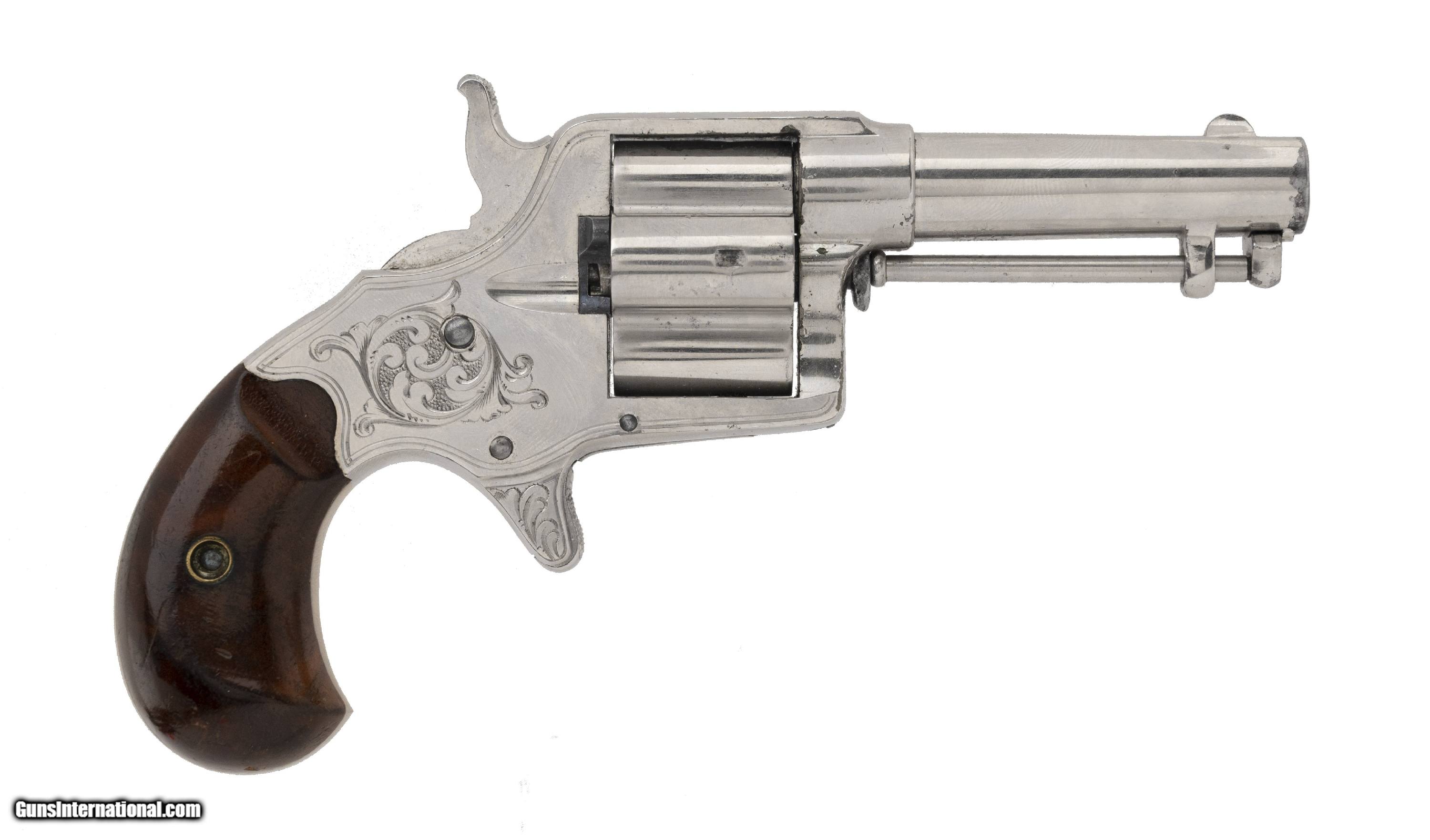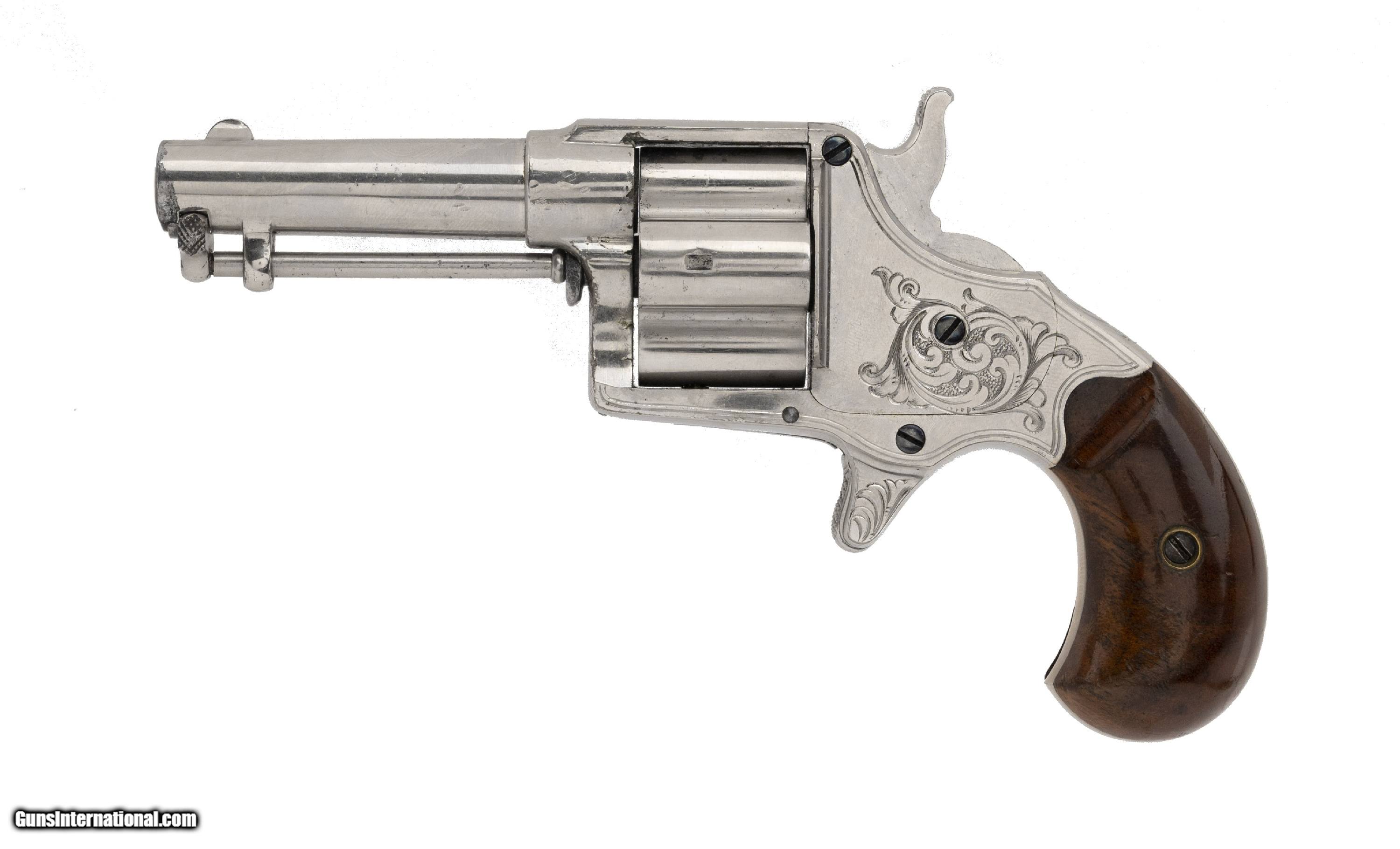 Description: "Serial Number 2178. 41 caliber with a 3" barrel. Absolutely beautiful gun with 95%+ of the original nickel finish. This gun is factory engraved. Engraving is on the sides of the frame and is very tastefully executed. Grips are excellent. Action works perfect. Very fine original factory engraved cloverleaf! Antique: Yes Price: $7,500.00 Contact Seller |