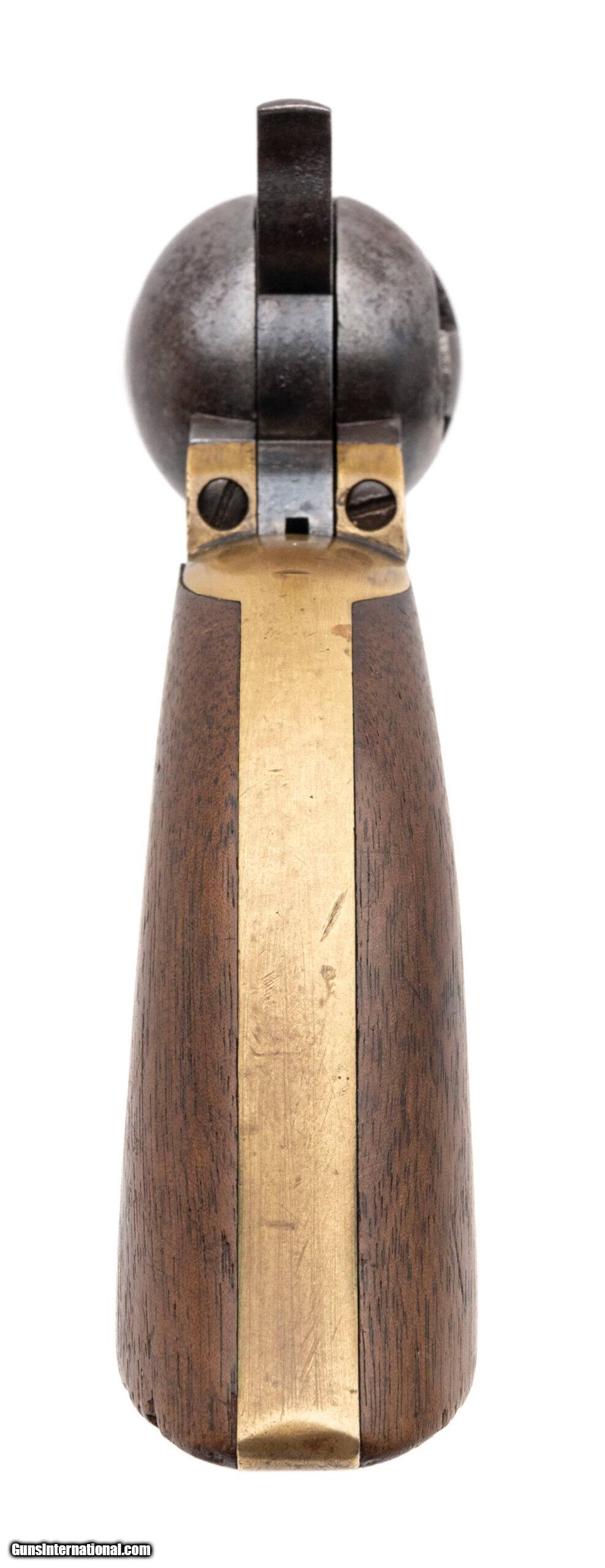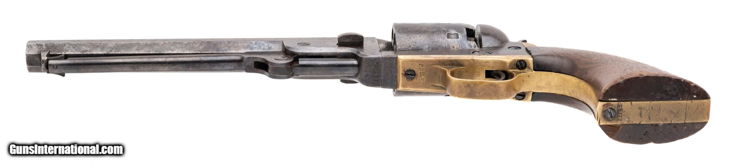 Description: "Serial number 117482. Made in 1861. 36 caliber with a 7.5" barrel. This gun has mottled dark gray patina with small pitting throughout. Traces of cylinder scene are visible. The wood grips are reasonably sharp with a chip out of the right hand corner of the toe. The barrel, frame and cylinder are all actually pretty sharp. This gun did not get all that much use, but was stored poorly. This gun was made right during 1861 when the Civil War started. There are no military markings, but most of these guns found their way into the hands of a soldier. Price: $1,895.00 Contact Seller |