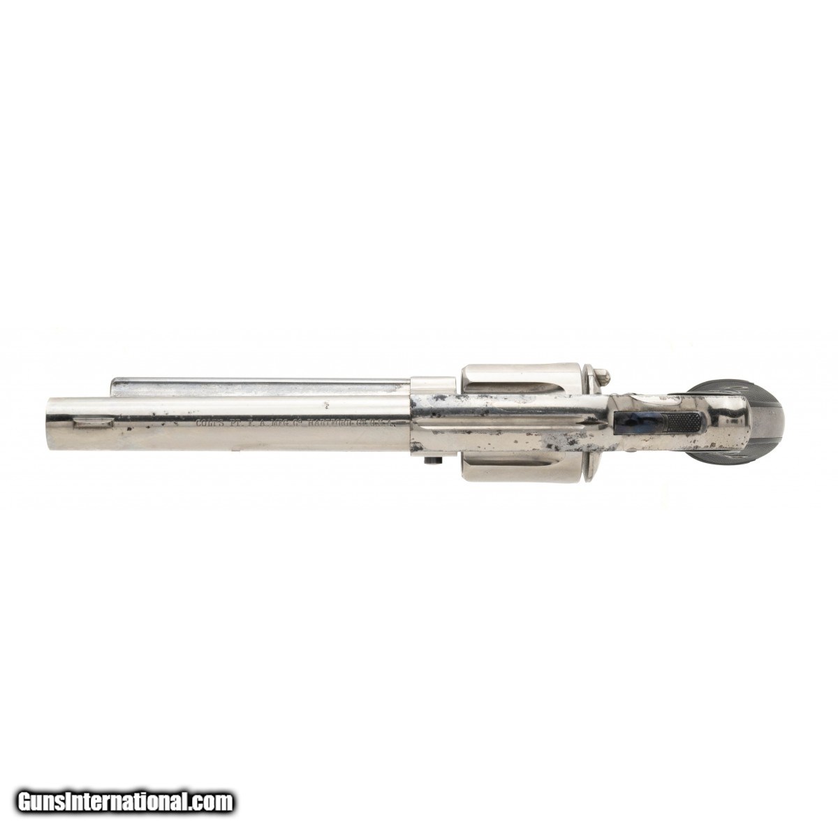 Description: "Serial number 31685. Made in 1893. 45 LC caliber with a 5 ½" barrel. Approximately 85% of the original nickel finish. Grips are excellent. Action works perfect. Bore is excellent.AUSTIN LOCATION. SOLD Antique: Yes |