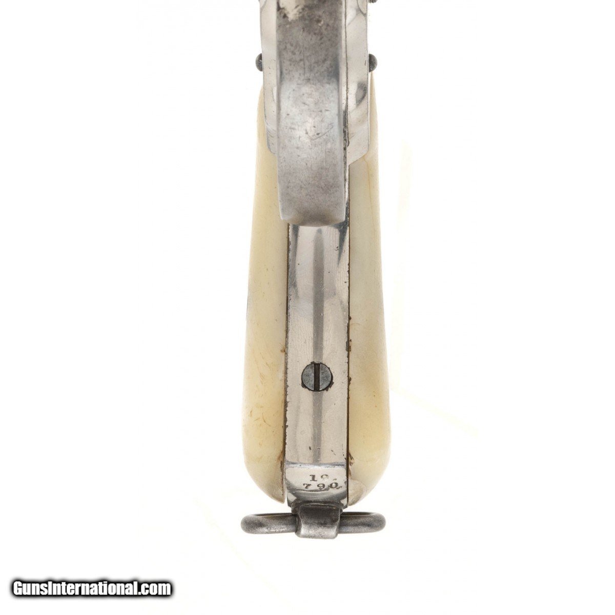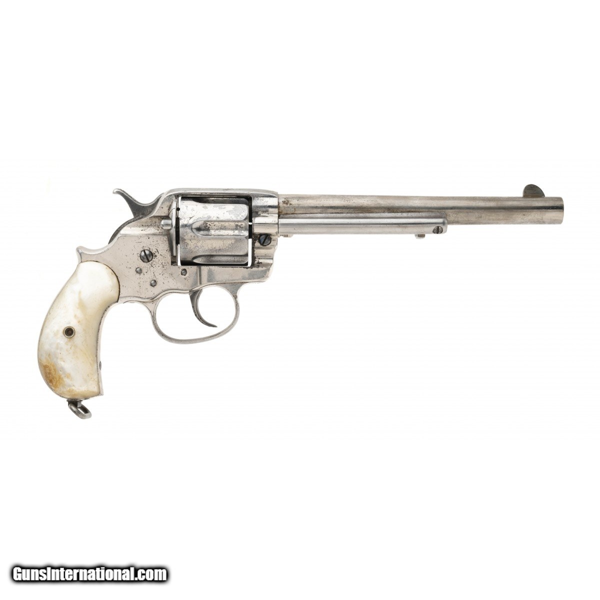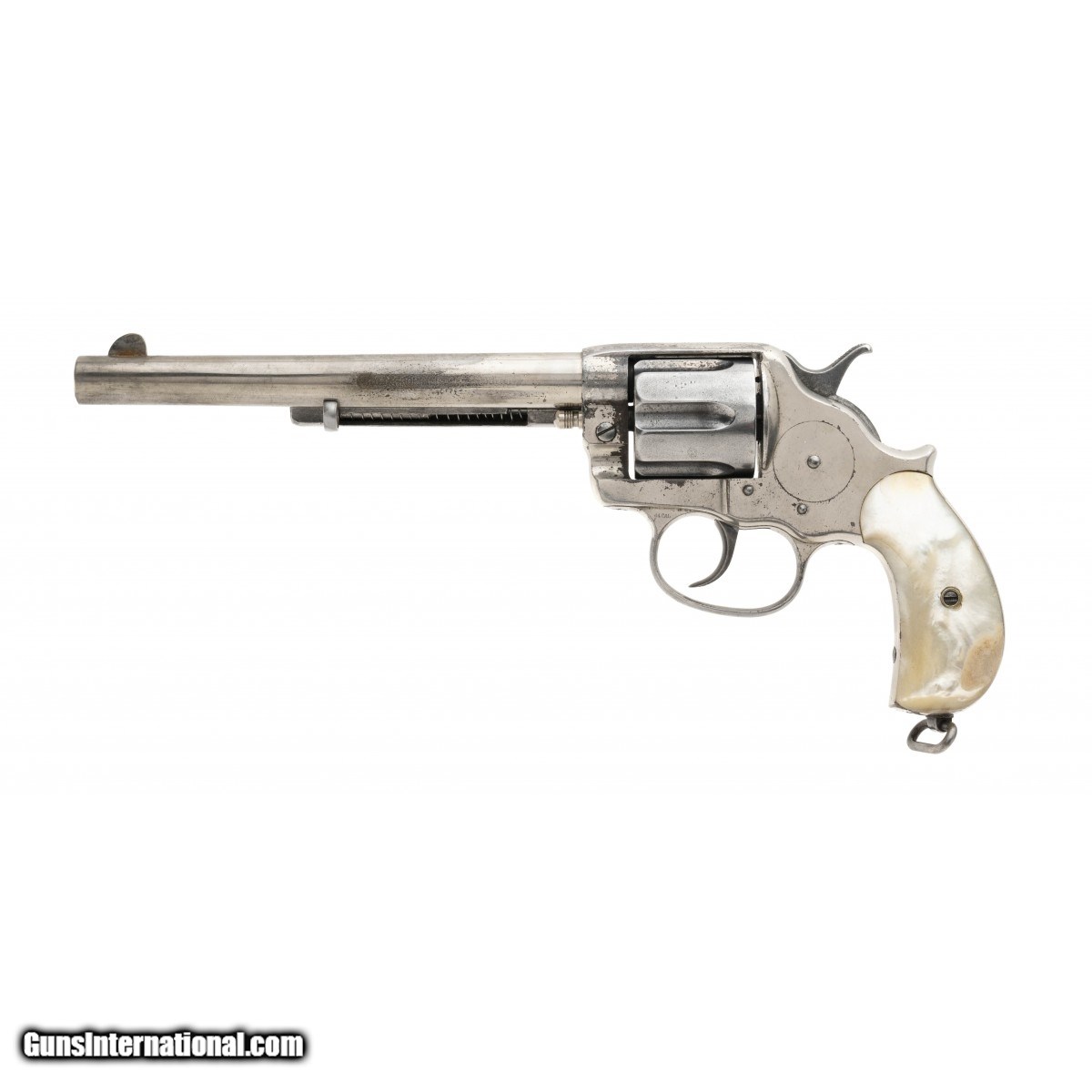 Description: "Serial number 19790. Made in 1887. 44-40 caliber with a 7 ½" barrel. Metal has 75% of the original nickel. Some of the metal has been polished to appear to have more nickel than it sows. This gun has nice pearl grips. Action works well. Bore is excellent! SOLD Antique: Yes |