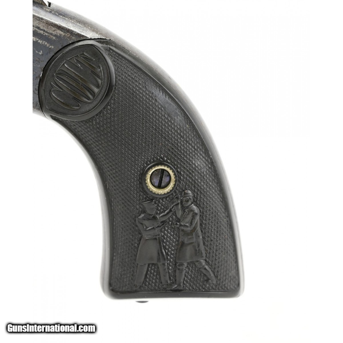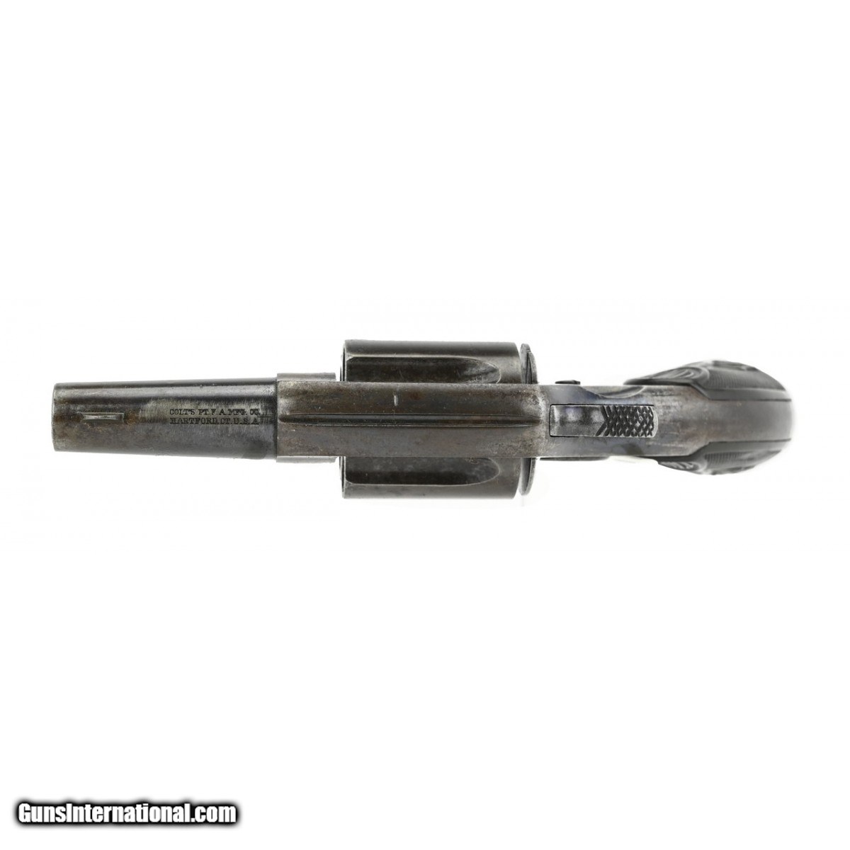 Description: " Colt Cop & Thug Revolver. Made in 1885. 2 ¼" Barrel in .41 Colt caliber. Very nice sharp gun with approximately 50% of the original blue mixed with a dark to plum patina. Grips are excellent with nice sharp checkering and the Police & Thug easily seen. The barrel is acid etched with “COLT HOUSE 38" that is still visible, but faint. Action works perfectly. Good fire blue on the hammer. This gun has British proofs. Very fine original Colt Cop & Thug New House Revolver! SOLD Antique: Yes |