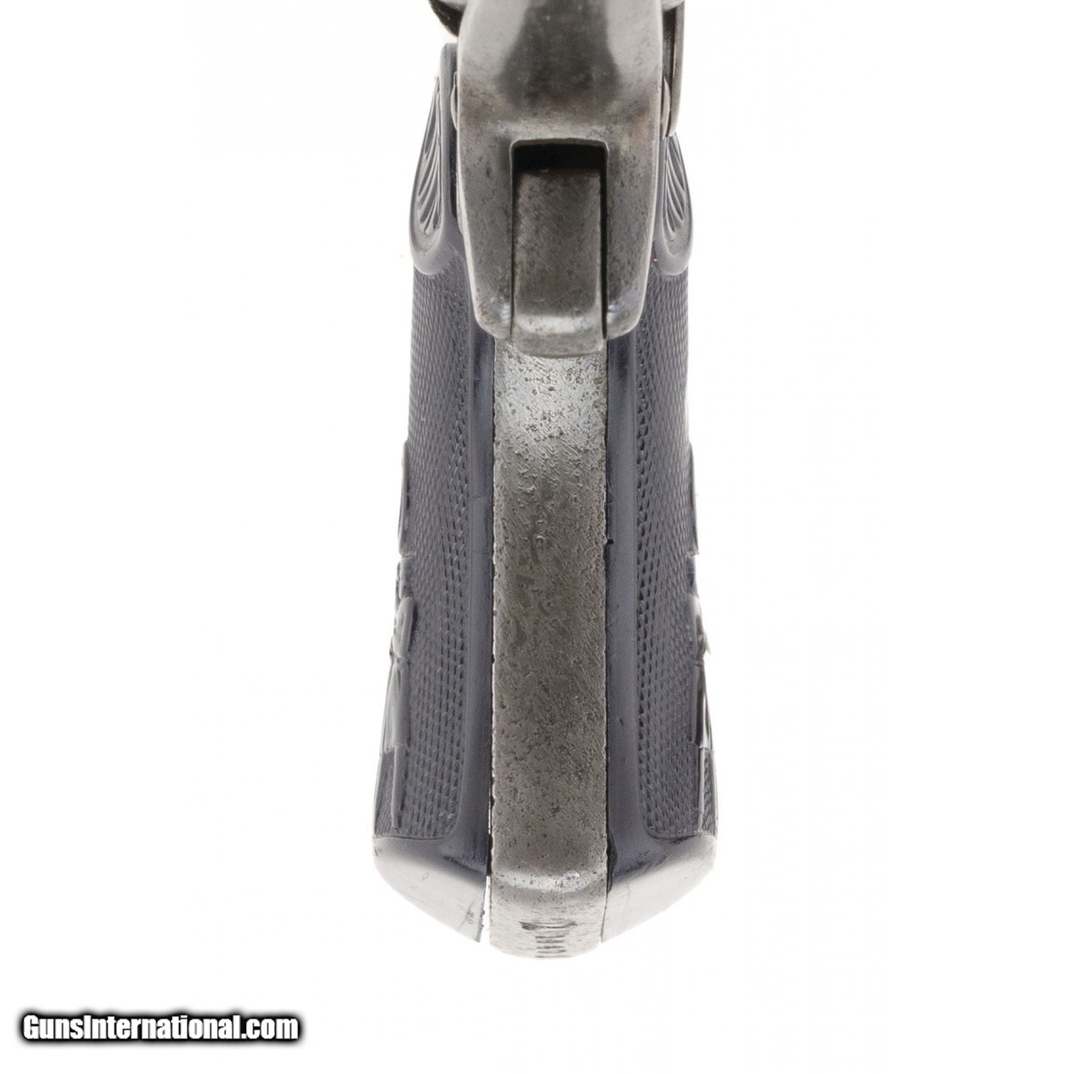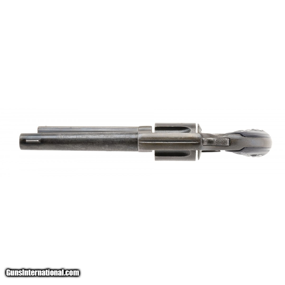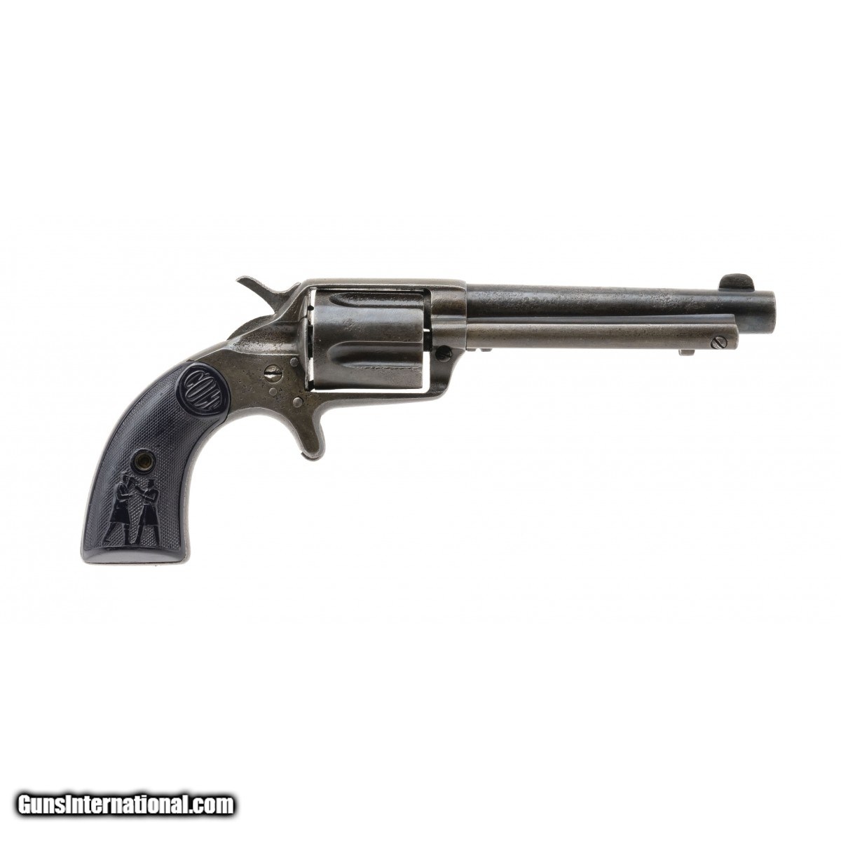 Description: " ""Cop and Thug"" model single action 5-shot revolver with 4.5"" barrel, made in 1884. The bore is very good and has strong rifling with light frosting in the grooves. The action works perfectly. The grips display scene of a cop arresting a thug and are in very good condition. Has shallow pitting throughout and shows good blue on the barrel and cylinder. The ""Cop and thug"" variation of the New Police is scarce and desirable. SOLD Antique: Yes |