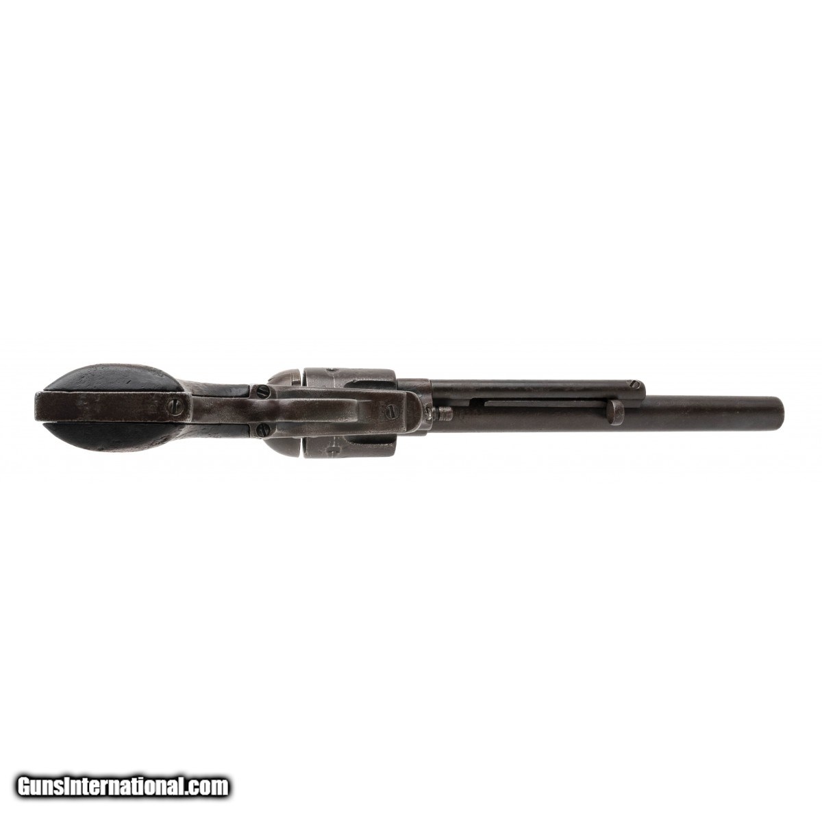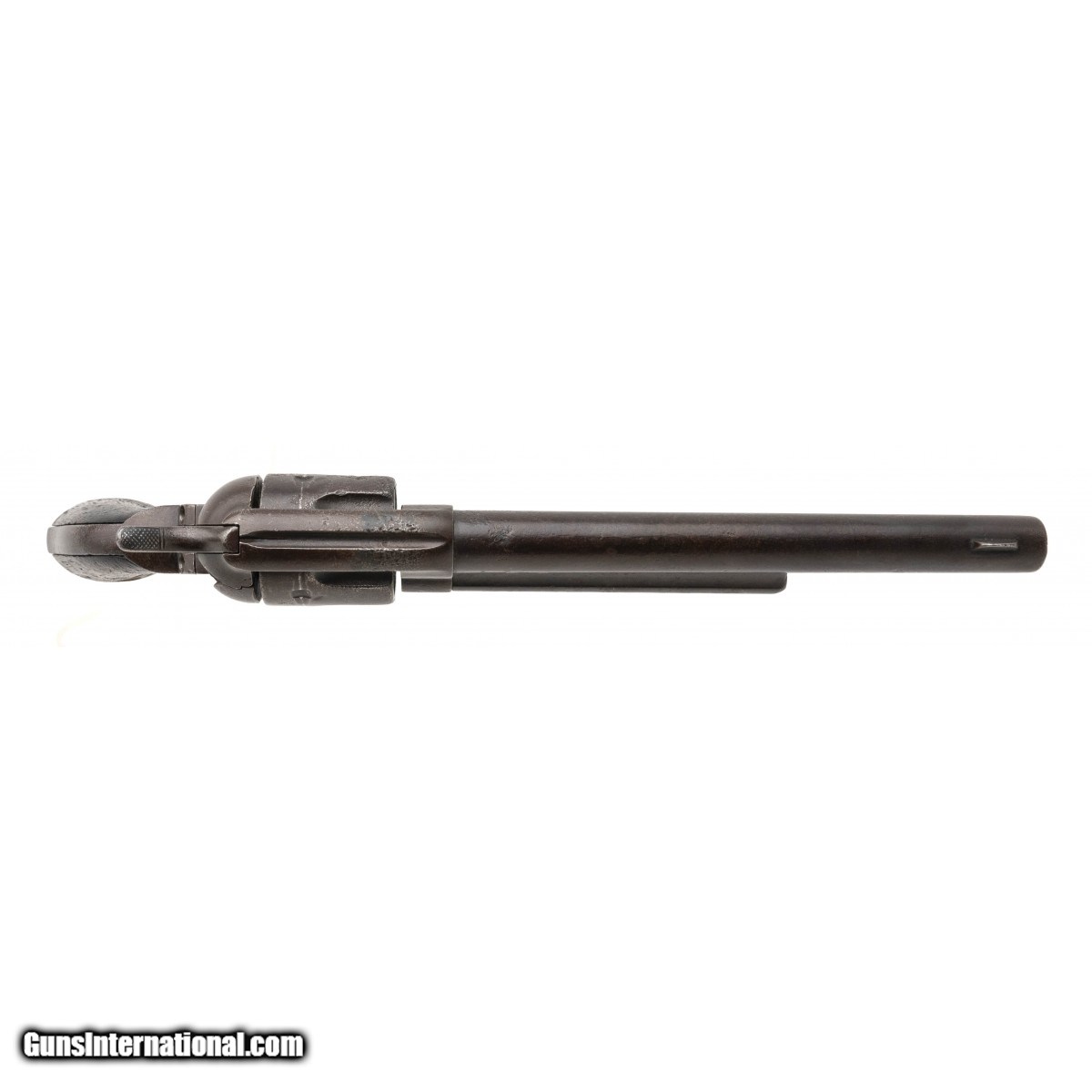 Description: "Serial number 54401. Made in 1880. 45LC caliber with a 7 ½" barrel. Metal on this gun shows some pitting and fire scale with an even artificial patina throughout. All numbers are matching with the barrel and cylinder numbers likely refreshened. Grips are replacements. SOLD Antique: Yes |