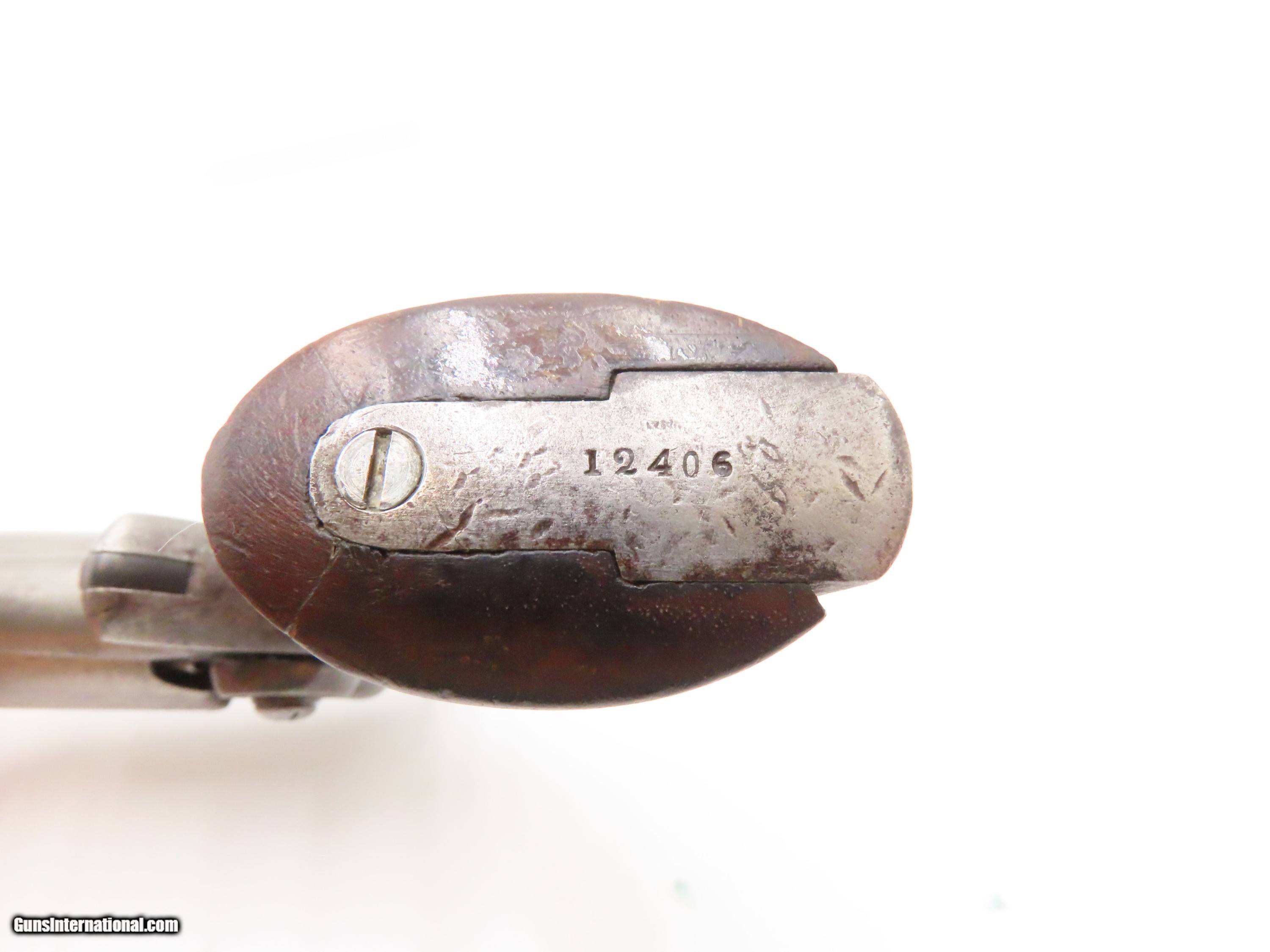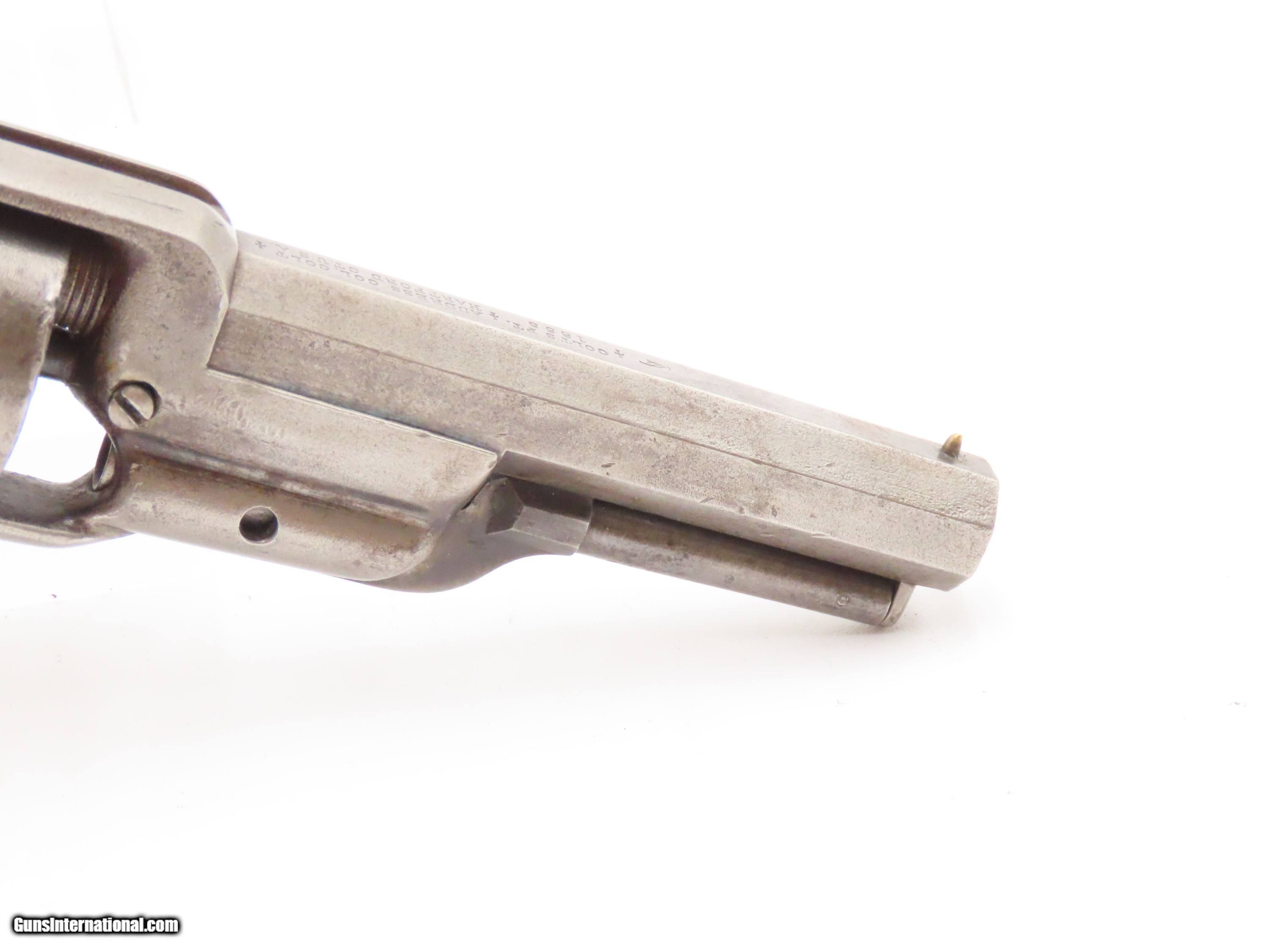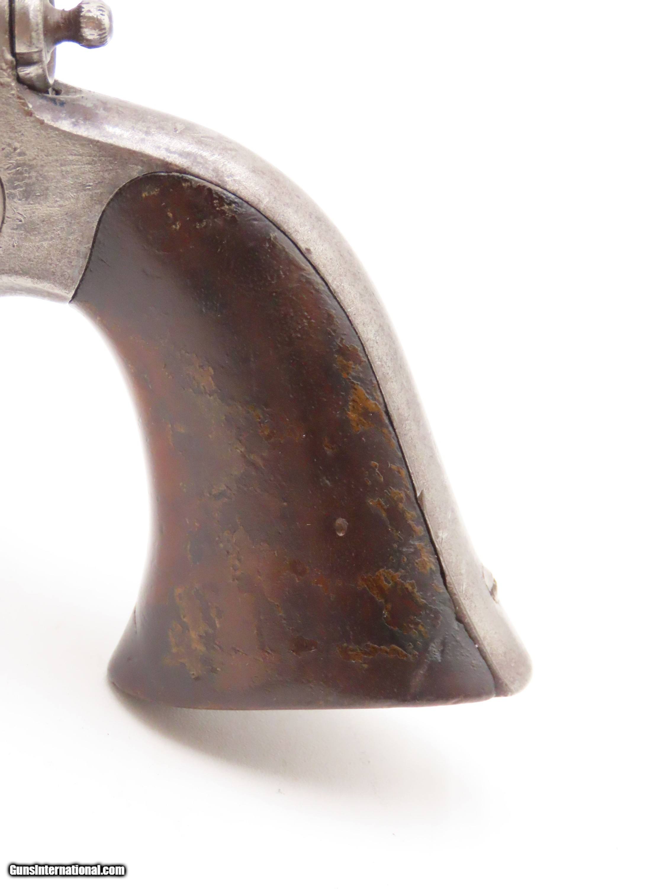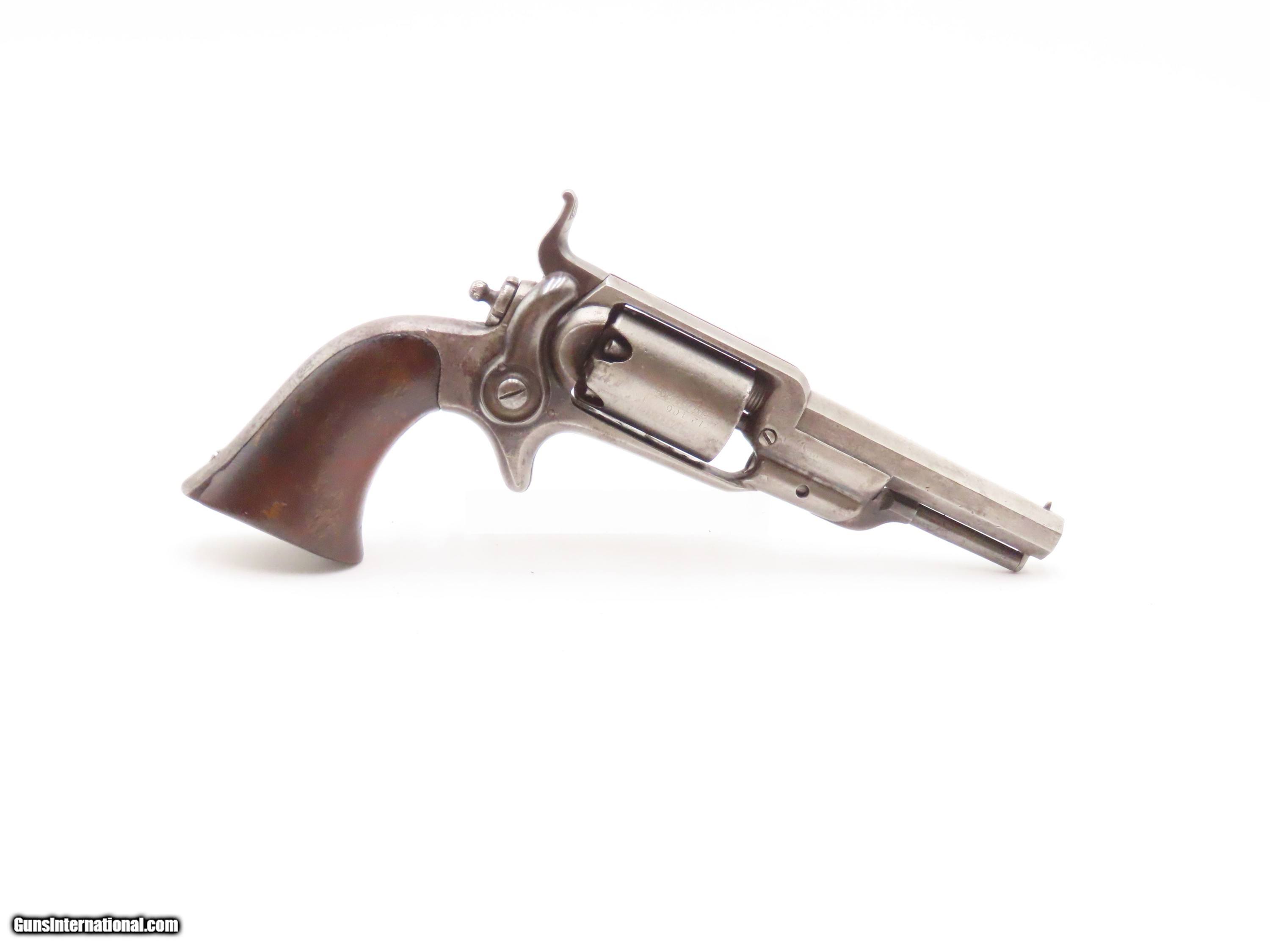 Description: 1856 mfg. Antique Pre-CIVIL WAR COLT M1855 ROOT Sidehammer POCKET Revolver PERCUSSION .28 Caliber SELF DEFENSE Revolver Here we present an antique Colt Model 1855 “Root” Side-hammer Percussion Pocket Revolver, made just five years before the start of the Civil War in 1860 in Hartford, Connecticut. This Samuel Colt design was named for his factory superintendent Elisha K. Root and is a telling example of Colt’s desire to innovate, which was probably the single biggest factor in his success. Though the Colt 1849 Pocket had been introduced only 6 years prior, the “Colonel” attempted to make an improved pocket revolver. The Root features Colt’s debut of the “creeping” style of loading lever which allowed for better mechanical advantage when loading the gun, Colt’s first solid frame, a hammer mounted on the right side for access to the cylinder axis pin, and a cylinder axis pin which was the point at which the hand turned the cylinder (versus on the cylinder itself). Many good ideas were tested in this design, and some would prove worthy to be used in the future. The small parts used in the Root Revolver’s mechanism proved quite fragile, however upscaling them into the 1855 series of Revolving Rifles and Shotguns seemed to help. Despite its groundbreaking influence on the firearm industry, the 1855 Root revolver never quite achieved “legendary” or “iconic” status in the public eye. As a result, it has been overlooked in major film productions and video games, where firearms often play a starring role. The overall condition is very good. Original bright gray patina. The cylinder scene is faint, but discernable. Solid grip contains light handling wear and is missing a small chip from the heel. A stable repair is found on the toe. Robust action. Markings are legible. The bore on this example has dimmed with servable rifling. Visible numbers match. The cylinder arbor pin screw is a replacement. Own the original! This is a legitimate antique and not a reproduction. Barrel is 3-1/2 inches. Caliber: .28 Percussion Overall condition as seen in photos. Very Fast. Very Safe. FREE SHIPPING WORLDWIDE. Delivered directly to your door by express mail! Guaranteed AUTHENTIC & Includes CERTIFICATE OF AUTHENTICITY. $2100 #257003 Antique: Yes Price: $2,100.00 Buy Now Pay with ![]() Contact Seller |
