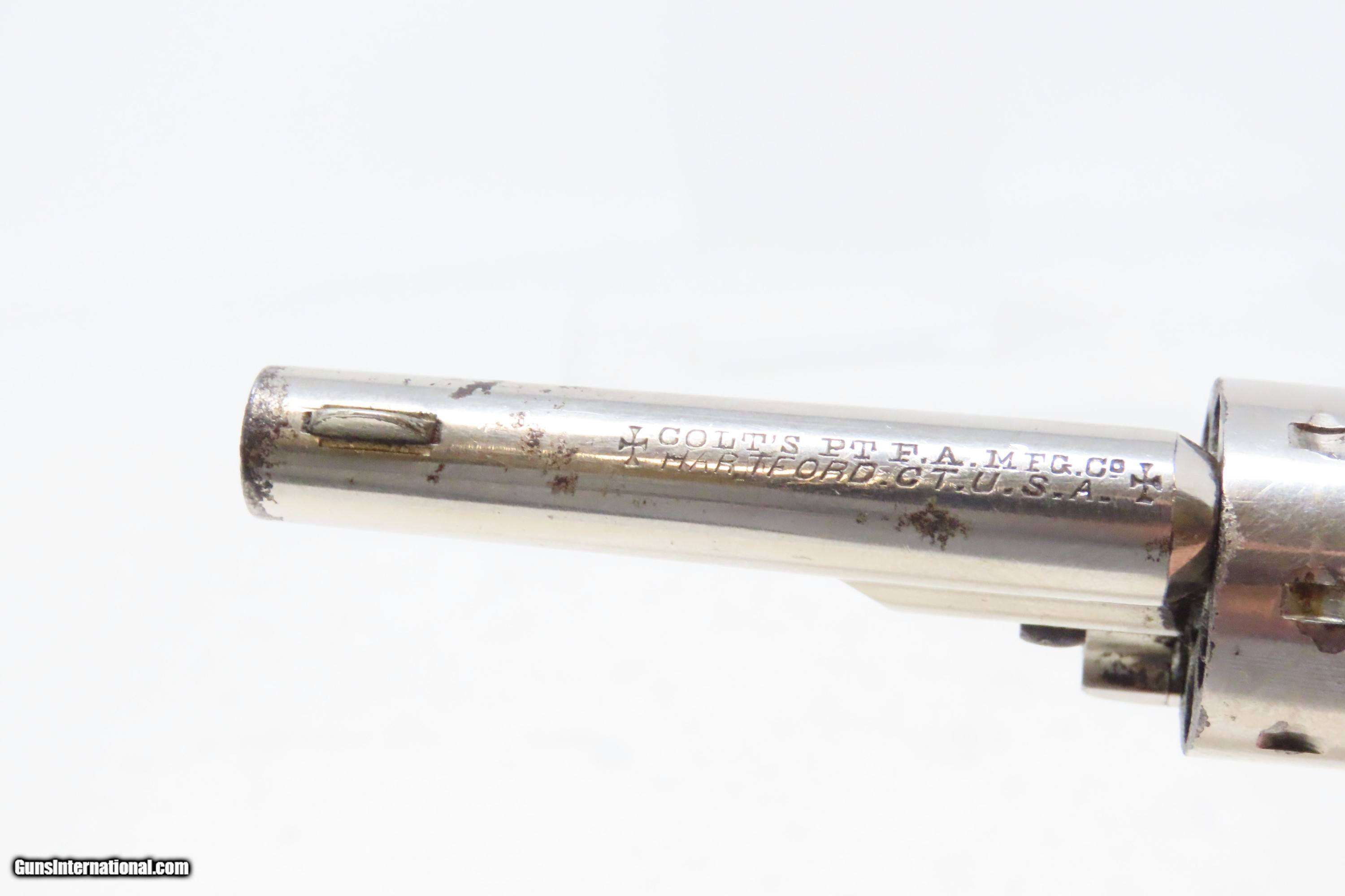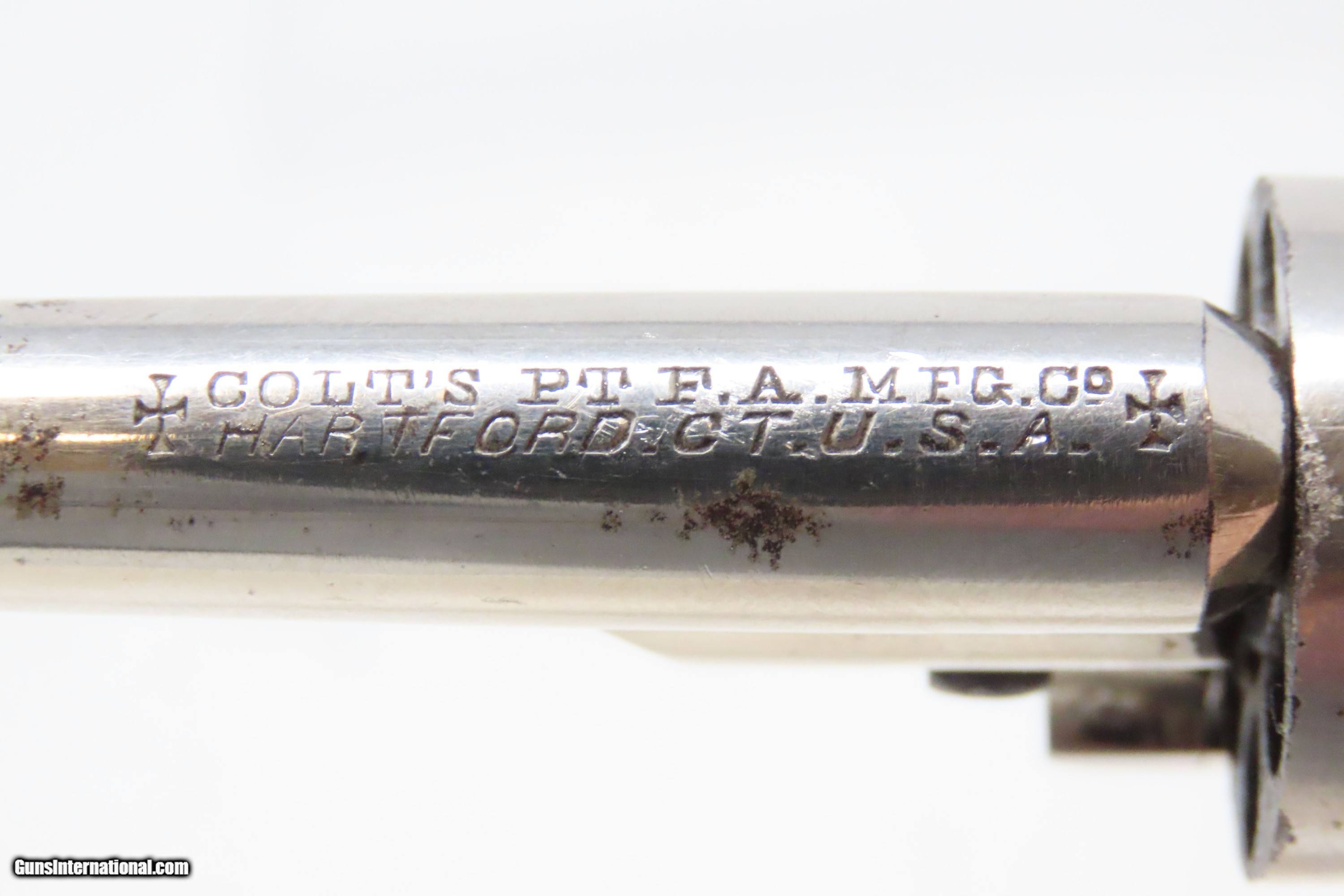 Description: 1874 WILD WEST Antique COLT “Open Top” .22 RF Self Defense POCKET Revolver Colt’s Answer to Smith & Wesson’s No. 1 Revolver Here we present an antique Colt Open Top .22 Pocket Revolver, made in 1874 in Hartford, Connecticut, with a production run from 1871 through 1877. These revolvers were made for self-defense. They were introduced in 1871, shortly after the Smith & Wesson held Rollin White Patent expired, opening the floodgates to a hungry market that had been dying to fully implement metallic cartridge firearms loaded into a totally bored through cylinder. From 1857 to 1869 Smith & Wesson had exclusivity with these concepts and rightfully dominated the marketplace. The idea was to provide the commercial market with a very small and concealable firearm. Not everyone was a cowboy and carried Colt’s Single Action Army in the Wild West days. Many civilians may not have carried if not for something that they could stick in their pocket, purse or muff, much like today. The Open Top was relatively successful for a time, with 7 shots of .22 rimfire, but production ceased by about 1877 due to very stiff competition from a plethora of companies making similar but cheaper versions known today as “Suicide Specials”. The overall condition is fine. Original nickel finish. Excellent action. The bore I in good shape. Both grips are solid with less than average handling. Numbers match. Markings are clear. Own the original! This is a legitimate antique and not a reproduction. Barrel is 2-3/8 inches. Caliber: .22 Rimfire Overall condition as seen in photos. Very Fast. Very Safe. FREE SHIPPING WORLDWIDE. Delivered directly to your door by express mail! Guaranteed AUTHENTIC & Includes CERTIFICATE OF AUTHENTICITY. ancestryguns $1200 #240011 SOLD Antique: Yes |