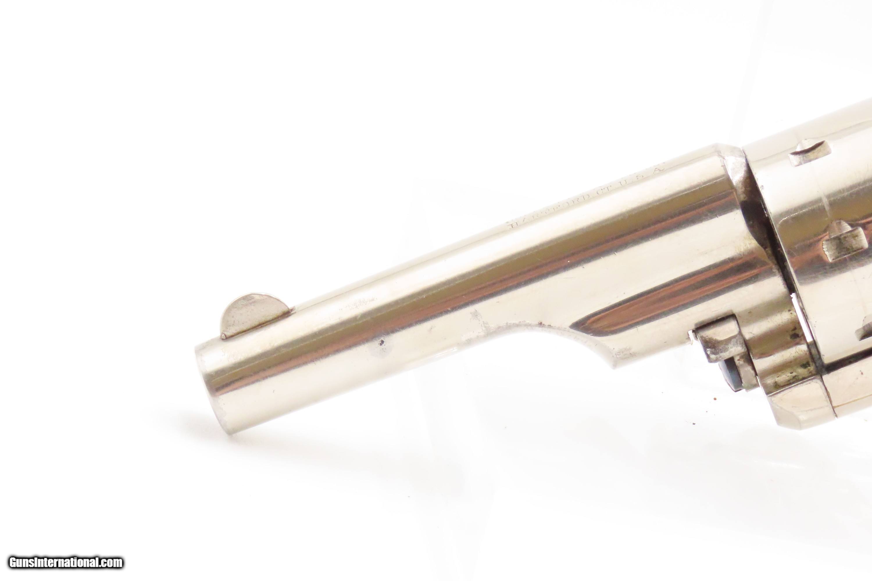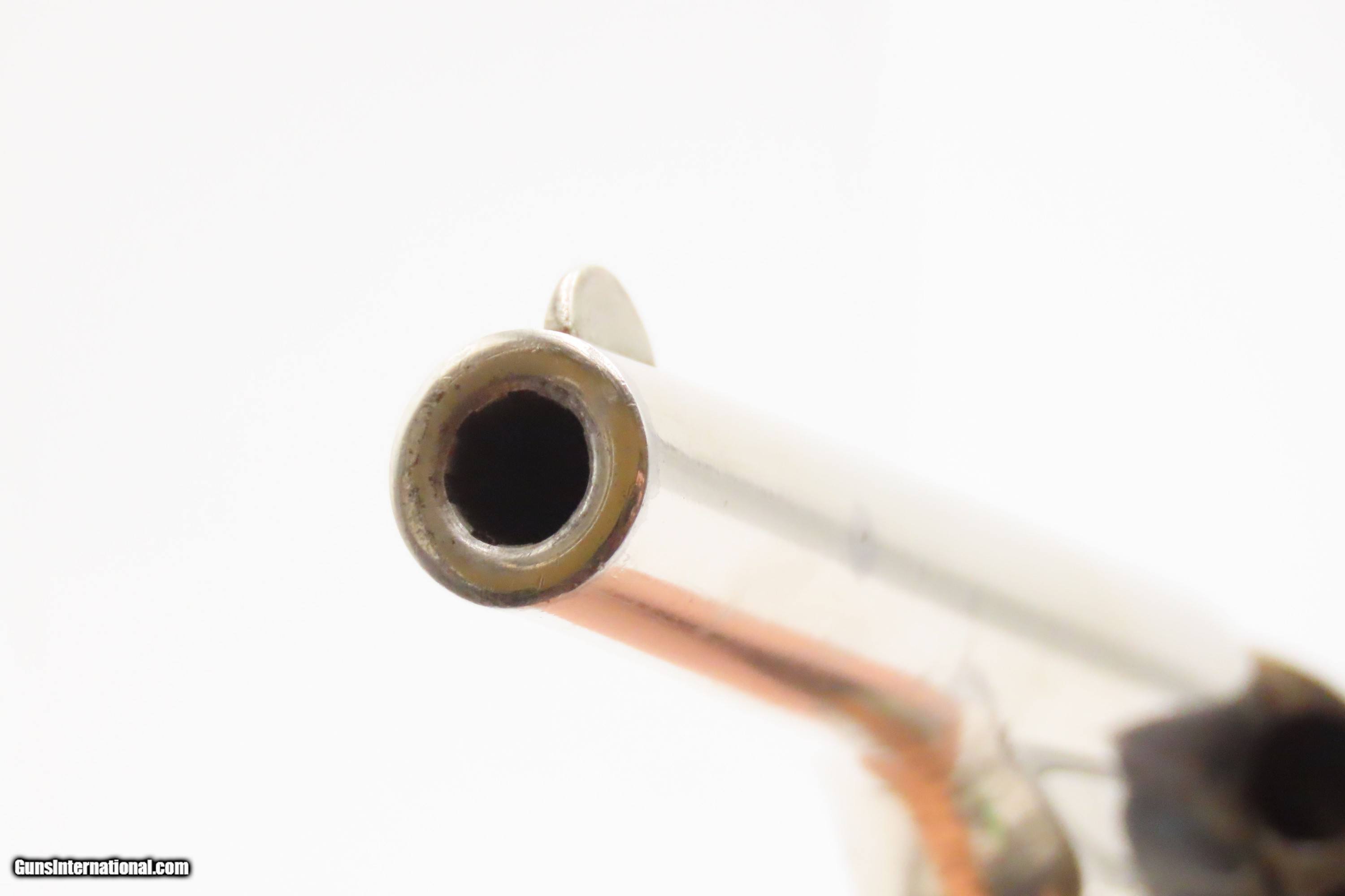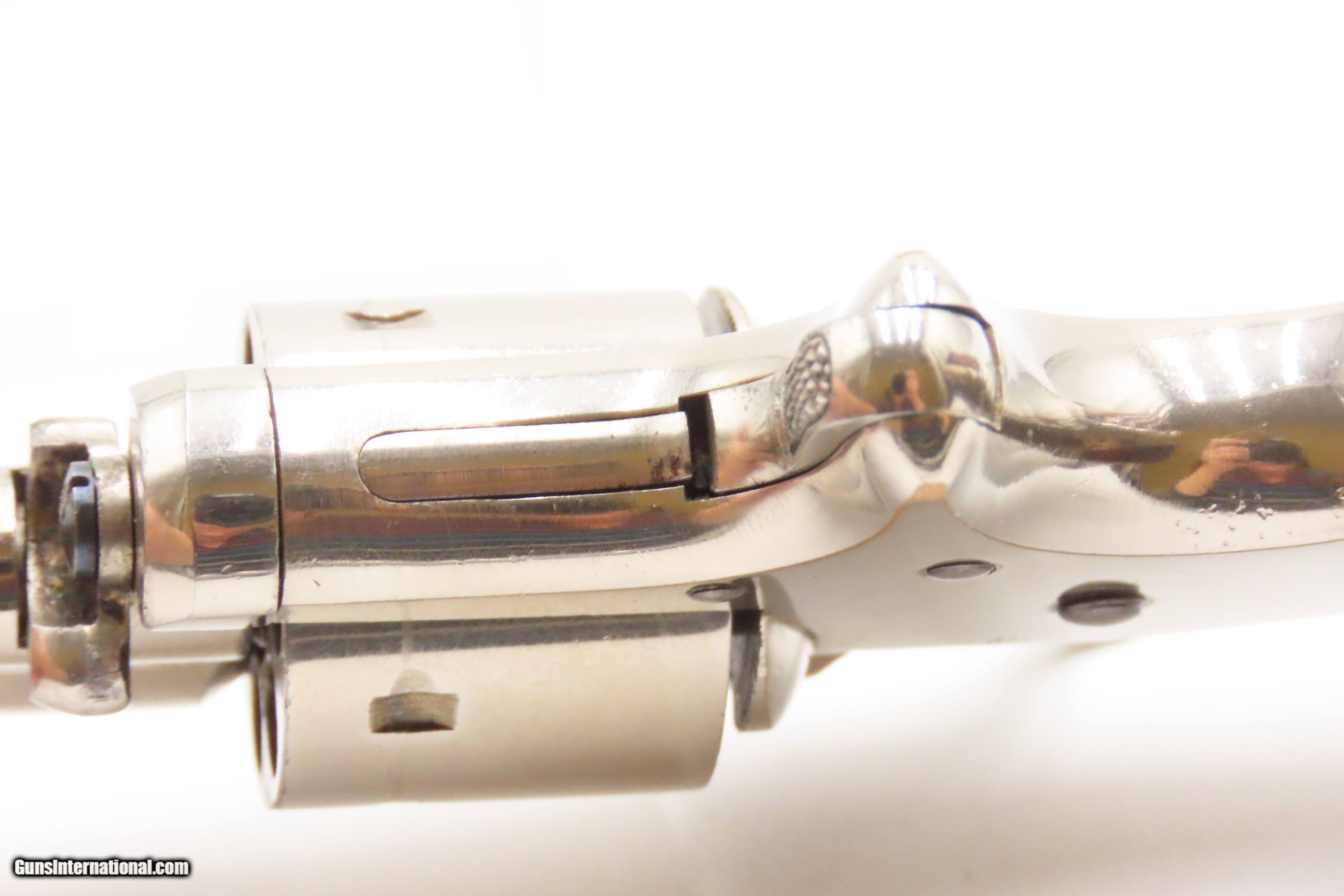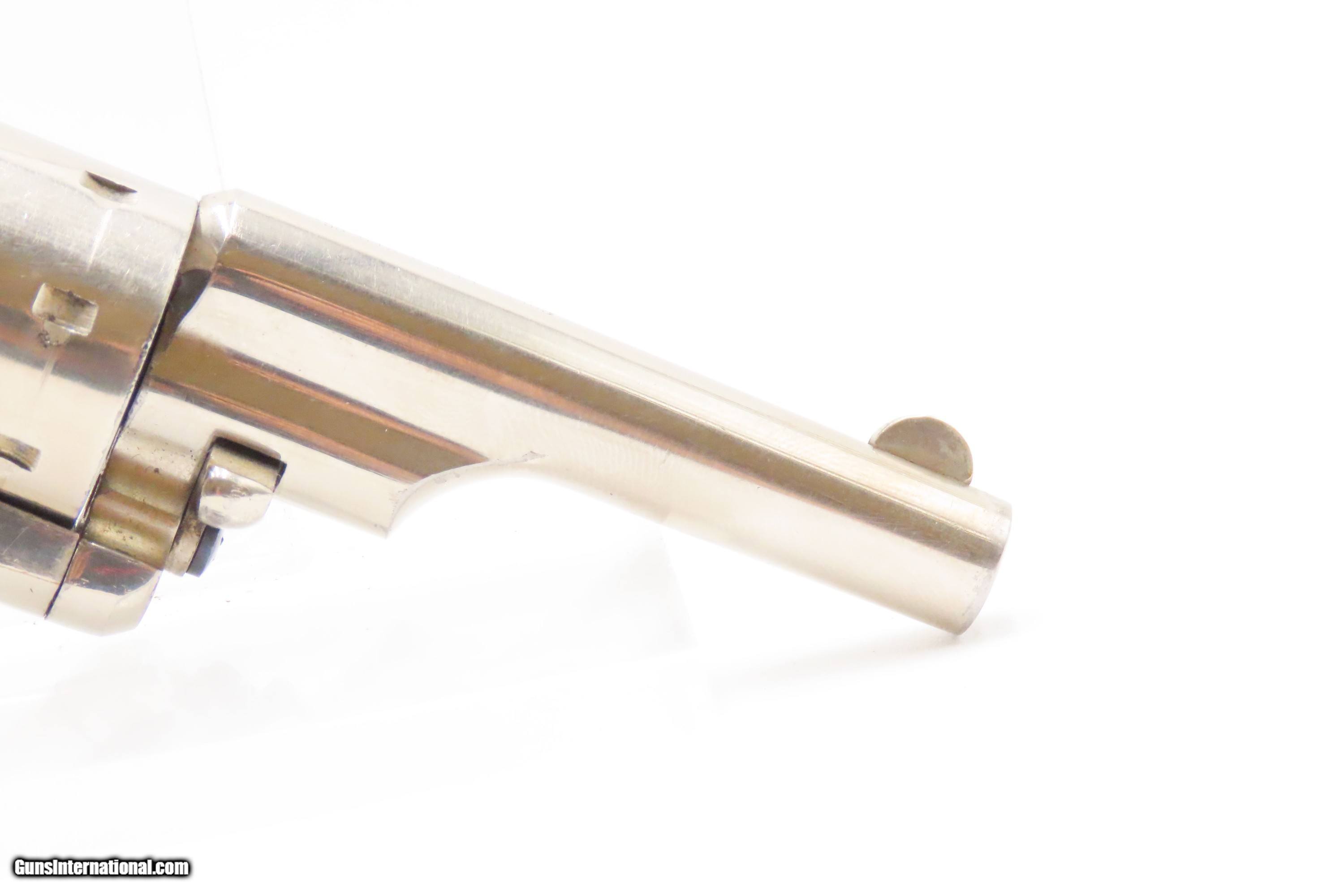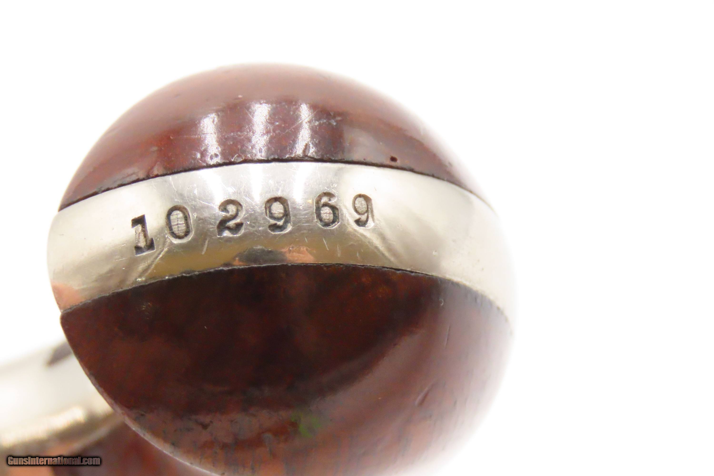 Description: 1877 mfg. Antique COLT “Open Top” .22 RF SA POCKET Revolver WALNUT GRIPS EXCELLENT; Colt’s Answer to Smith & Wesson’s No. 1 Here we present an antique Colt Open Top .22 Rimfire Single Action Spur Trigger Pocket Revolver, made in 1877 in Hartford, Connecticut, with a production run from 1871 through 1877. These revolvers were made for self-defense. They were introduced in 1871, shortly after the Smith & Wesson held Rollin White Patent expired, opening the floodgates to a hungry market that had been dying to fully implement metallic cartridge firearms loaded into a totally bored through cylinder. From 1857 to 1869 Smith & Wesson had exclusivity with these concepts and rightfully dominated the marketplace. The idea was to provide the commercial market with a very small and concealable firearm. Not everyone was a cowboy and carried Colt’s Single Action Army in the Wild West days. Many civilians may not have carried if not for something that they could stick in their pocket, purse or muff, much like today. The Open Top was relatively successful for a time, with 7 shots of .22 rimfire, but production ceased by about 1877 due to very stiff competition from a plethora of companies making similar but cheaper versions known today as “Suicide Specials”. The overall condition is excellent. The original nickel finish is reflective and vibrant. Shiny bright bore with sharp rifling. Excellent, tight action all the way around. Both grips have minimal evidence of handling and have maintained a smooth finish. Markings are legible. Own the original! This is a legitimate antique and not a reproduction. Barrel is 2-3/8 inches. Caliber: .22 Rimfire Finish: Nickel Grips: Walnut Overall condition as seen in photos. Very Fast. Very Safe. FREE SHIPPING WORLDWIDE. Delivered directly to your door by express mail! Guaranteed AUTHENTIC & Includes CERTIFICATE OF AUTHENTICITY. ancestryguns $1200 #247109 SOLD Antique: Yes |