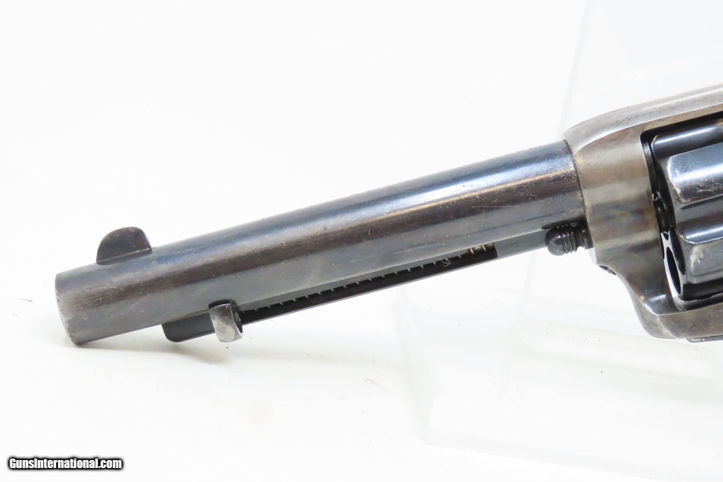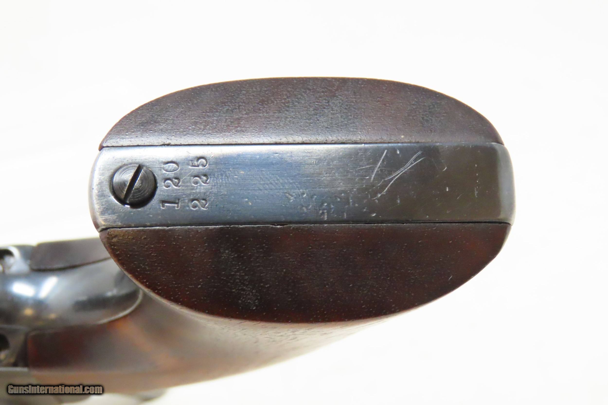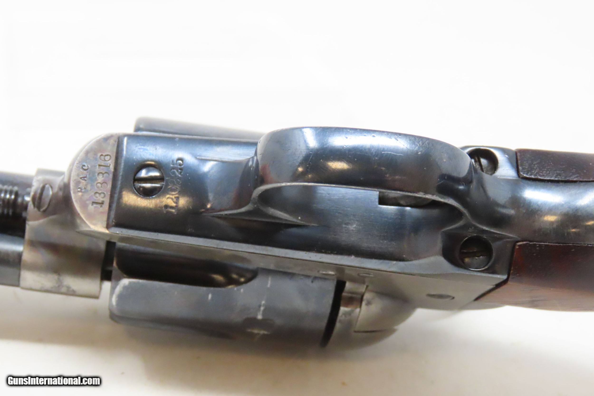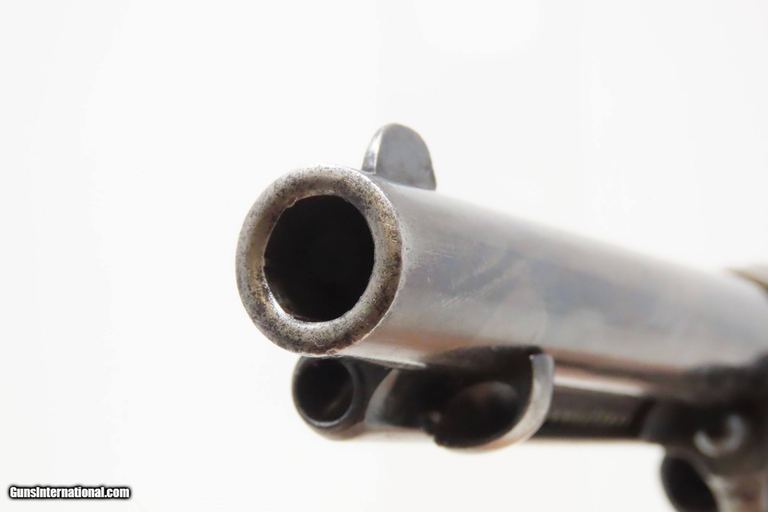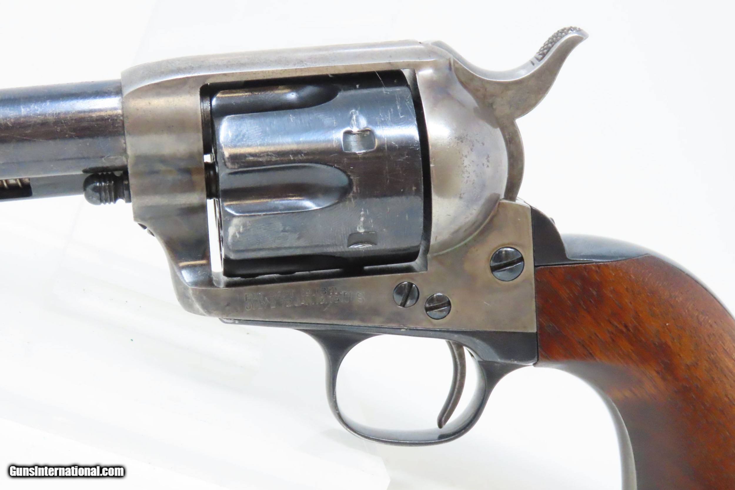 Description: 1891 Antique U.S. COLT ARTILLERY Model .45 Single Action Army Revolver SAA Sidearm from the Spanish-American/Philippine War Period Here we present an antique Colt Single Action Army Revolver Artillery Model, with the frame made in 1891. The Colt Single Action Army, or SAA, is a classic “six-shooter” that is a worldwide icon of the United States of America and the Western Frontier. Wielded by both the worst of men and the best, the famous Single Action Army is also well-known as the Peacemaker. Introduced in 1873, the basic design remained, with a few interruptions, in production and is still manufactured today by Colt and other companies. The Artillery or Springfield Armory Model of the SAA is a period (1895-1903) armory or factory refinished gun to extend U.S. military service. Only about 17,000 of these refurbished guns were completed. In all but the rarest variant of the already rare Artillery Model, the serial numbers will be mixed. U.S. military purchased SAAs are among the most sought after historic sidearms of the era, having been used in action in the Spanish-American War and the Philippine-American War by the U.S. Army. They were originally issued with 7½" barrels in .45 Colt. Most of these guns, as this one is, had the barrels shortened to 5½". The frame is inspector marked “R.A.C” for Rinaldo A. Carr, the hammer is marked “H.N.” for Henry Nettleton, the barrel is numbered “5295” (partial serial) and is P proofed and “D.F.C.” inspected by David. F. Clark. There is a faint P proof on the outside diameter of the cylinder and a “K” on the rear. The grip frame and trigger guard numbers match. The overall condition is very good. Original/armory refinish. The barrel, grip frame, and cylinder still bear a nice blue finish while the frame and hammer have still-visible, silvered case colors. The action is excellent, holding the safety notch and the half-cock and full-cock notches. The bore is shiny bright with sharp rifling. The grips are solid walnut and are nice replacements. This is a legitimate antique and not a reproduction. Barrel is 5-1/2 inch. Caliber: .45 Colt Overall condition as seen in photos. Very Fast. Very Safe. FREE SHIPPING WORLDWIDE. Delivered directly to your door by express mail! Guaranteed AUTHENTIC & Includes CERTIFICATE OF AUTHENTICITY. ancestryguns $4895 #227186 SOLD Antique: Yes |