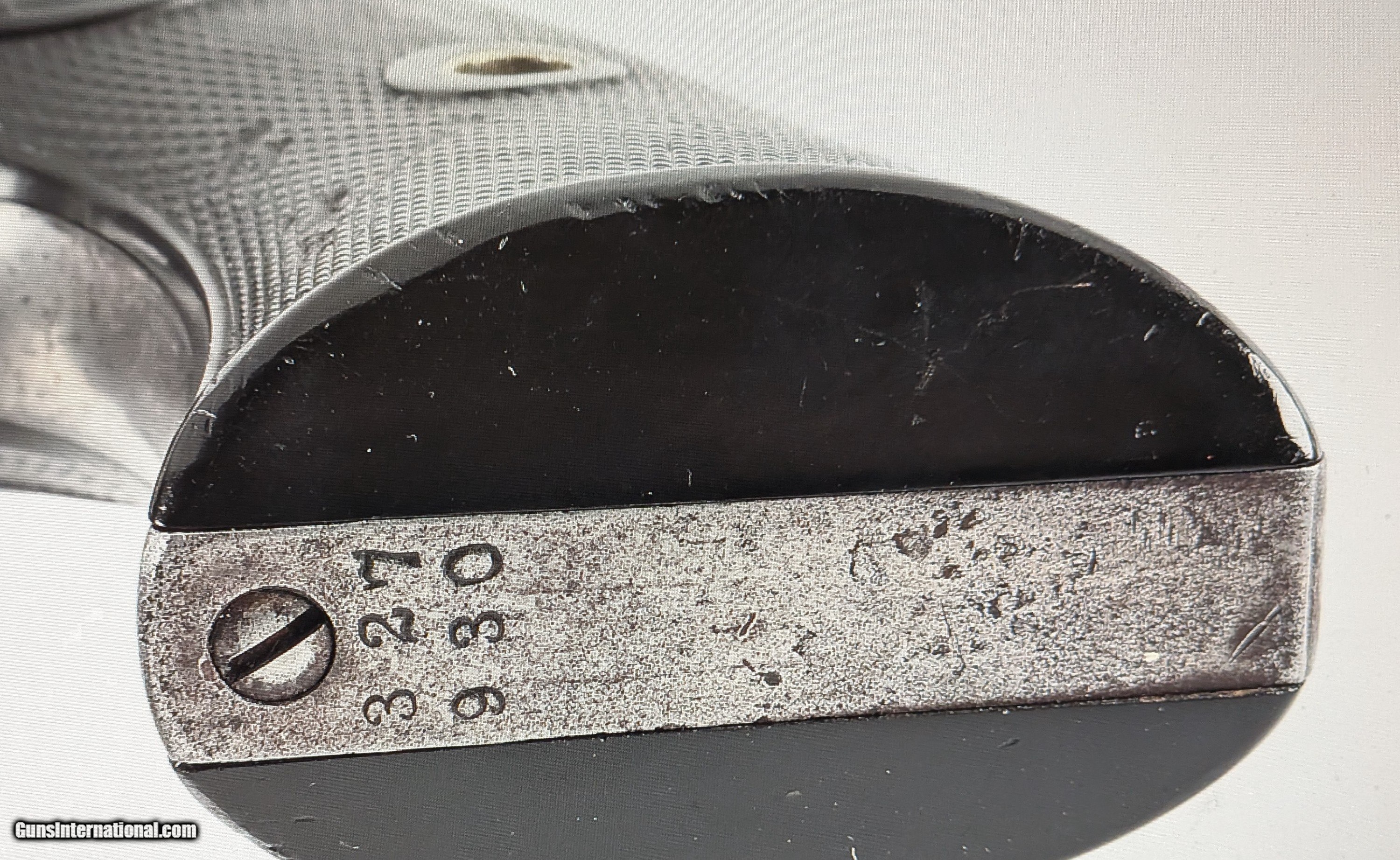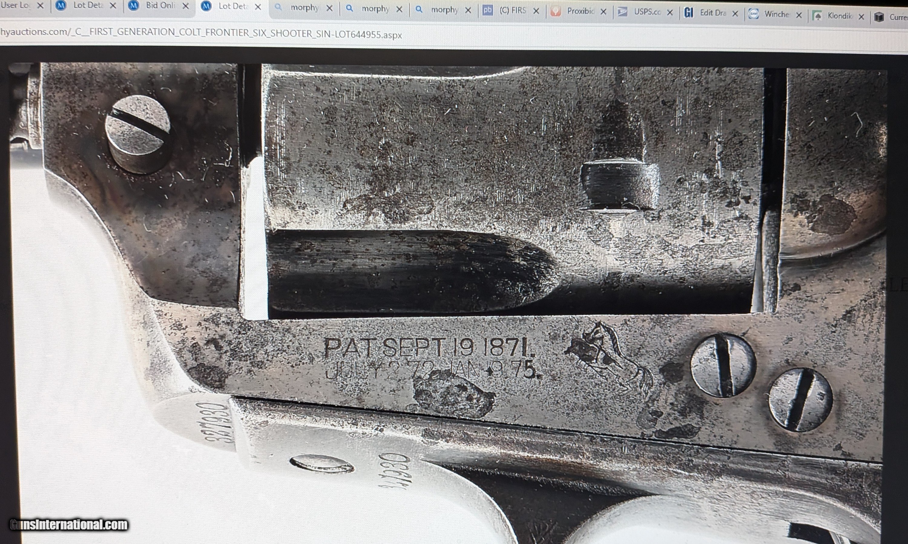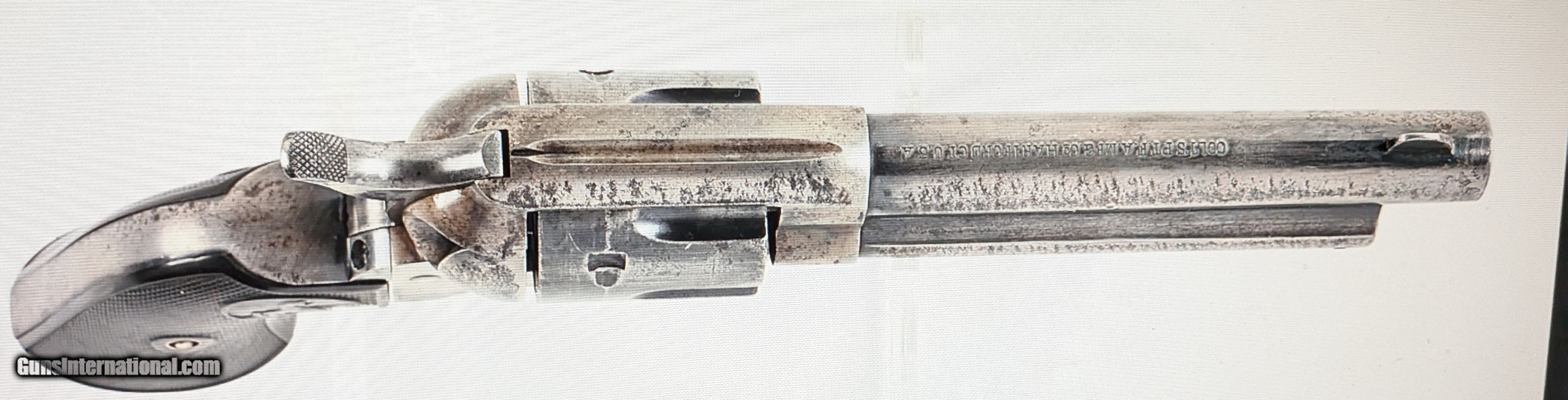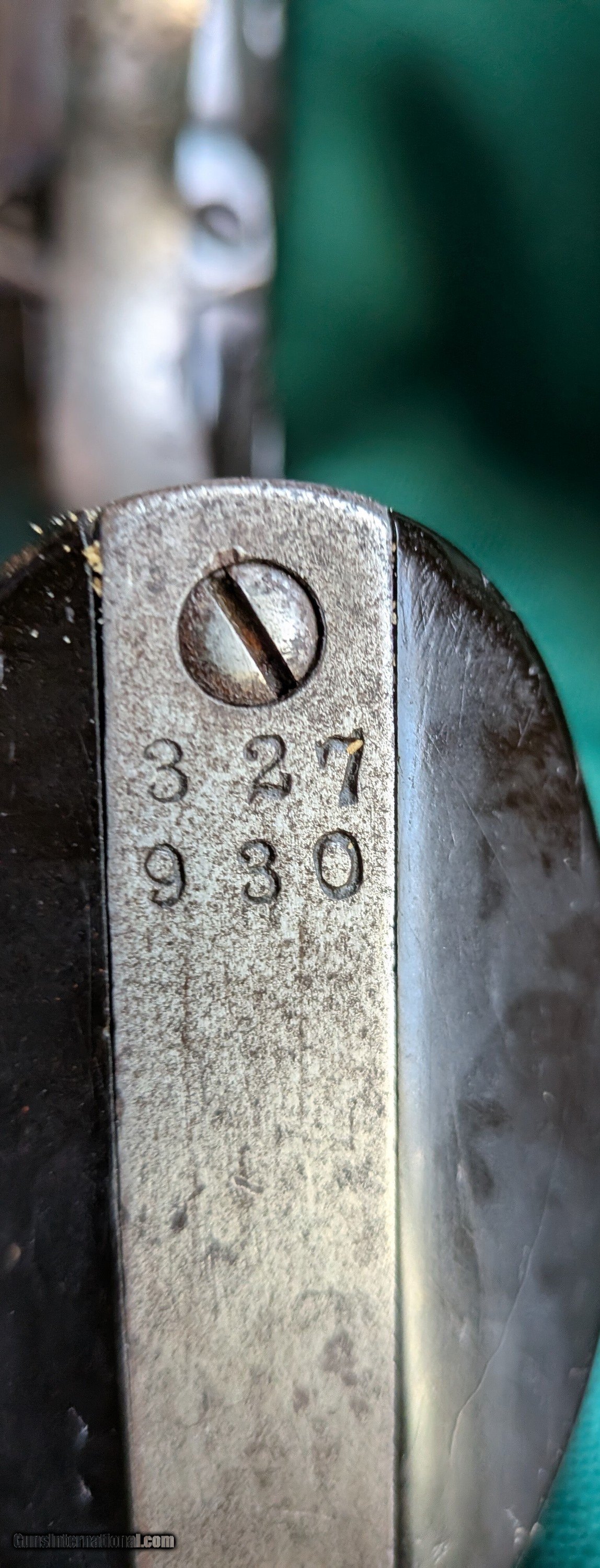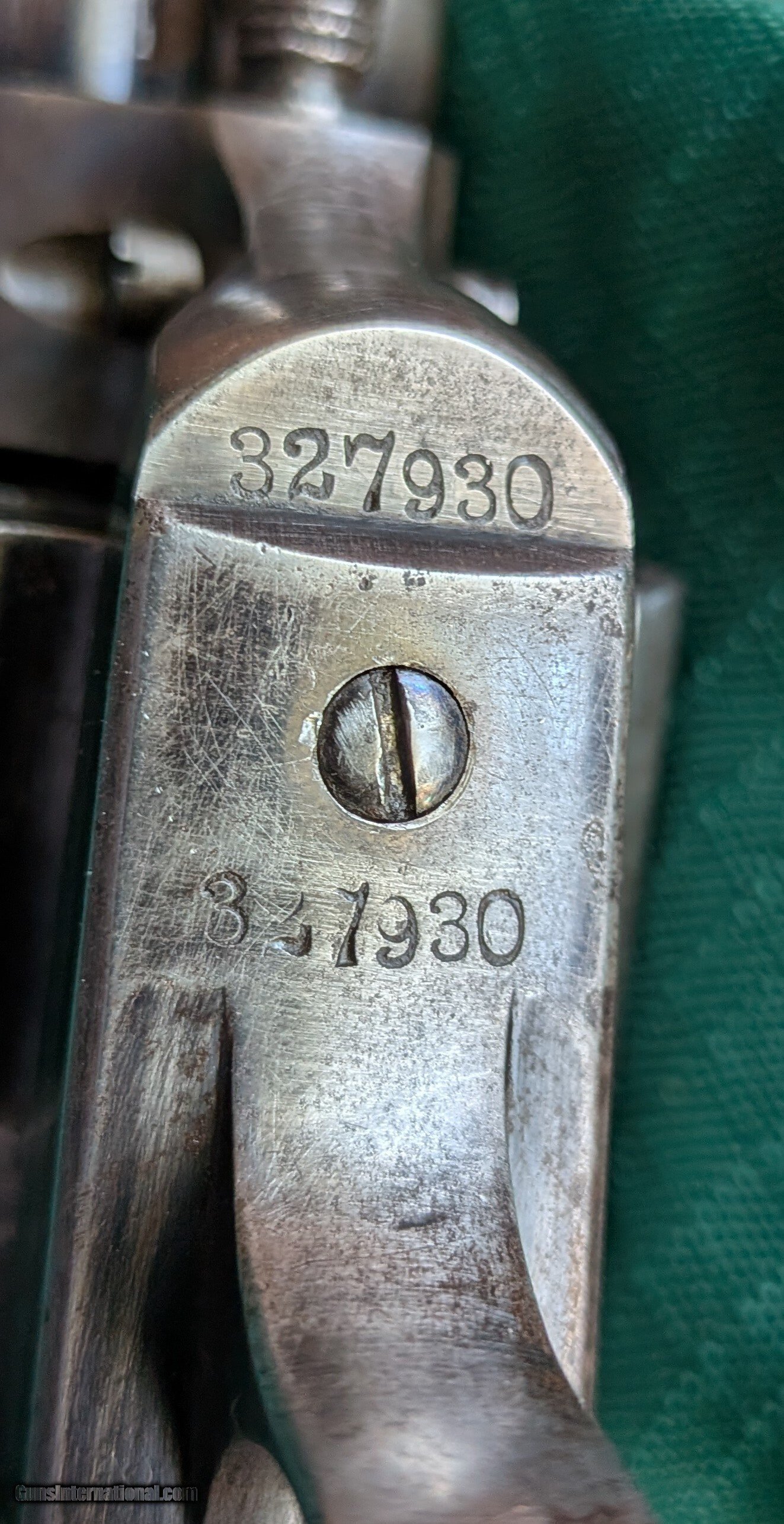 SN327930 Dates to 1913.CCR or FFL needed. Standard blue and case color finish with Colt gutta percha grips. Proper one line barrel address and the two line patent legend with circled pony on left side of frame. The barrel has the later "COLT FRONTIER SIX SHOOTER 44-40" legend. The Colt gutta percha grips both have the matching etched serial number. CONDITION:Very NICE 4 click action. Good to very good. All case color has patterned out. Cylinder is patina with flashes of blue in flutes. Barrel is basically patina with flash of protected blue. Grips are excellent. Mechanically sound with strong half cock Bore is clean and bold. Good sound Colt.