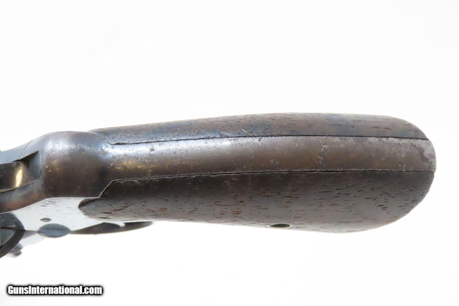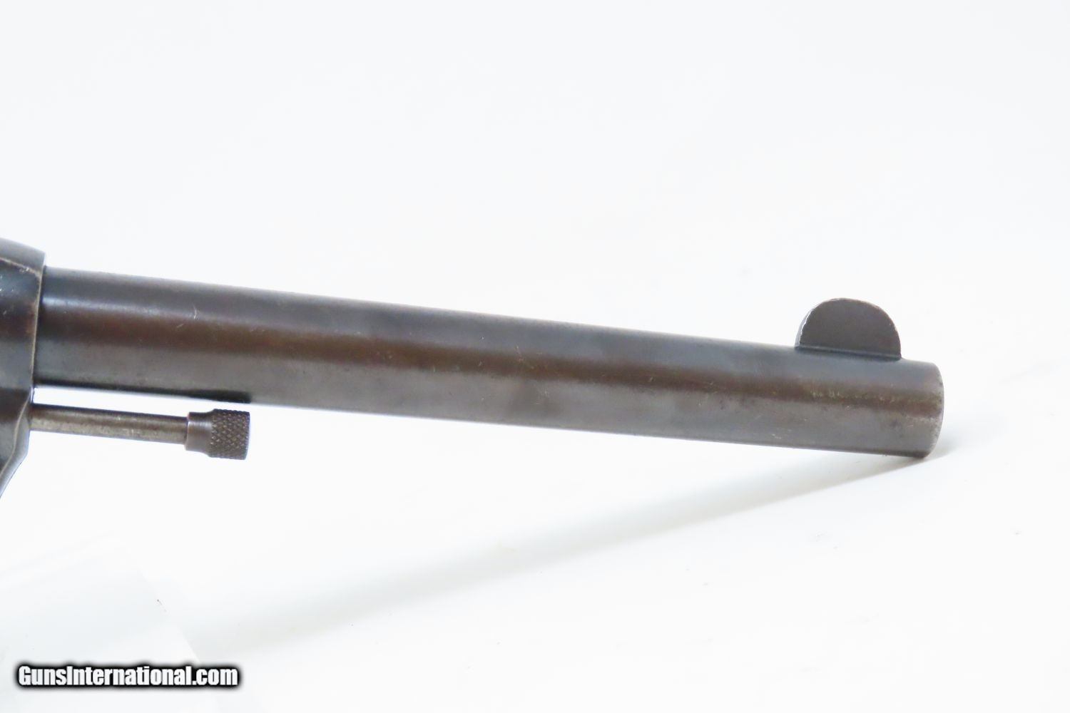 Description: 1st Year COLT Model 1892 NEW ARMY & NAVY .38 Double Action REVOLVER Antique Spanish American War Era Sidearm Here we present an antique Colt Model 1892 New Army & Navy Double Action Revolver, made during the first year of production in 1892 by the Colt Manufacturing Company with a production run from 1892 through 1907 in Hartford, Connecticut. The M1892 Colt Army and Navy was the first general issue double action revolver with a swing out cylinder used by the US military. In 1892 the gun was adopted by the Army in .38 Long Colt caliber, and the revolver was given the name of New Army and Navy. Initial experience with the gun caused officials to request some improvements. This would be an ongoing condition, resulting in Models 1892, 1894, 1896, 1901, and 1903 for the Army. A Model 1892 revolver was recovered from the USS Maine after it exploded in Havana Harbor in 1898. It was presented to then-Assistant Secretary of the Navy Theodore Roosevelt, who would later become President of the United States. Roosevelt brandished this pistol to rally his Rough Riders during the famed charge up San Juan Hill on July 1, 1898. By the time production ceased in 1907 (the gun would be kept in the government inventory for several years after that) more than a quarter of a million versions of the Army & Navy had been made. Not a bad track record for an arm that many consider something of a failure. The overall condition is fine. Original blue preserved. Bright bore with nice rifling. Excellent action. Nice walnut grips that show wear and use. A nice example of the New Army & Navy revolver from 1892! Own the original! This is a legitimate antique and not a reproduction. Barrel is 6 inches. Caliber: .38 Long Colt Overall condition as seen in photos. Very Fast. Very Safe. FREE SHIPPING WORLDWIDE. Delivered directly to your door by express mail! Guaranteed AUTHENTIC & Includes CERTIFICATE OF AUTHENTICITY. ancestryguns $1635 #210457 SOLD Antique: Yes |
