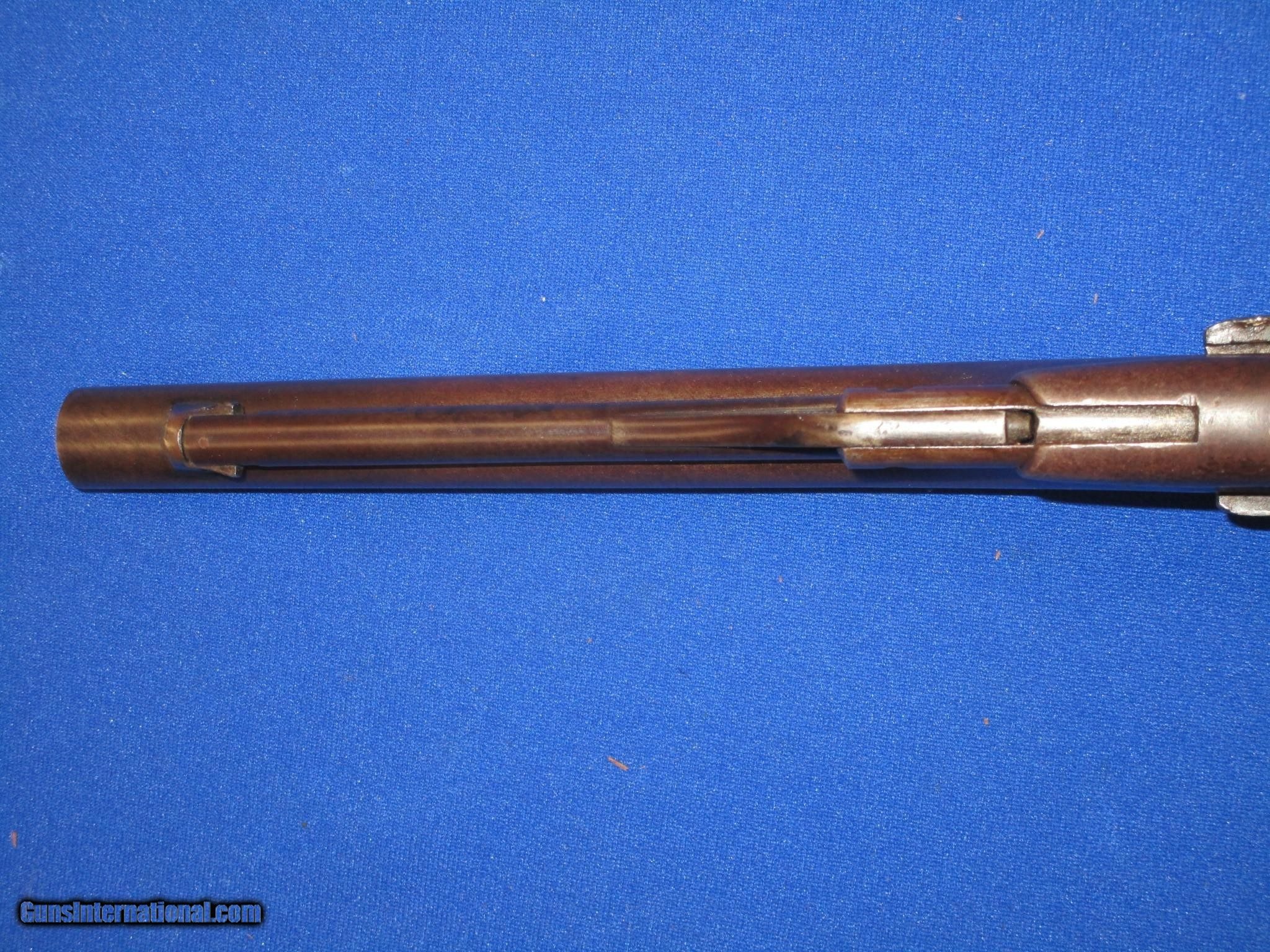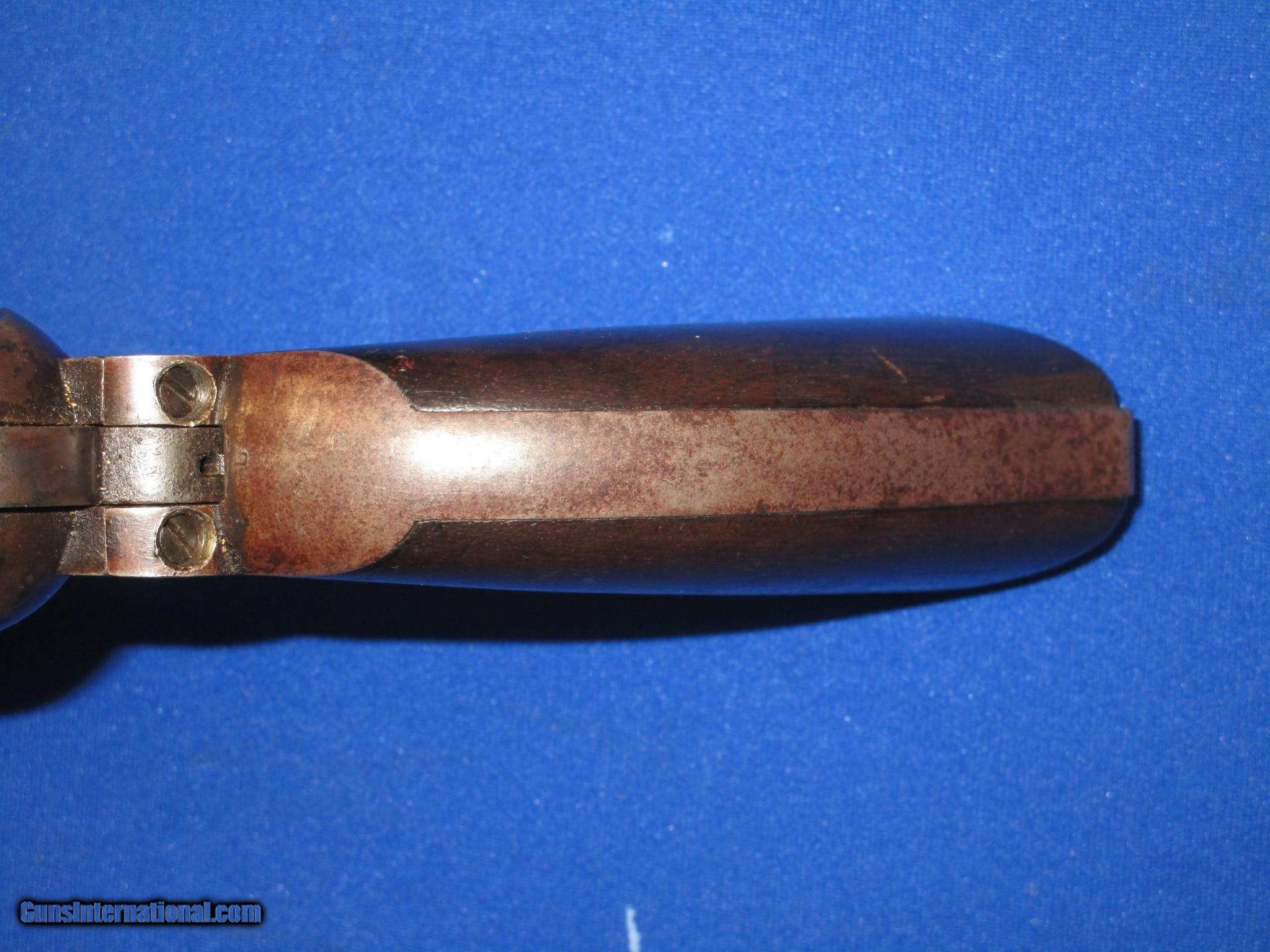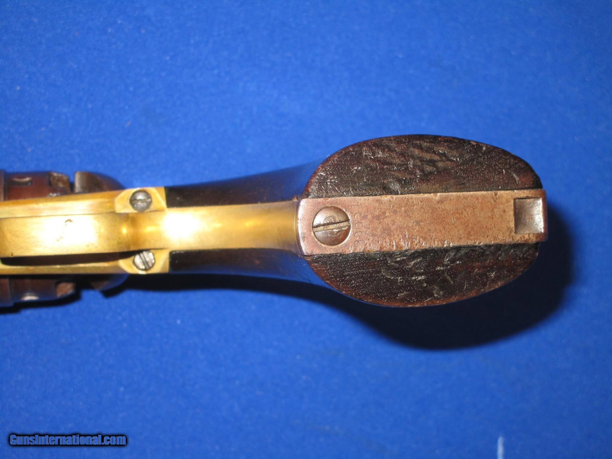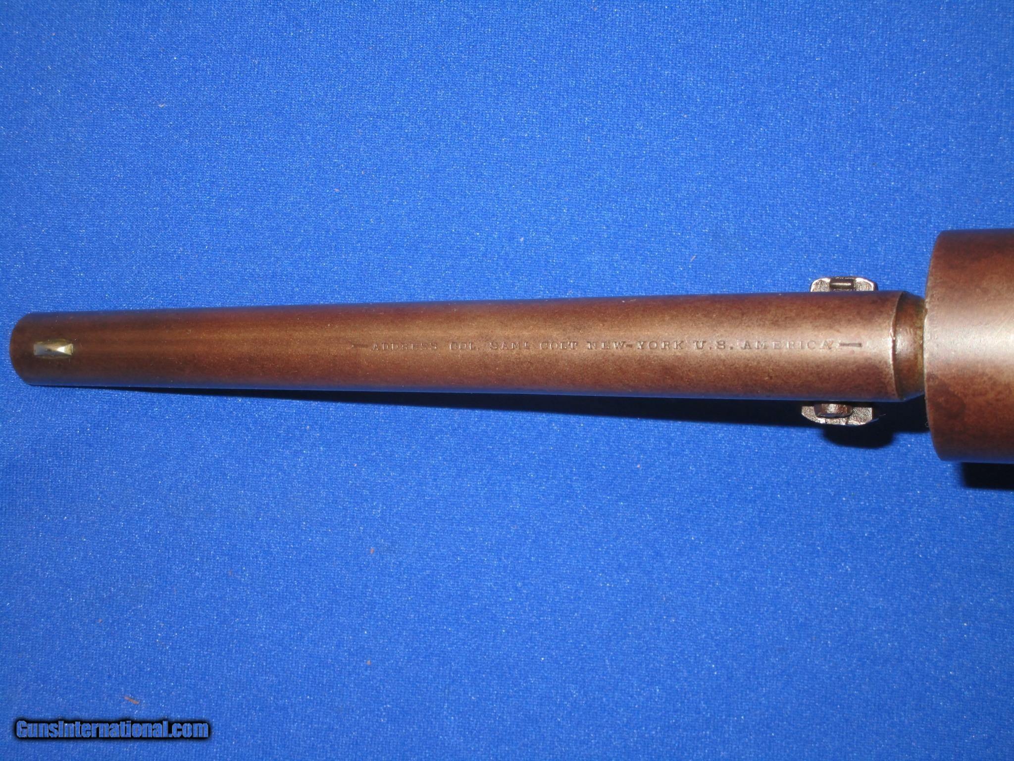 Description: AN EARLY U.S. CIVIL WAR MILITARY ISSUED COLT MODEL 1860 PERCUSSION ARMY REVOLVER IN VERY NICE UNTOUCHED CONDITION. SERIAL #39,904 WITH ALL MATCHING NUMBERS. MADE IN 1862, ALL ORIGINAL AND COMPLETE. THE ARMY REVOLVER HAS FINE METAL, MARKINGS, AND EDGES. IT HAS A NICE CYLINDER SCENE WHICH SHOWS LIGHT THINNING IN SPOTS. IT IS FULLY U.S. SUB INSPECTED. ALL OF THE METAL ON THE GUN HAS AN UNTOUCHED AND NATURAL CHOCOLATE BROWN PATINA ON IT. THE BRASS TRIGGER GUARD IS ALSO UNTOUCHED. IT HAS FINE & FULL ORIGINAL GRIPS WITH A VERY CLEAR U.S. MILITARY INSPECTORS CARTOUCHE ON THE LEFT SIDE. IT HAS A FINE ACTION & VERY NICE BORE. THIS IS A VERY UNTOUCHED & EARLY EXAMPLE OF A FINE U.S. MILITARY ISSUED CIVIL WAR COLT MODEL 1860 ARMY REVOLVER! SOLD Antique: Yes Manufacturer: COLT Model: U.S. 1860 ARMY REVOLVER Serial Number: 39,904 Caliber Info: .44 Condition: NICE & UNTOUCHED Metal Condition: VERY NICE Wood Condition: FINE Bore Condition: VERY GOOD PLUS |