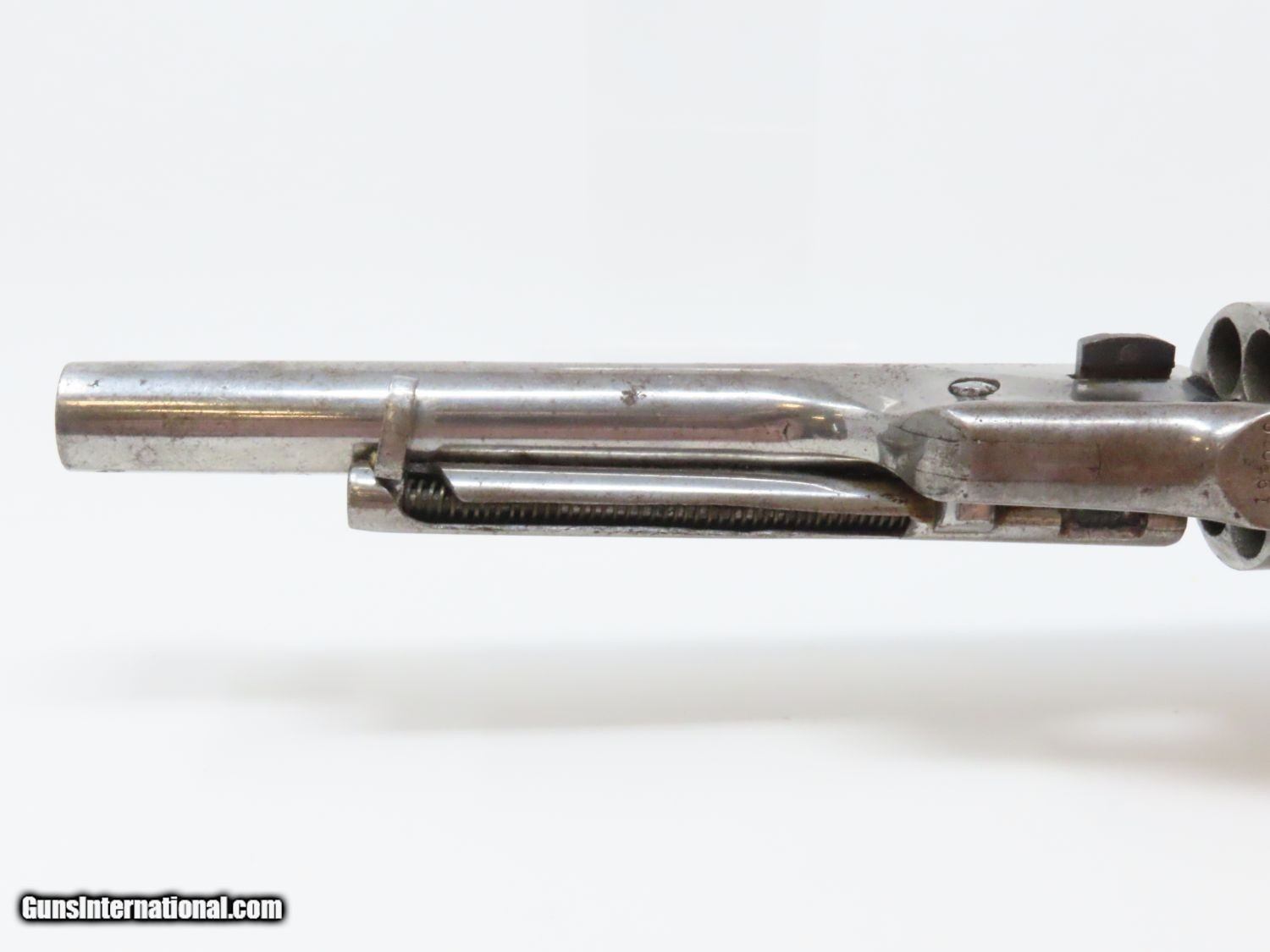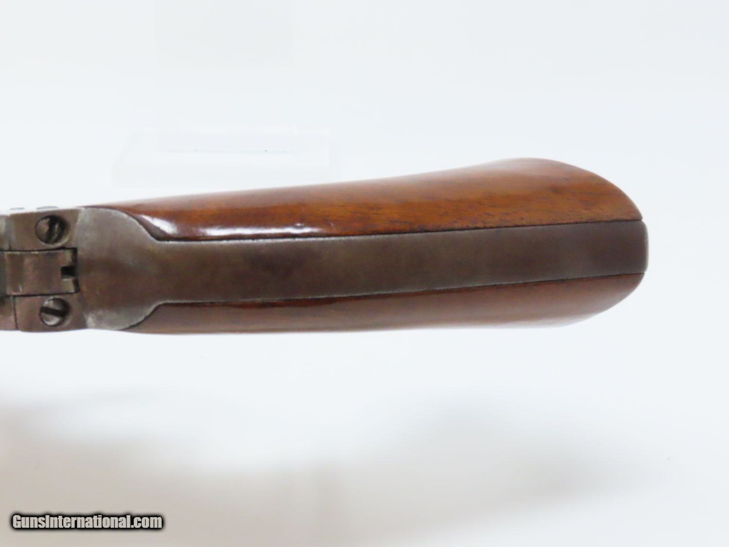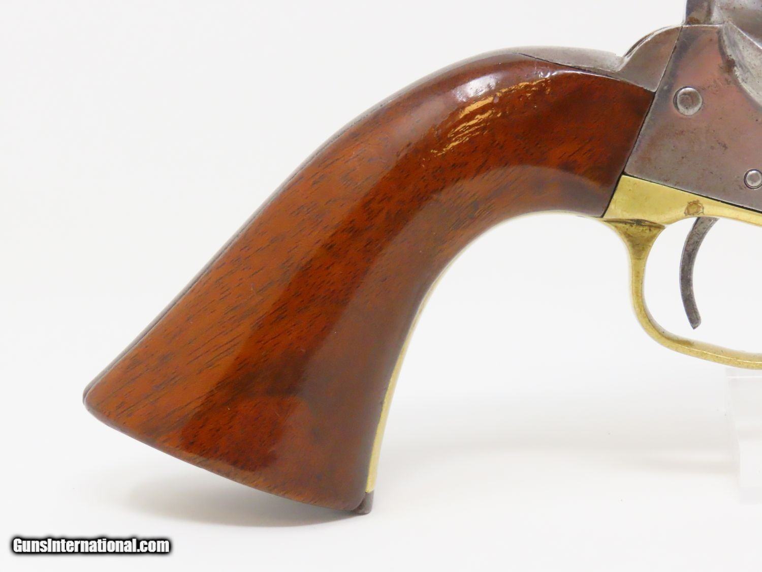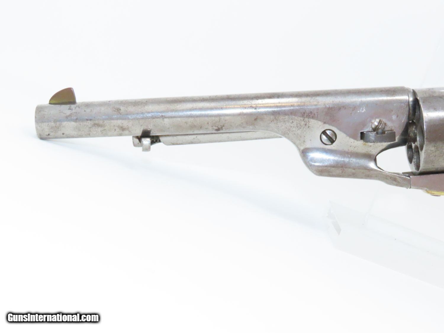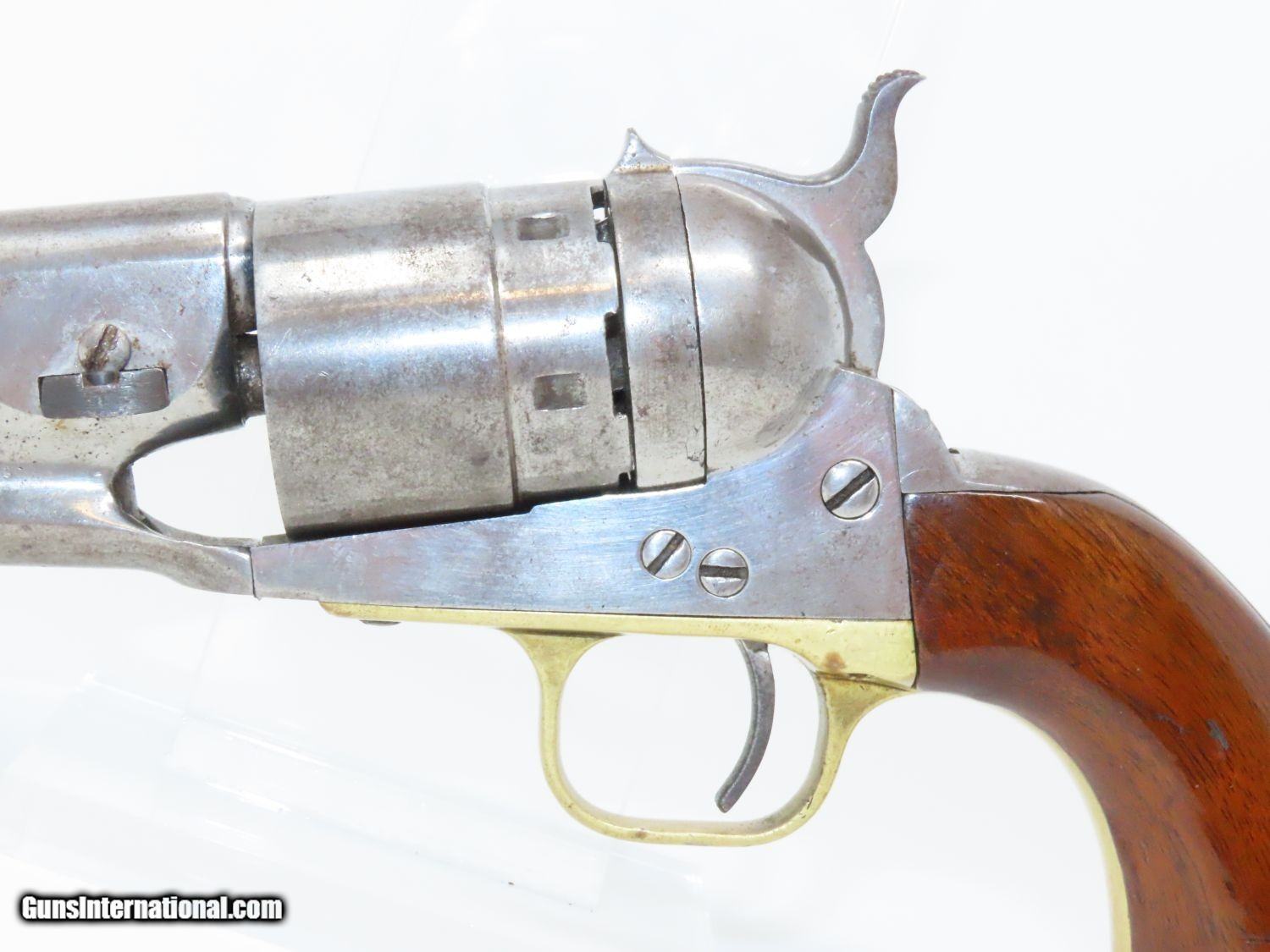 Description: Antique COLT M1860 ARMY RICHARDS Conversion .44 Caliber Centerfire REVOLVER SCARCE 1 of 9,000 Manufactured! Here we present an antique Colt Model 1860 Army Richards Conversion Revolver, manufactured circa 1871-78. Charles B. Richards was an engineer who worked for the Colt’s Patent Fire Arms Company and was awarded a patent for converting Colt percussion models to breech loading cartridge revolvers. After the onset of the American Civil War, Richards eventually became Superintendent of Engineering at the Colt factory in Hartford, Connecticut. Richards' first major post-Civil War design was Colt's second attempt at metallic cartridge conversion known as the "Richards Conversion". Colt's revolvers to this point had been black powder percussion pistols. However, the US Army wanted a revolver that held metallic cartridges, which Colt could not produce because the Rollin White patent was still held by rival Smith & Wesson. Colt's only solution would be to bore through the rear of their cylinders and devise a new method of ignition and case extraction. The Richards Conversion was performed on the Colt 1860 Army revolver. The caliber was .44 Colt and the loading lever was replaced by an ejector rod. This conversion added a breechplate with a firing pin and a rear sight mounted on the breechplate. Colt manufactured 9,000 of these revolvers between 1873 and 1878. In 1873 Colt performed the same conversion on the M1851 and M1861 revolvers for the US Navy in .38 rimfire. The Richards conversion was an instant success, all being done concurrently with the iconic Colt Single Action Army, which Richards was responsible for the development of! The 1860 Army was the single most used pistol of the American Civil War. Over 200,000 were made from 1860 to 1873, and 156,000 of those were made by the end of the war in 1865. The overall condition is very good. The action is strong. The bore is semi-bright in good condition. The grips are in great shape and the finish still shines. All the numbers match. Here is a fantastic example of the Richards Conversion to collect and display! Own the original! This is a legitimate antique and not a reproduction. Barrel is 6-3/4 inches. Caliber: .44 Centerfire Overall condition as seen in photos. Very Fast. Very Safe. FREE SHIPPING WORLDWIDE. Delivered directly to your door by express mail! Guaranteed AUTHENTIC & Includes CERTIFICATE OF AUTHENTICITY. ancestryguns $3195 #20782 SOLD Antique: Yes |