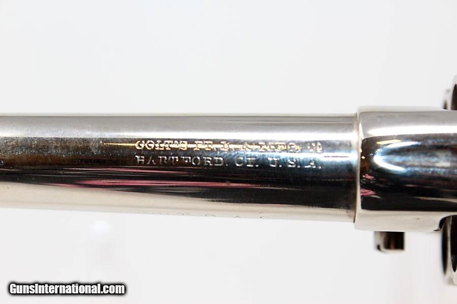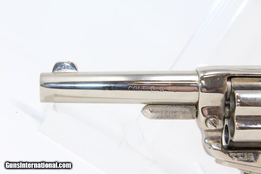 Description: Antique COLT Model 1877 “Lightning” .38 Revolver Double Action .38 Colt Made in 1896 Here we present an antique Colt 1877 Lightning Double Action Revolver, made in 1896 in Hartford, Connecticut. The Model 1877 was Colt’s first venture into double action revolvers. It was quite successful, selling 166,849 from 1877 through 1909. Nonetheless, there was some hesitation to move away from the single action mechanism, which had so proven itself. Famous adopters of the Lightning were William “Billy the Kid” Bonney and John Wesley Hardin, along with “Doc” Holliday. Doc’s weapon of choice early in his western career was an 1851 Colt Navy revolver. Later, Doc carried a nickel-plated .41 caliber Colt Thunderer or the .38 caliber Colt Lightning. The Model 1877 was offered in three calibers, which lent them three unofficial names: the "Lightning", the "Thunderer", and the "Rainmaker". Neither "Lightning" nor "Thunderer" were Colt designations, nor used by the factory in any reference materials. Both terms were coined by Benjamin Kittredge, one of Colt's major distributors. The principal difference between the models was the cartridge in which they were chambered. The "Lightning" being chambered in .38 Long Colt and the "Thunderer" in .41 Long Colt. Both models had a six-round ammunition capacity. An earlier model in .32 Colt known as the "Rainmaker" was offered in 1877. The overall condition is fine. This revolver has been nickeled at some point. The markings are legible. The numbers match. The Colt trademarked hard rubber grips are in great shape. The bore is in very good shape, clean with strong rifling. The action is strong though cylinder timing could use work. A very nice Colt! Own the original! This is a legitimate antique and not a reproduction. Barrel is 3-1/2 inches. Caliber: .38 Colt Overall condition as seen in photos. Very Fast. Very Safe. FREE SHIPPING WORLDWIDE. Delivered directly to your door by express mail! Guaranteed AUTHENTIC & Includes CERTIFICATE OF AUTHENTICITY. ancestryguns $1200 #8309 SOLD Antique: Yes |