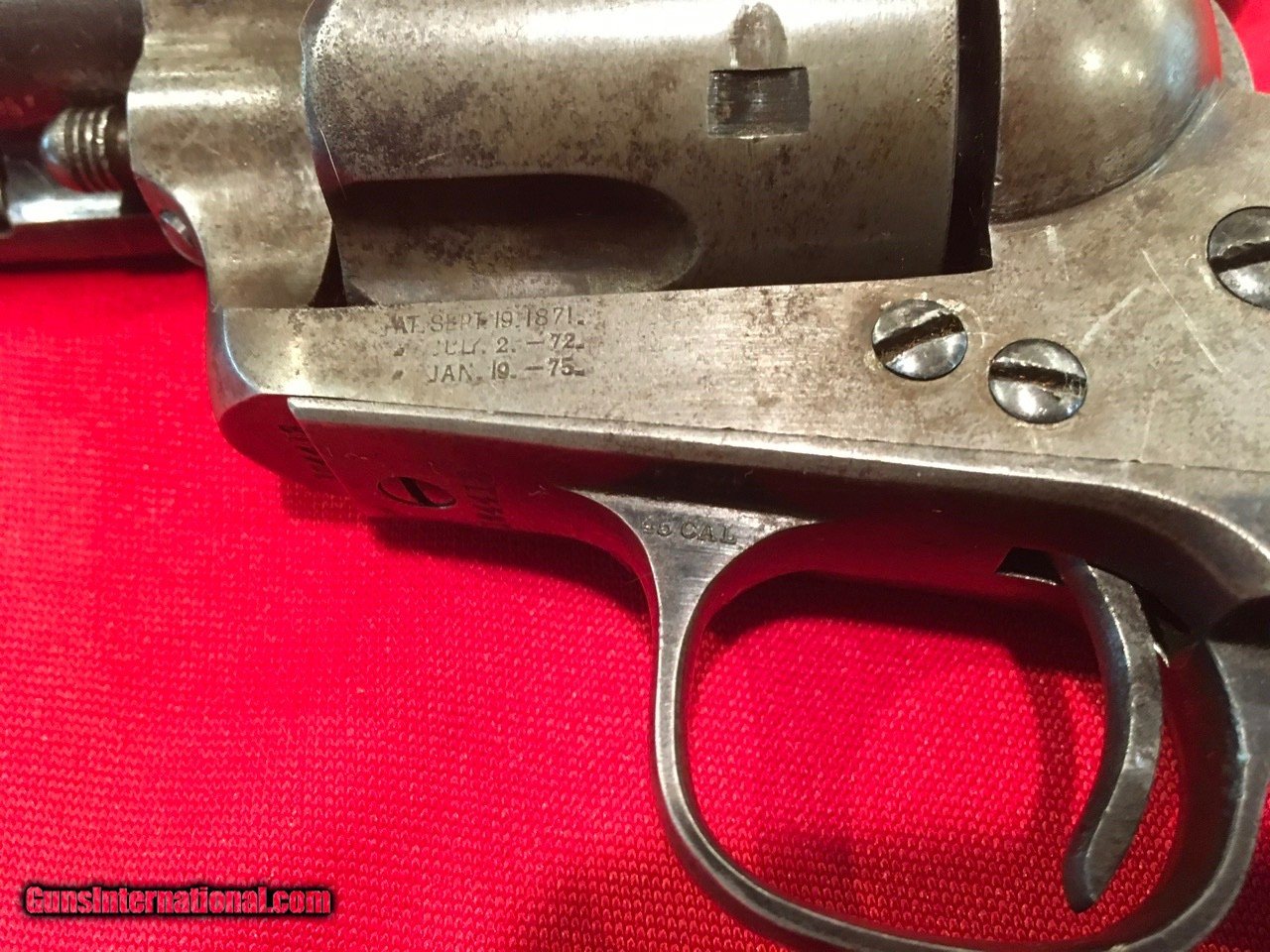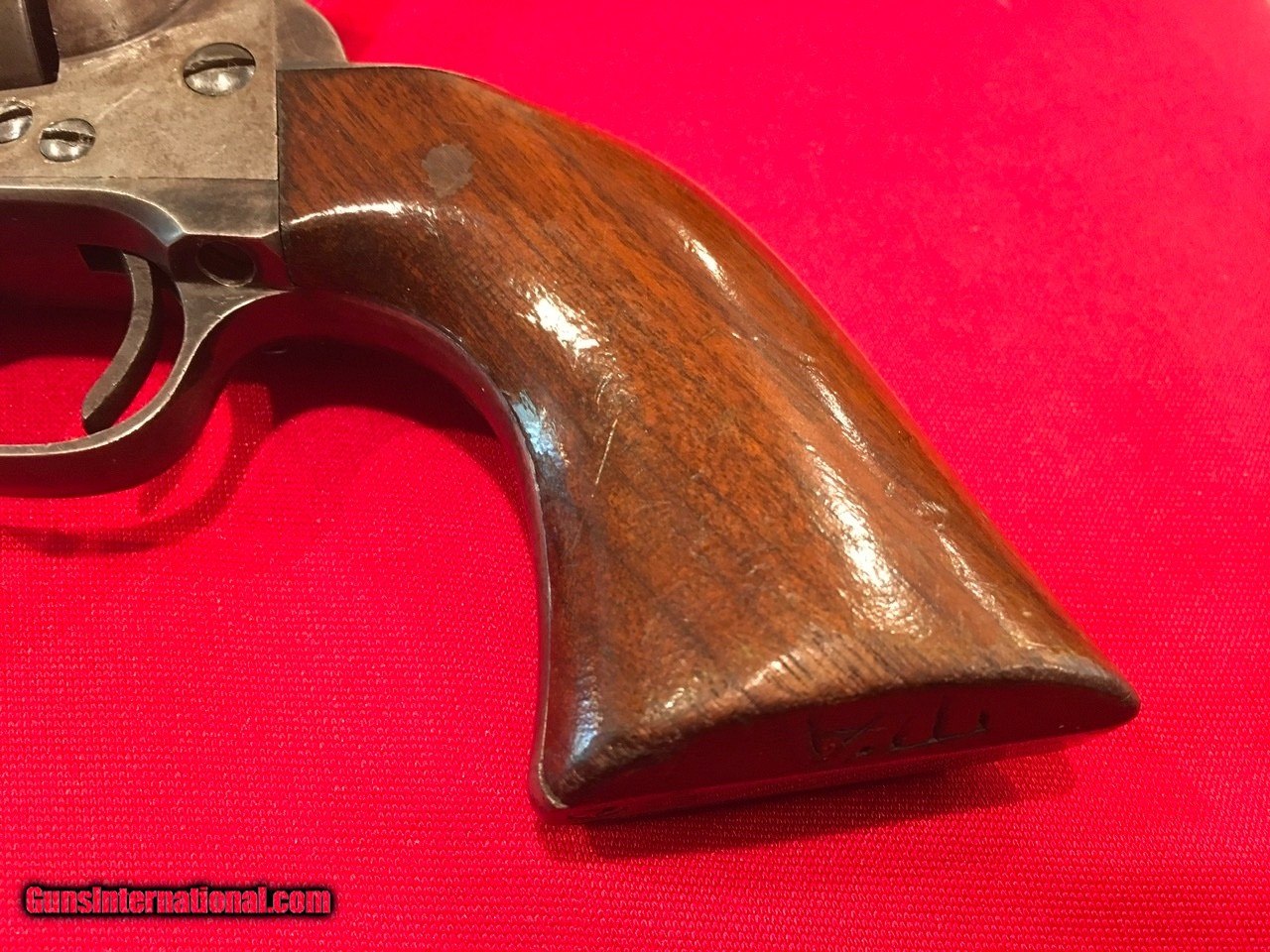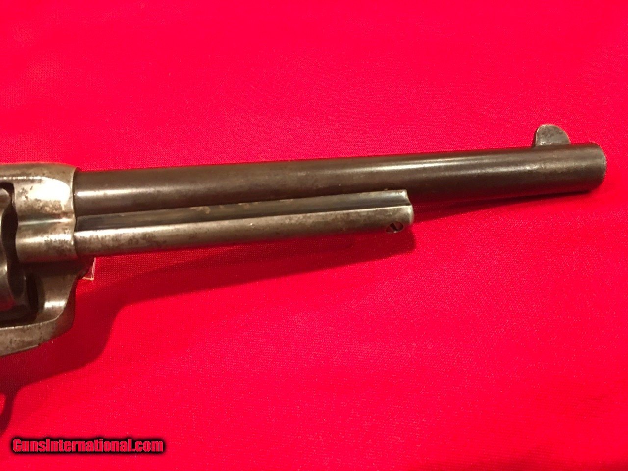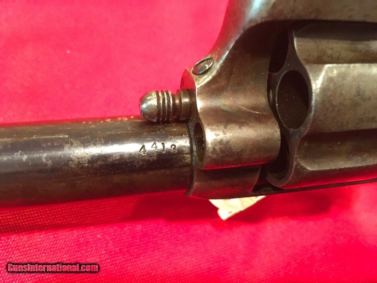 Description: Sale Pending Handsome, antique, Colt Single Action Army with archive record keeping error. Serial number 104413 matches on the frame, triggerguard and backstrap with the last four digits on the cylinder and on the barrel under the ejector housing. Comes with a Colt Archive letter that lists the features as .45/c caliber, 4 3/4" barrel, blue finish with stocks not listed. It was shipped to E.C. Meacham Arms Company in St. Louis, MO on December 22, 1883 in a shipment of 50 guns. This Colt is 100% original from the 7 1/2" barrel (correctly numbered, see photos) to the factory, wood grips with most of the original varnish. This type of error is not that unusual, I have seen several record keeping errors similar to this. The action functions flawlessly and the bore is good. The factory applied markings are all clear and crisp. There are nice areas of original factory blue throughout and traces of case colors in the protected areas. Price includes insurance and shipping to the continental United States where legal. A three day inspection is offered with full refund if returned unfired in the same condition. Buyer to pay return shipping. Please let me know if you have any questions or need additional photos. I would consider trades and all offers. SOLD Antique: Yes |