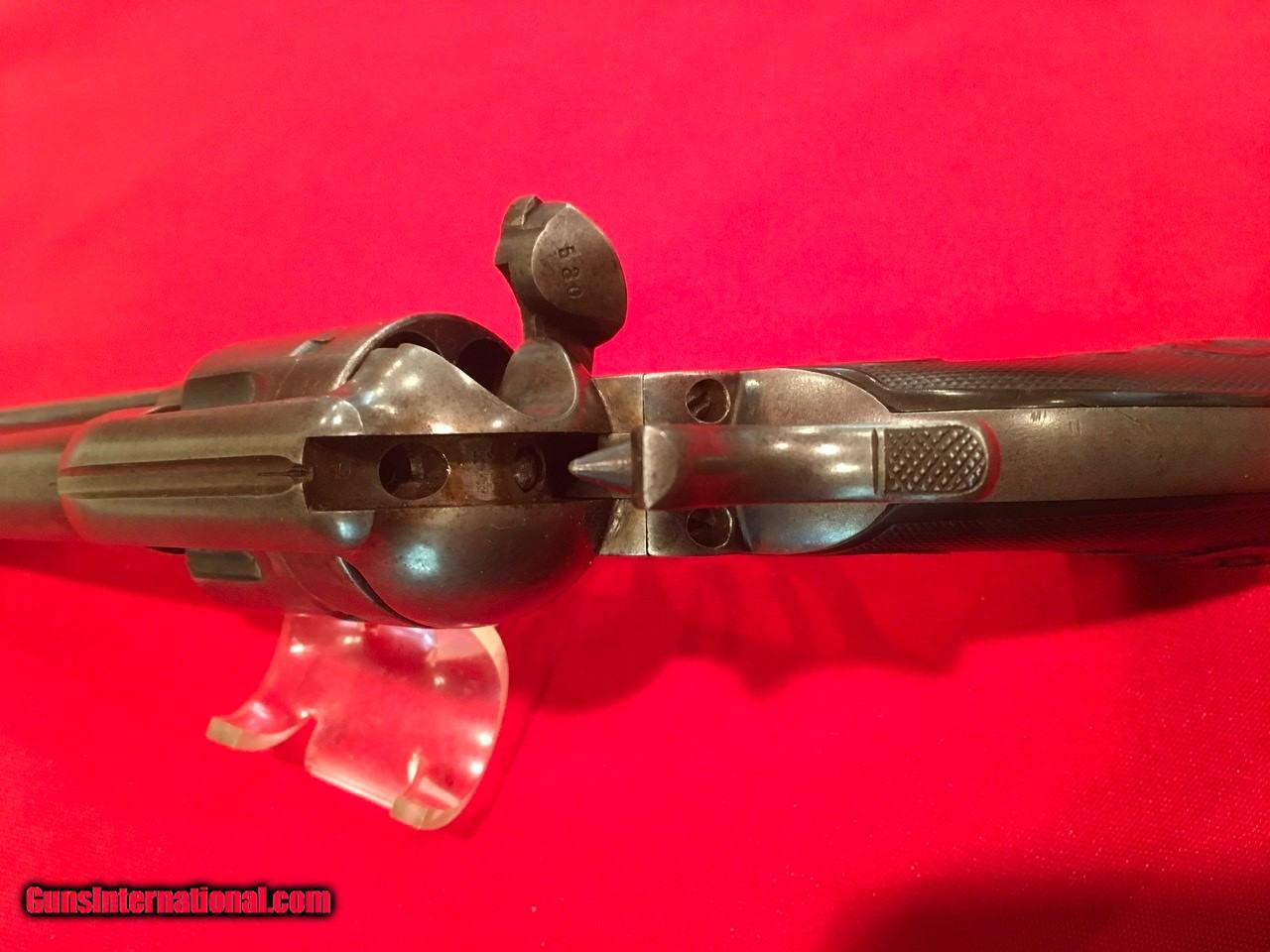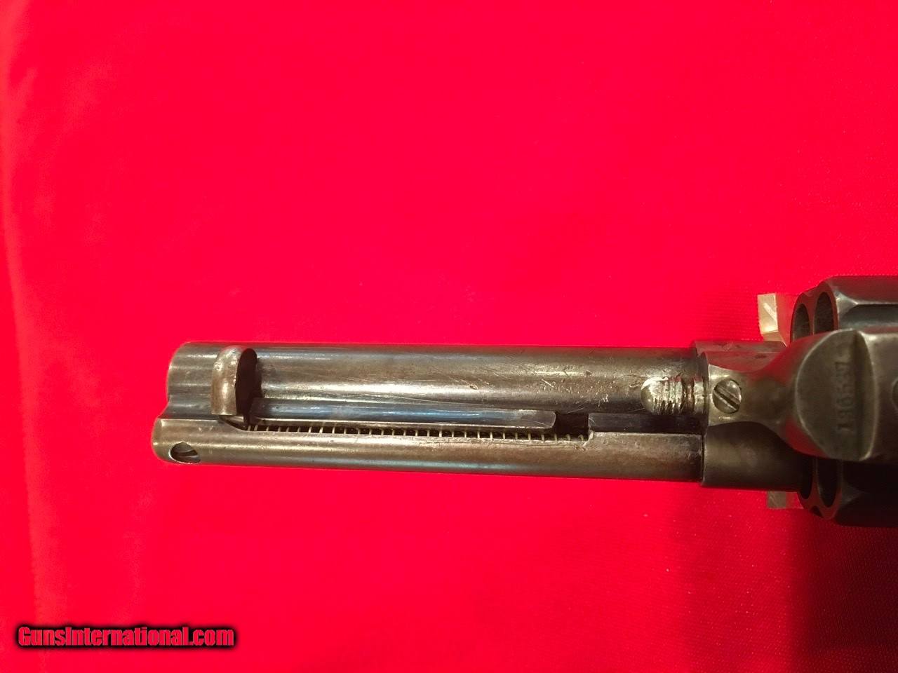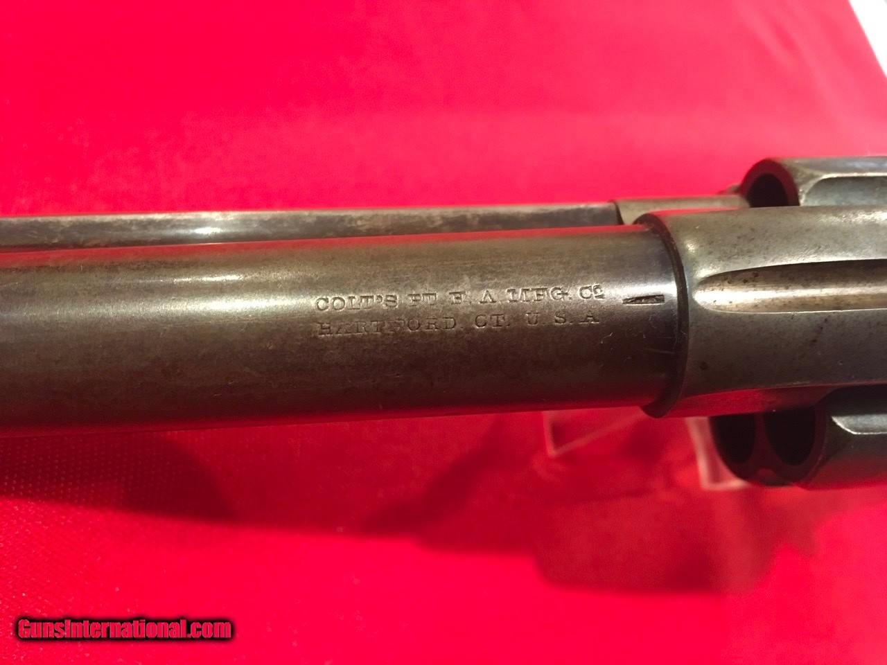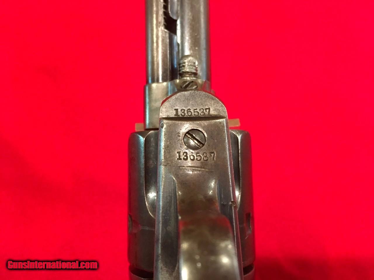 Description: This Colt Single Action Single Action Army is serial number 136537 that matches on the frame, triggerguard and backstrap. It comes with a Colt Archive letter that confirms it's features as a .45/c caliber with a 4 3/4" barrel, blue finish. The stocks are not listed which is normal for guns that have standard rubber stocks. The hard rubber grips are in very good condition and fit very well but are likely period replacements. This Colt shipped on November 29, 1890 to J.P. Lower in Denver, Colorado with 2 other guns in the shipment. The action functions properly and locks up tight. The bore is very good as are the screws and all factory applied markings. There are good amounts of original blue and traces of case colors. Price includes insurance and shipping to your FFL dealer in the continental United States where legal. A three day inspection is offered with full refund if returned unfired in the same condition. Buyer to pay return shipping. Please let me know if you have any questions or need additional photos. SOLD Antique: Yes |
