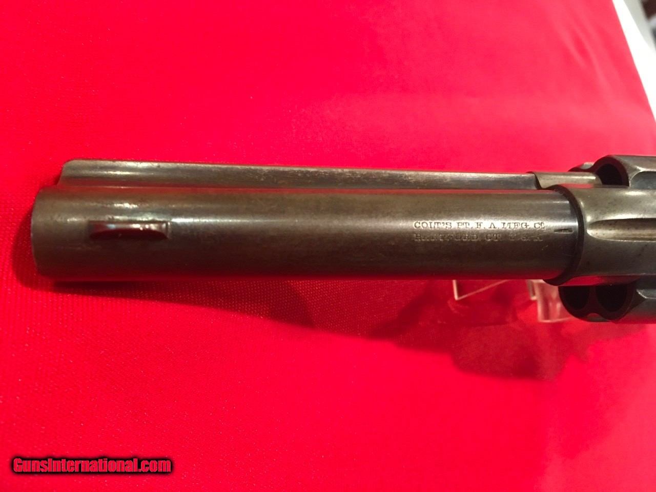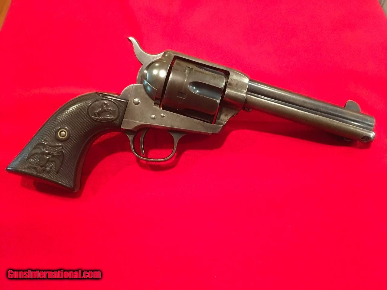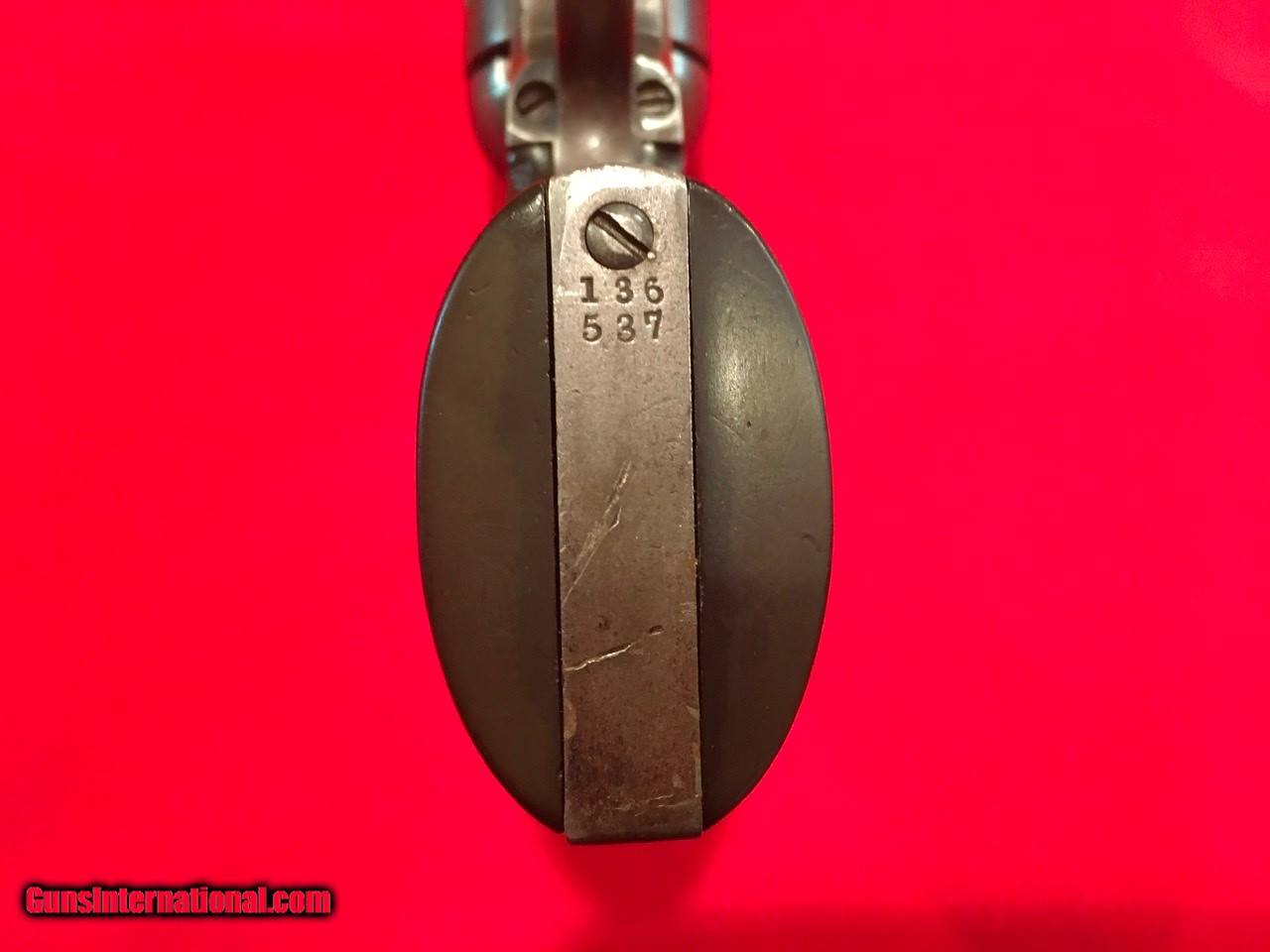 Description: This Colt Single Action Single Action Army is serial number 136537 that matches on the frame, triggerguard and backstrap. It comes with a Colt Archive letter that confirms it's features as a .45/c caliber with a 4 3/4" barrel, blue finish. The stocks are not listed which is normal for guns that have standard rubber stocks. The hard rubber grips are in very good condition and fit very well but are likely period replacements. This Colt shipped on November 29, 1890 to J.P. Lower in Denver, Colorado with 2 other guns in the shipment. The action functions properly and locks up tight. The bore is very good as are the screws and all factory applied markings. There are good amounts of original blue and traces of case colors. Price includes insurance and shipping to your FFL dealer in the continental United States where legal. A three day inspection is offered with full refund if returned unfired in the same condition. Buyer to pay return shipping. Please let me know if you have any questions or need additional photos. SOLD Antique: Yes |