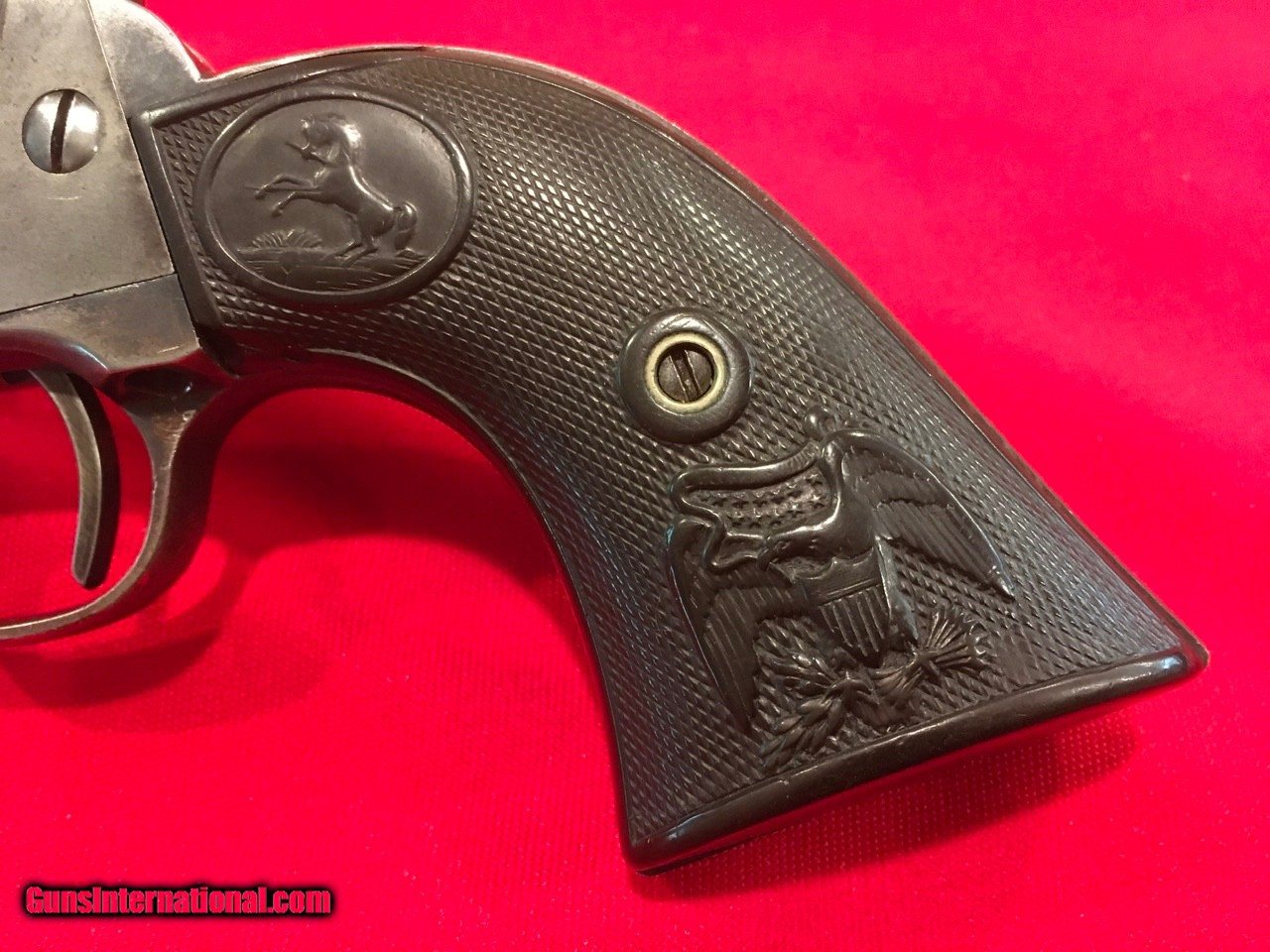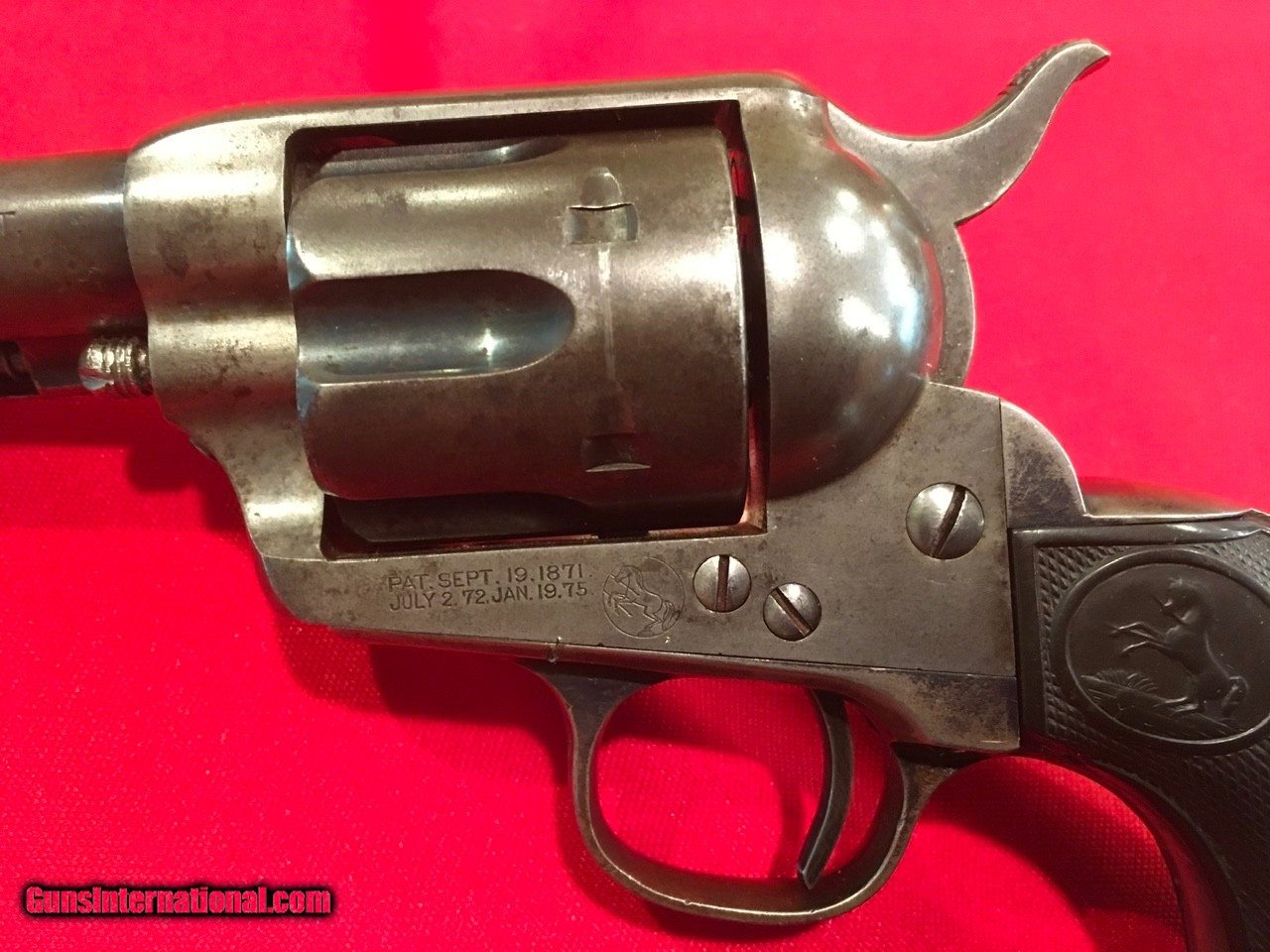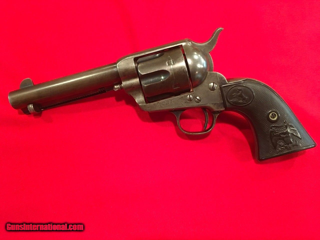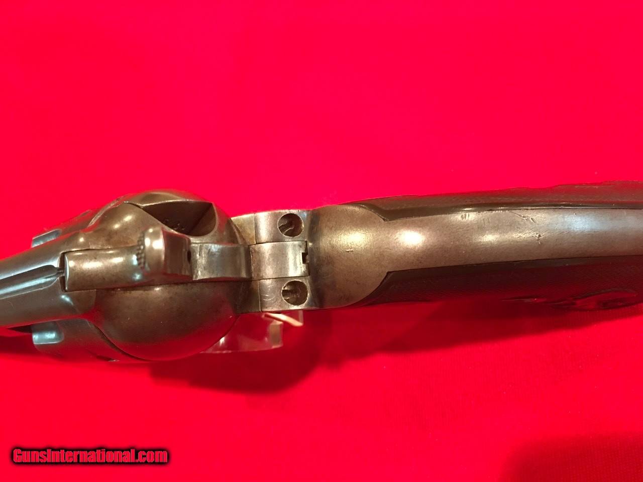 Description: This Colt Single Action Single Action Army is serial number 136537 that matches on the frame, triggerguard and backstrap. It comes with a Colt Archive letter that confirms it's features as a .45/c caliber with a 4 3/4" barrel, blue finish. The stocks are not listed which is normal for guns that have standard rubber stocks. The hard rubber grips are in very good condition and fit very well but are likely period replacements. This Colt shipped on November 29, 1890 to J.P. Lower in Denver, Colorado with 2 other guns in the shipment. The action functions properly and locks up tight. The bore is very good as are the screws and all factory applied markings. There are good amounts of original blue and traces of case colors. Price includes insurance and shipping to your FFL dealer in the continental United States where legal. A three day inspection is offered with full refund if returned unfired in the same condition. Buyer to pay return shipping. Please let me know if you have any questions or need additional photos. SOLD Antique: Yes |