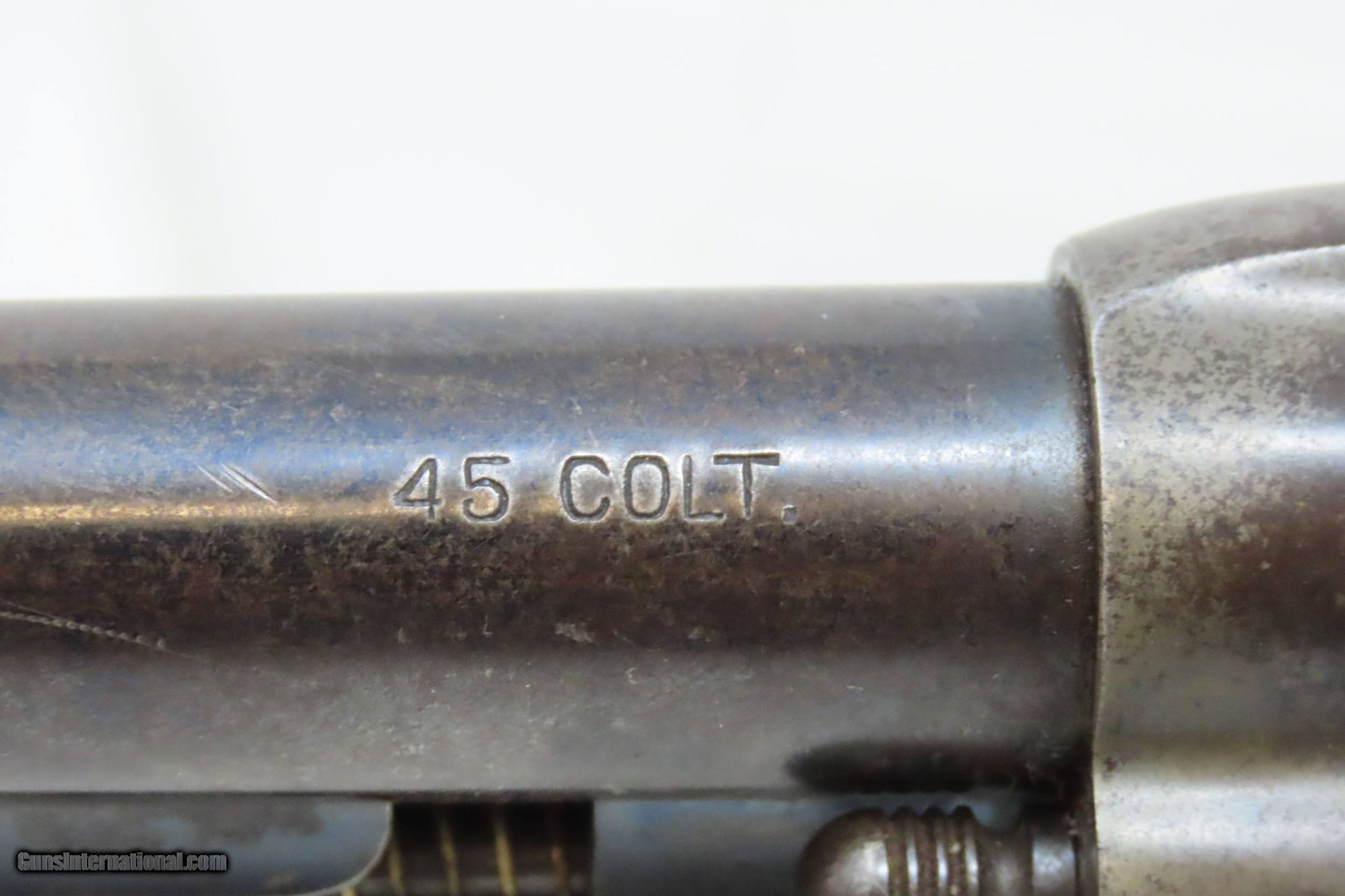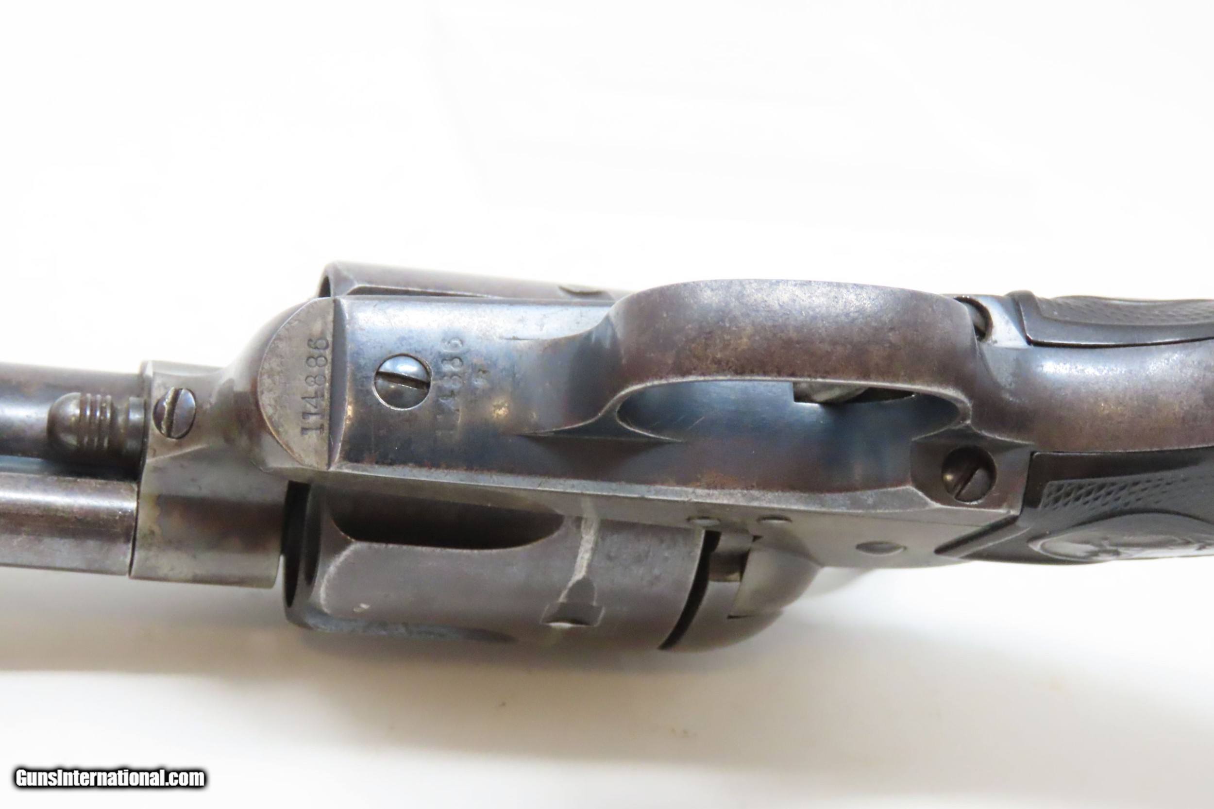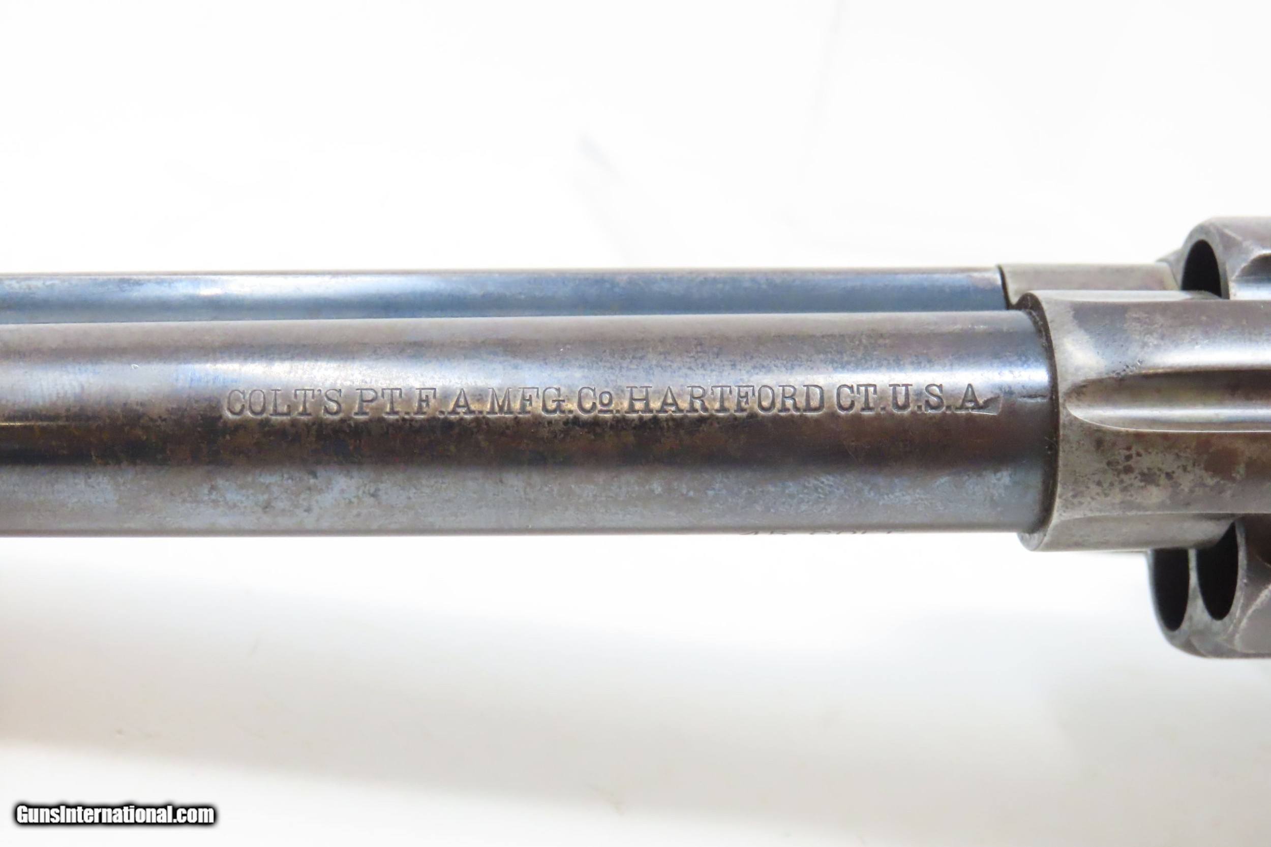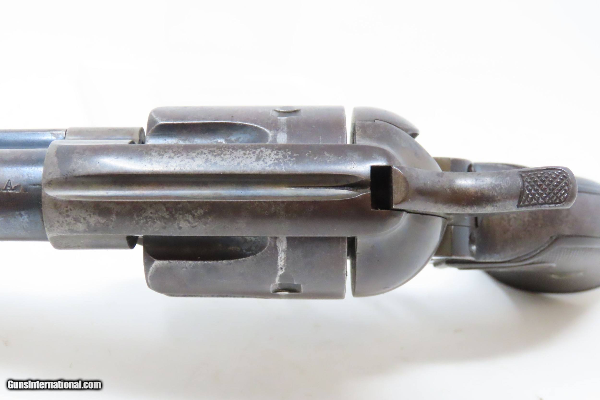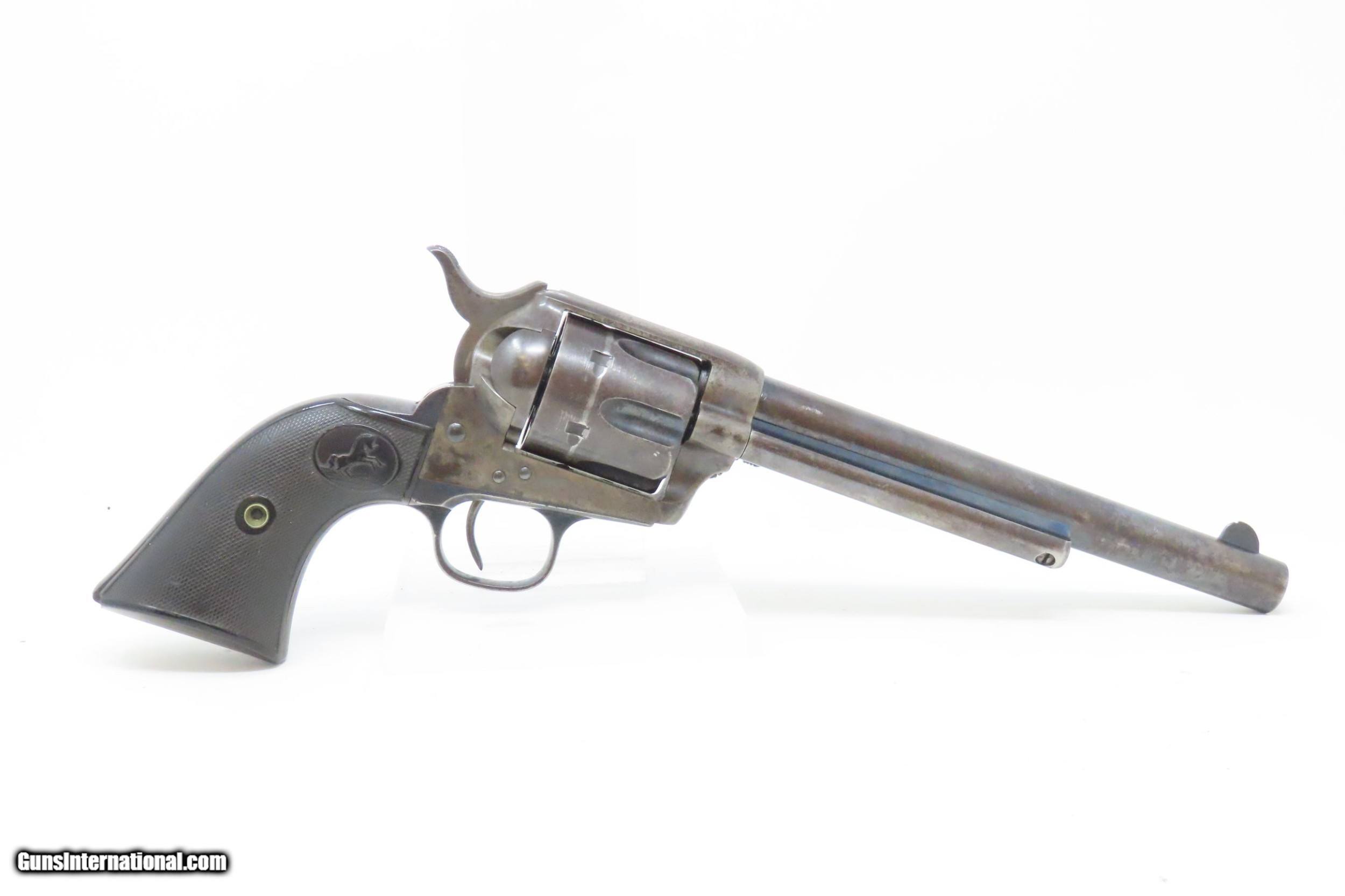 Description: Antique GOVT Contract US CAVALRY COLT SAA Revolver DAVID F. CLARK Inspected Iconic COLT .45 Made in 1885 Here we present an antique Colt Cavalry Model Single Action Army Revolver, manufactured in 1885 in Hartford, Connecticut. Though Colt enjoyed the largest contracts of any handgun maker during the American Civil War, it had to rely on its array of percussion fired revolvers, namely the 1860 Army until the Smith & Wesson owned Rollin White Patent expired in 1869. This enabled them to begin making revolvers with completely bored through cylinder chambers in order to utilize modern metallic cartridge ammunition in the most effective manner. In 1869, Colt’s began development of a suitable cartridge revolver in earnest, first coming out with a number of conversions for their percussion lines, until 1872 when they debuted what was to become the Colt Model 1873 Single Action Army in the 1872 U.S. Trials. Needless to say, it won, and became the Army’s revolver of choice. It also became the sidearm of choice for many others like cowboys, guards, lawmen, crooks, shopkeepers and all manner of civilians. This particular Colt Single Action Army Revolver is intriguing, to say the least. It features the 7-1/2 inch barrel of the cavalry model and it was inspected by David F. Clark. His initials may be observed on the bottom of the frame and on the cylinder. Single letter sub-inspector marks (“G”) are also found throughout. The left side of the frame was stamped “U.S.” as the final acceptance mark. The top of the barrel is marked “COLT’S PT.F.A. MFG. CO. HARTFORD, CT. U.S.A.” and is a later replacement that lacks the inspection markings and matching serial number. The rampant Colt trademarked hard rubber grips are also replacements. The left side of the frame is marked with patent dates in the years 1871, 1872 and 1875, along with the U.S. marking. It has a blade front and frame notch rear sights. The overall condition is near fine. Nice blue finish on the barrel and the trigger guard. Most likely armory refinished at some point. Good case colors on the frame. The action is excellent. The bore is bright and reflective with sharp rifling. The grips are in nice shape. Numbers match on the grip frame, trigger guard, frame, and cylinder. Own the original! This is a legitimate antique and not a reproduction. Barrel is 7-1/2 inches. Caliber: .45 Colt Overall condition as seen in photos. Very Fast. Very Safe. FREE SHIPPING WORLDWIDE. Delivered directly to your door by express mail! Guaranteed AUTHENTIC & Includes CERTIFICATE OF AUTHENTICITY. ancestryguns $8115 #217835 SOLD Antique: Yes |