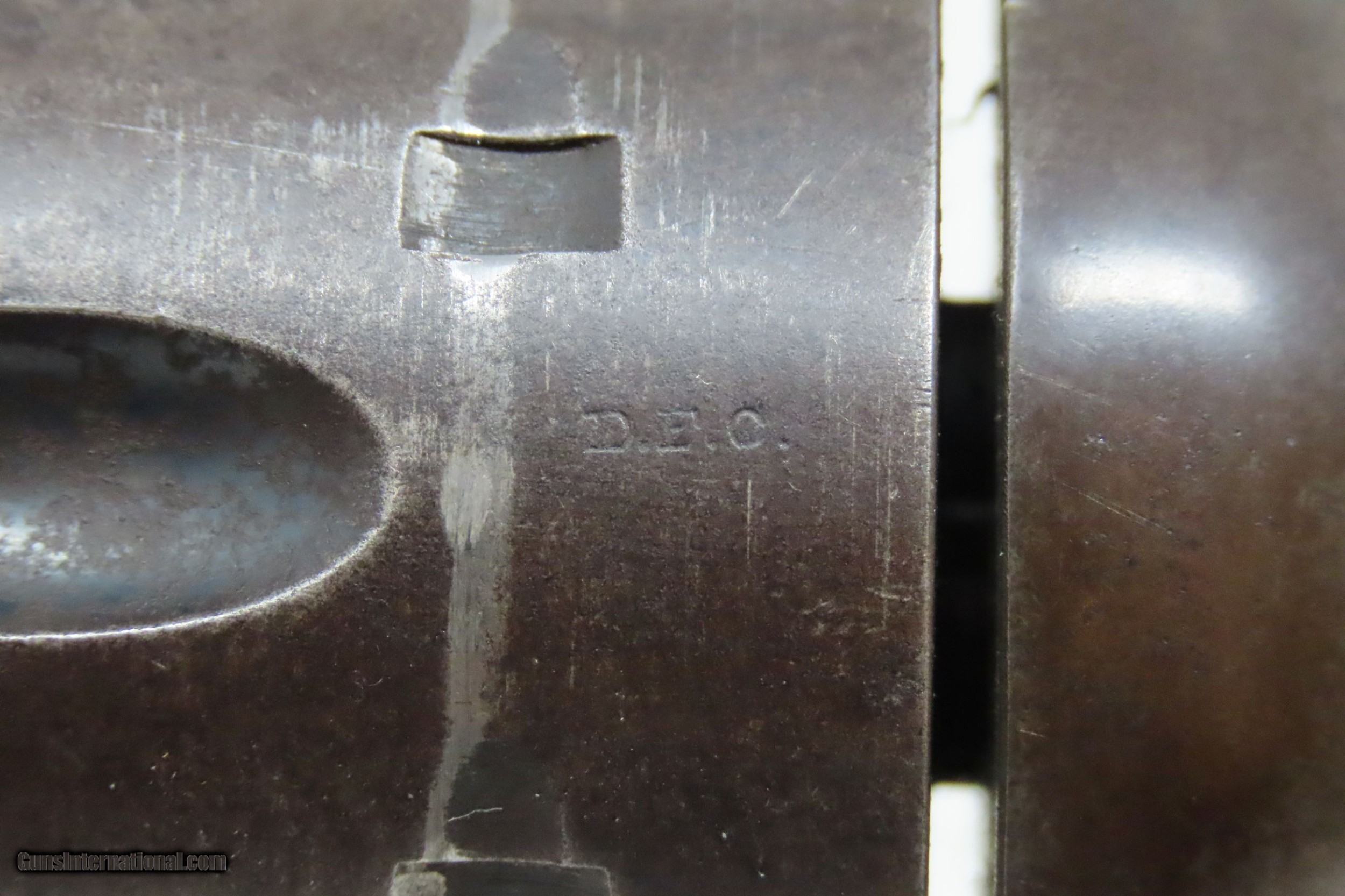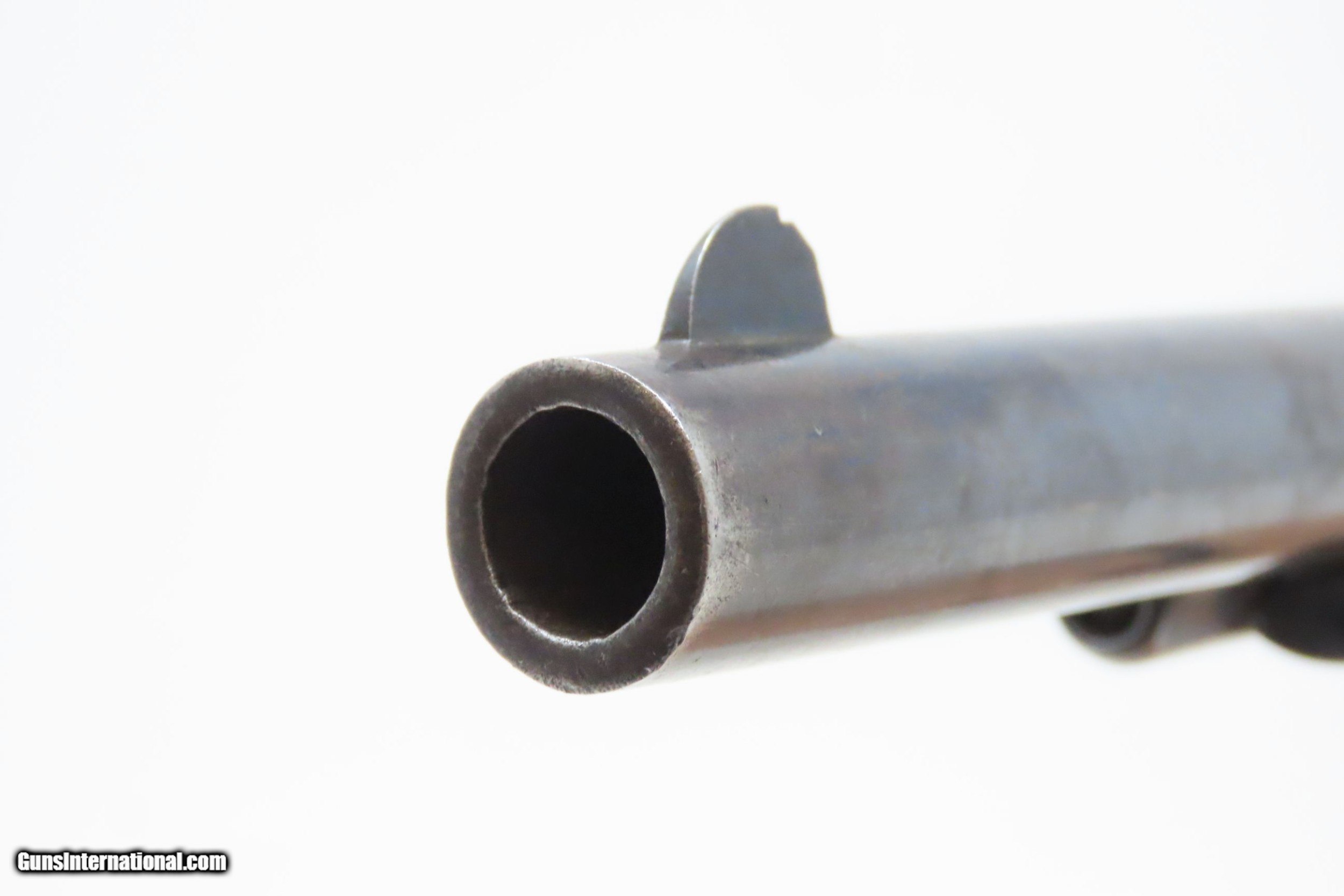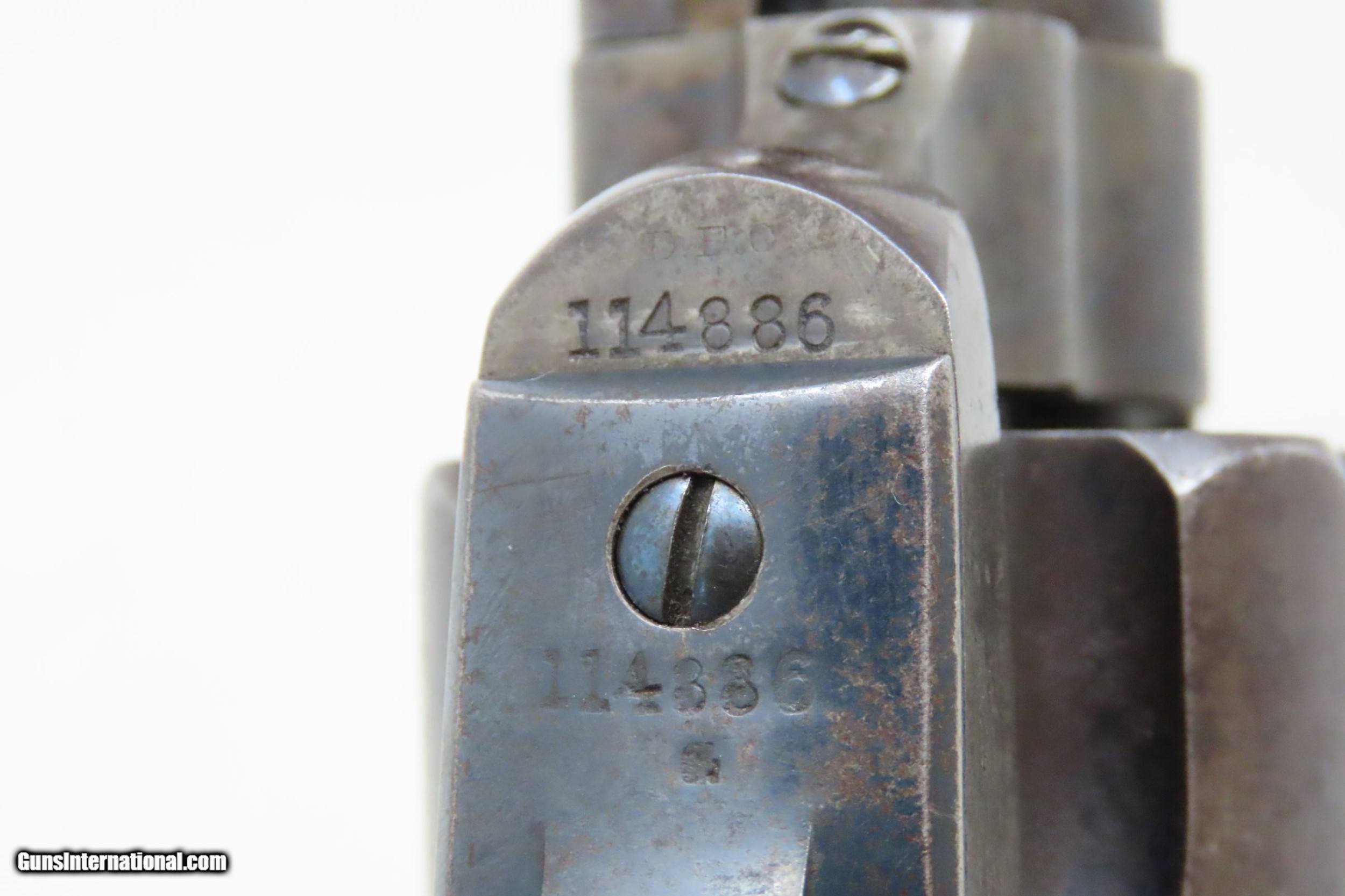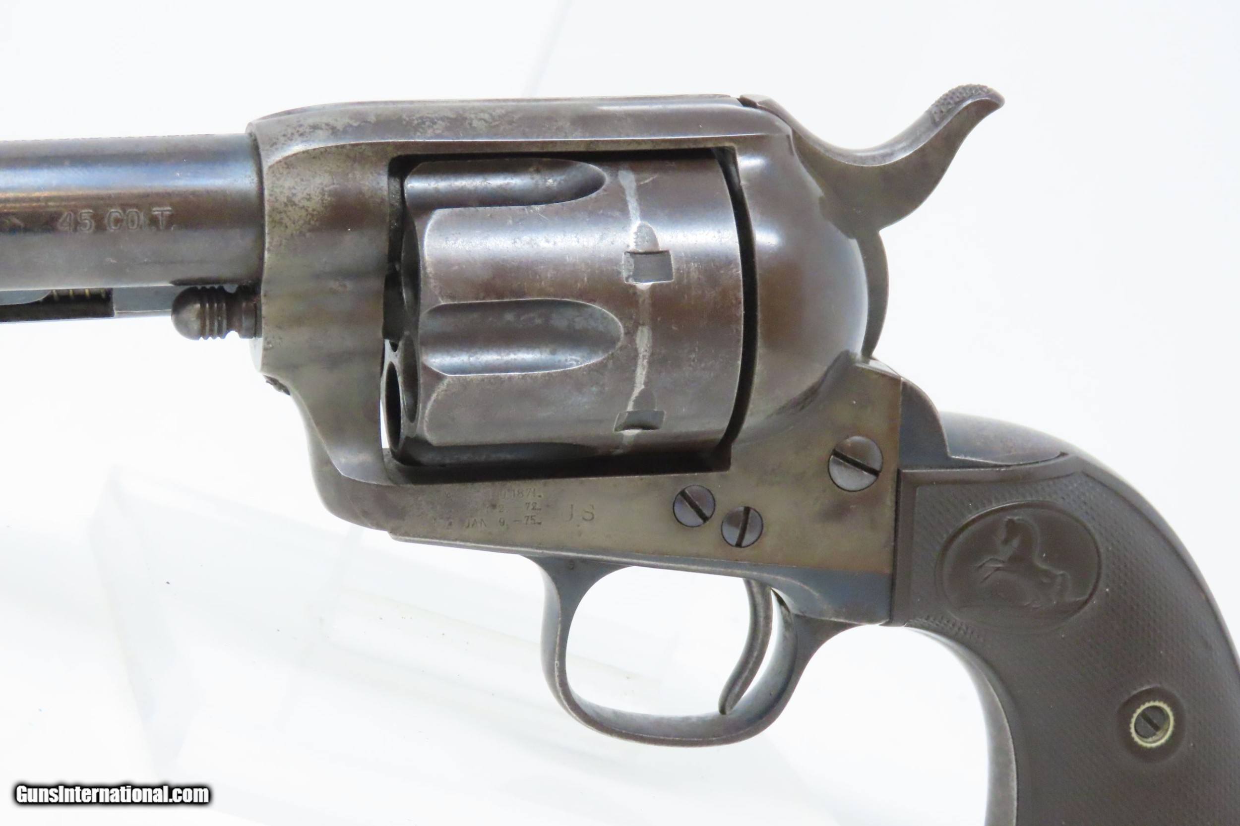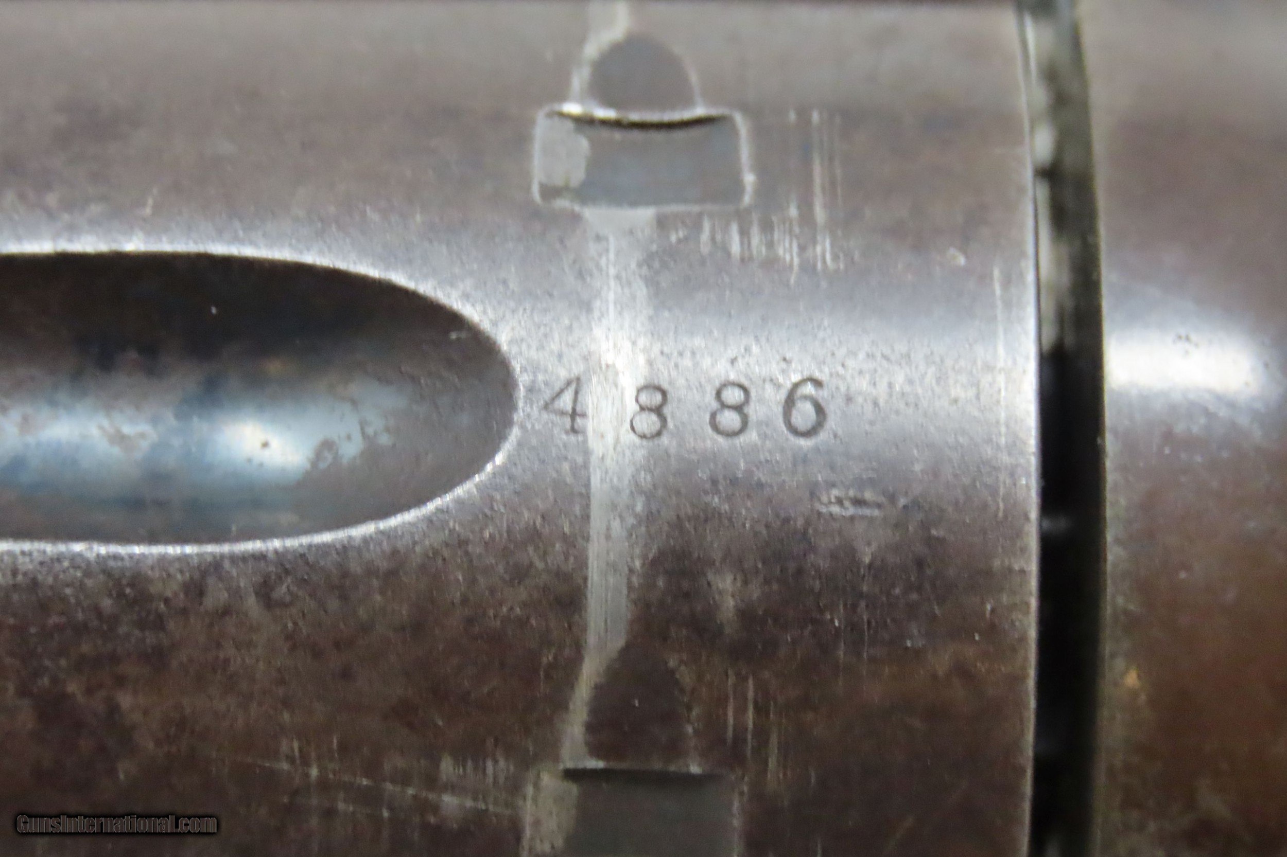 Description: Antique GOVT Contract US CAVALRY COLT SAA Revolver DAVID F. CLARK Inspected Iconic COLT .45 Made in 1885 Here we present an antique Colt Cavalry Model Single Action Army Revolver, manufactured in 1885 in Hartford, Connecticut. Though Colt enjoyed the largest contracts of any handgun maker during the American Civil War, it had to rely on its array of percussion fired revolvers, namely the 1860 Army until the Smith & Wesson owned Rollin White Patent expired in 1869. This enabled them to begin making revolvers with completely bored through cylinder chambers in order to utilize modern metallic cartridge ammunition in the most effective manner. In 1869, Colt’s began development of a suitable cartridge revolver in earnest, first coming out with a number of conversions for their percussion lines, until 1872 when they debuted what was to become the Colt Model 1873 Single Action Army in the 1872 U.S. Trials. Needless to say, it won, and became the Army’s revolver of choice. It also became the sidearm of choice for many others like cowboys, guards, lawmen, crooks, shopkeepers and all manner of civilians. This particular Colt Single Action Army Revolver is intriguing, to say the least. It features the 7-1/2 inch barrel of the cavalry model and it was inspected by David F. Clark. His initials may be observed on the bottom of the frame and on the cylinder. Single letter sub-inspector marks (“G”) are also found throughout. The left side of the frame was stamped “U.S.” as the final acceptance mark. The top of the barrel is marked “COLT’S PT.F.A. MFG. CO. HARTFORD, CT. U.S.A.” and is a later replacement that lacks the inspection markings and matching serial number. The rampant Colt trademarked hard rubber grips are also replacements. The left side of the frame is marked with patent dates in the years 1871, 1872 and 1875, along with the U.S. marking. It has a blade front and frame notch rear sights. The overall condition is near fine. Nice blue finish on the barrel and the trigger guard. Most likely armory refinished at some point. Good case colors on the frame. The action is excellent. The bore is bright and reflective with sharp rifling. The grips are in nice shape. Numbers match on the grip frame, trigger guard, frame, and cylinder. Own the original! This is a legitimate antique and not a reproduction. Barrel is 7-1/2 inches. Caliber: .45 Colt Overall condition as seen in photos. Very Fast. Very Safe. FREE SHIPPING WORLDWIDE. Delivered directly to your door by express mail! Guaranteed AUTHENTIC & Includes CERTIFICATE OF AUTHENTICITY. ancestryguns $8115 #217835 SOLD Antique: Yes |