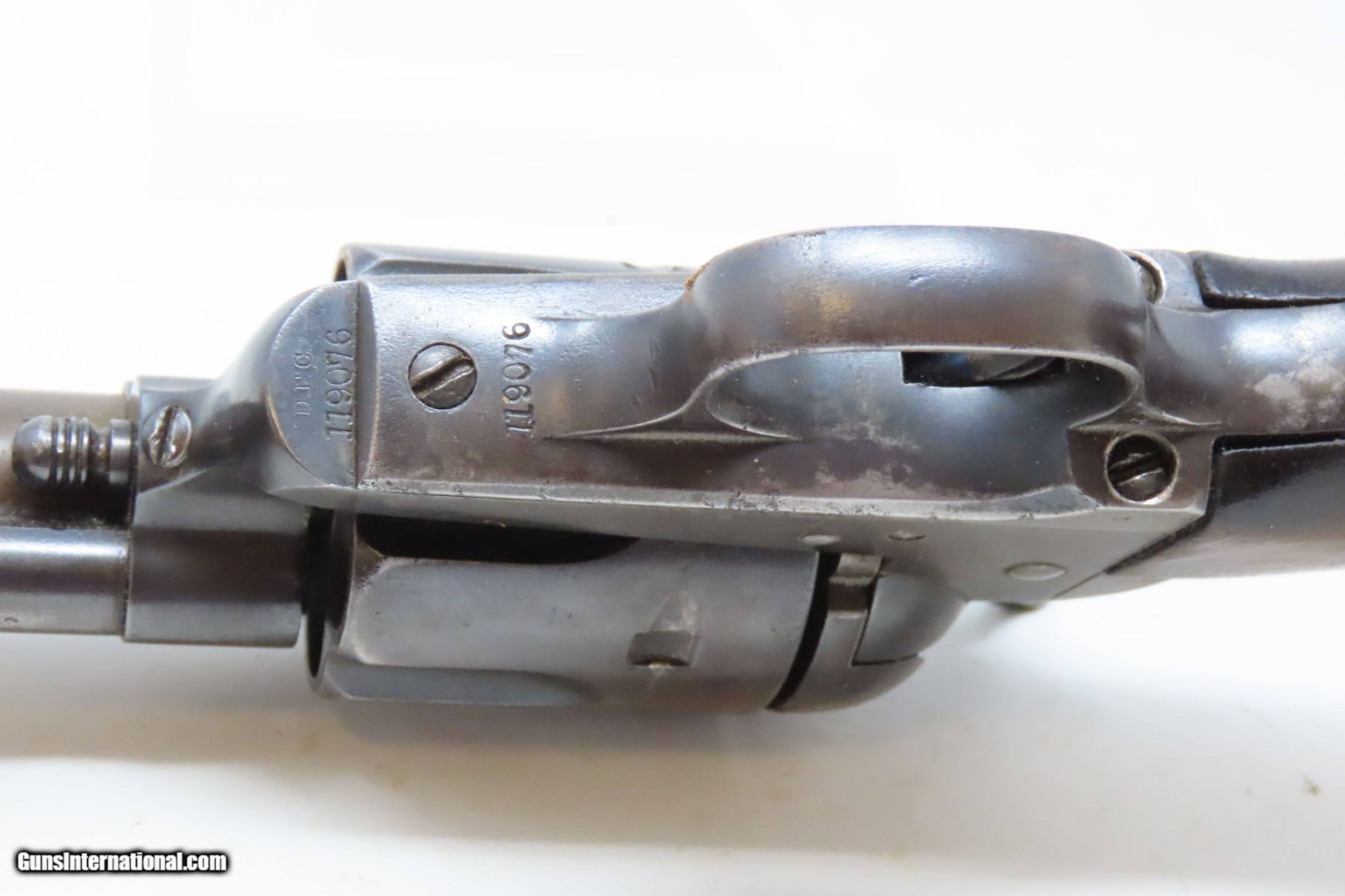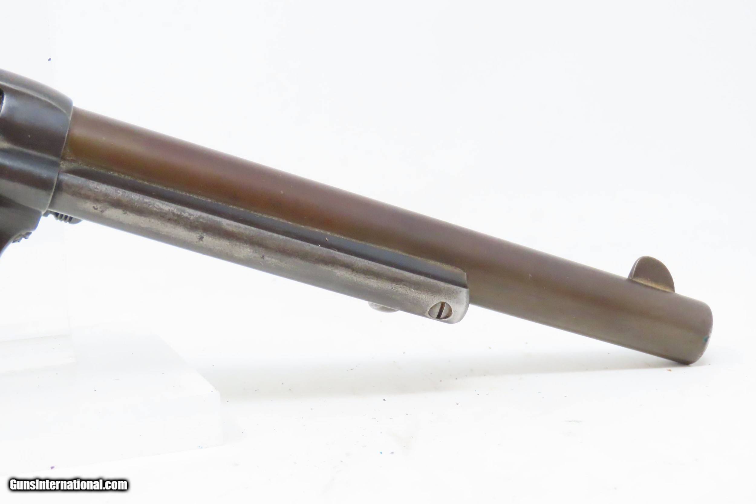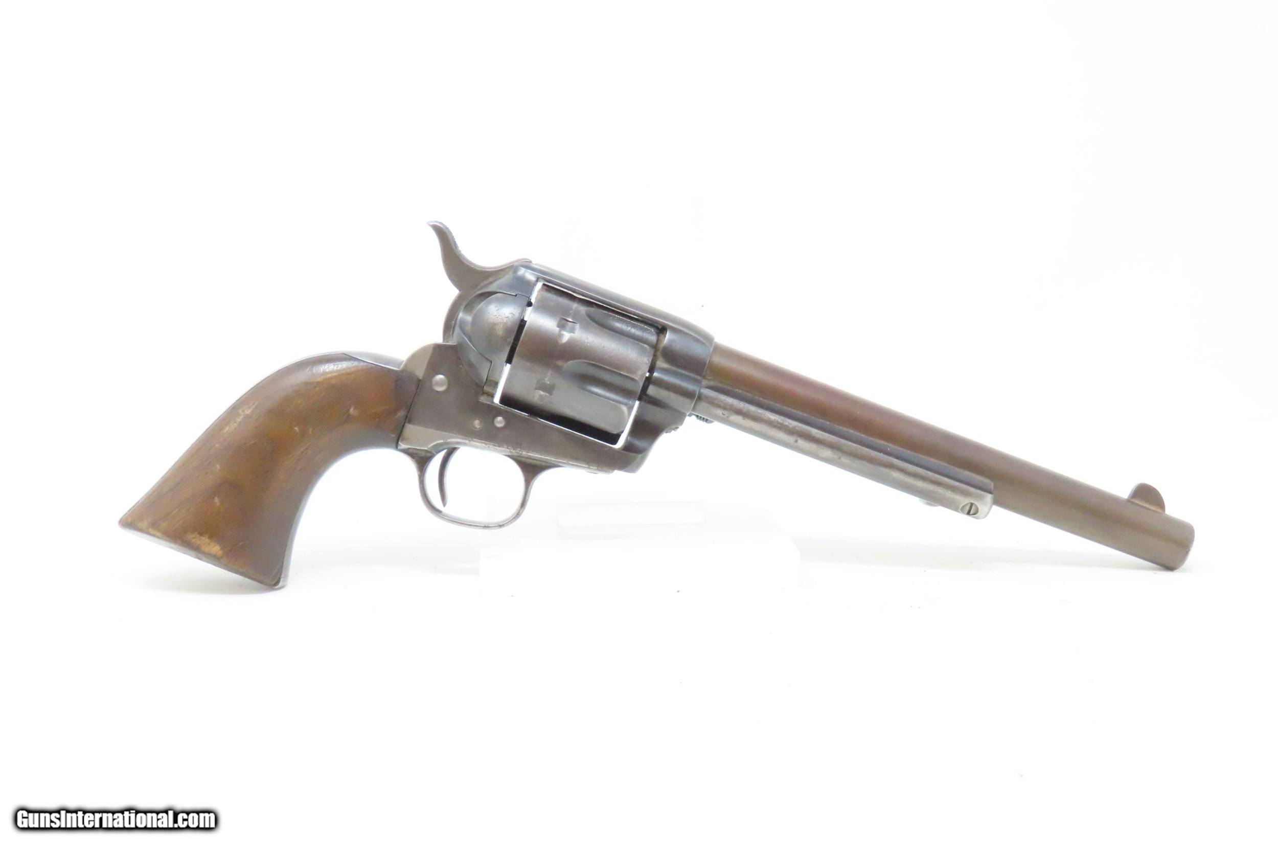 Description: Antique U.S. CAVALRY Model 1873 COLT SAA Revolver DAVID F. CLARK Inspected Iconic COLT .45 “PEACEMAKER” with U.S. HOLSTER RIG Here we present an antique Colt Cavalry Model Single Action Army Revolver, manufactured in 1887 in Hartford, Connecticut. Though Colt enjoyed the largest contracts of any handgun maker during the American Civil War, it had to rely on its array of percussion fired revolvers, namely the 1860 Army until the Smith & Wesson owned Rollin White Patent expired in 1869. This enabled them to begin making revolvers with completely bored through cylinder chambers in order to utilize modern metallic cartridge ammunition in the most effective manner. In 1869, Colt’s began development of a suitable cartridge revolver in earnest, first coming out with a number of conversions for their percussion lines, until 1872 when they debuted what was to become the Colt Model 1873 Single Action Army in the 1872 U.S. Trials. Needless to say, it won, and became the Army’s revolver of choice. It also became the sidearm of choice for many others like cowboys, guards, lawmen, crooks, shopkeepers and all manner of civilians. This Colt Single Action Army Revolver was inspected by David F. Clark. His initials may be observed in multiple locations on this revolver. Single letter sub-inspector marks are also found throughout. The left side of the frame was stamped “U.S.” as the final acceptance mark. The top of the barrel is marked “COLT’S PT.F.A. MFG. CO. HARTFORD, CT. U.S.A.” The left side of the frame is marked with patent dates in the years 1871, 1872 and 1875, along with the U.S. marking. It has a blade front and frame notch rear sights, fitted with a smooth one-piece walnut grip. “1887” dated cartouche on the left grip with DFC initials on the bottom. The belt and holster rig are original. The belt is maker marked though faint and difficult to read. The buckle features the federal eagle with “E PLURIBUS UNUM” in a banner clutched in the eagle’s beak. The holster was made by Lanz, Owen & Co. of Chicago, Illinois. They had a shop at 183 ½ - 189 Lake Street. Lanz was a German immigrant and Owen was a Welsh immigrant. Their work was top-notch and these remain in fantastic condition. These revolvers saw the end of the Indian Wars as well as the Spanish American & Philippine American Wars. There is a lot of history here. The overall condition is very good. This revolver has been moderately refinished and has been furnished with a new barrel which has been marked to match the rest of the gun both in number and with regard to inspection markings. Excellent action—all 4 clicks that hold firm in safety, half-cock, and full-cock notches. The cylinder indexes and locks up properly. The grip is in good shape with wear apparent and a short split along the grain. A cartouche remnant visible on the left side which is dated 1887 with the initials beneath a bit worn. The included holster rig is in near fine condition and very rare in its own right as leather tends to deteriorate long before the guns they were made to hold do. Own the original! This is a legitimate antique and not a reproduction. Barrel is 7-1/2 inches. Caliber: .45 Long Colt Overall condition as seen in photos. Very Fast. Very Safe. FREE SHIPPING WORLDWIDE. Delivered directly to your door by express mail! Guaranteed AUTHENTIC & Includes CERTIFICATE OF AUTHENTICITY. ancestryguns $9235 #217213 SOLD Antique: Yes |