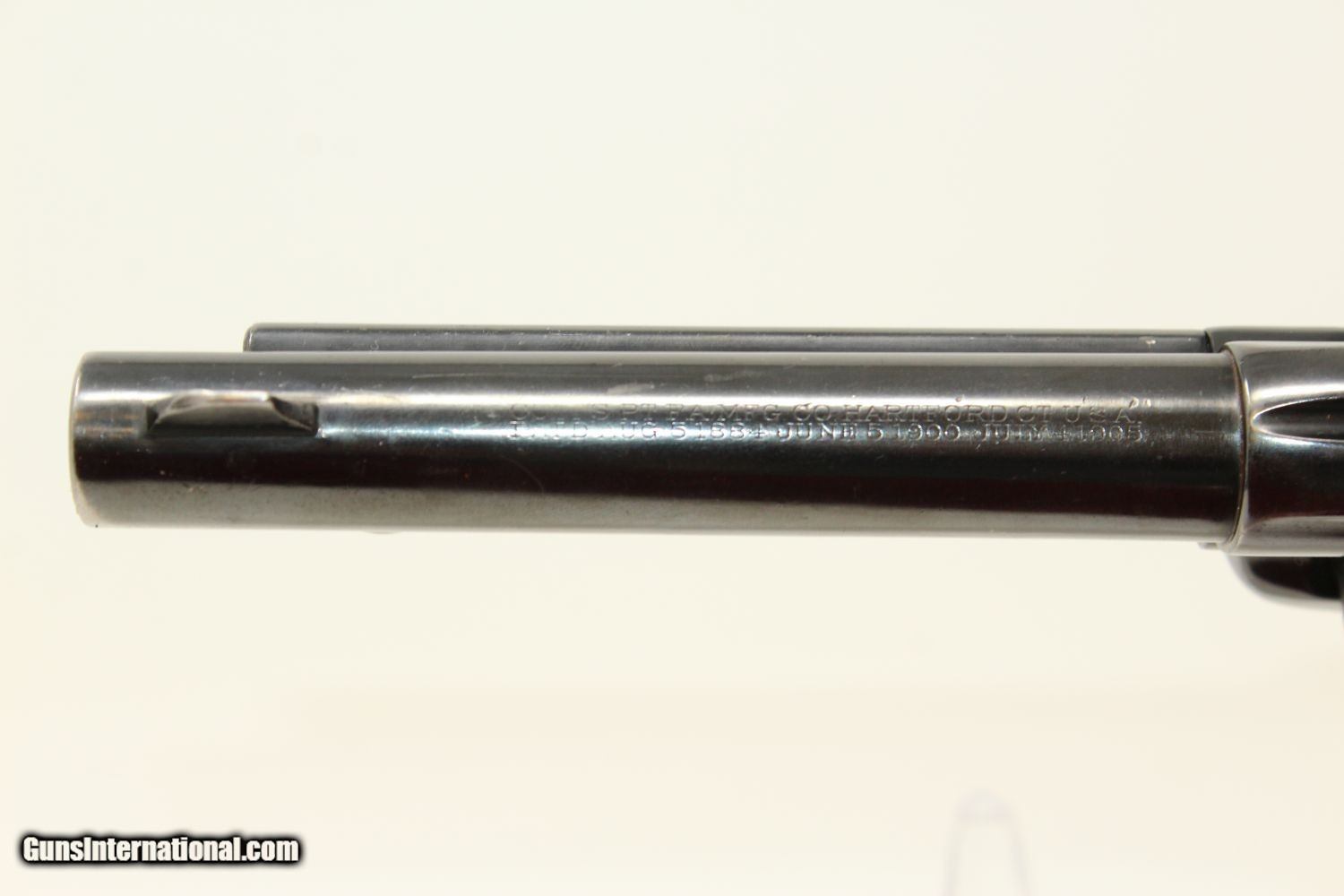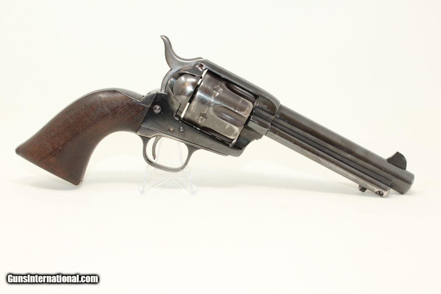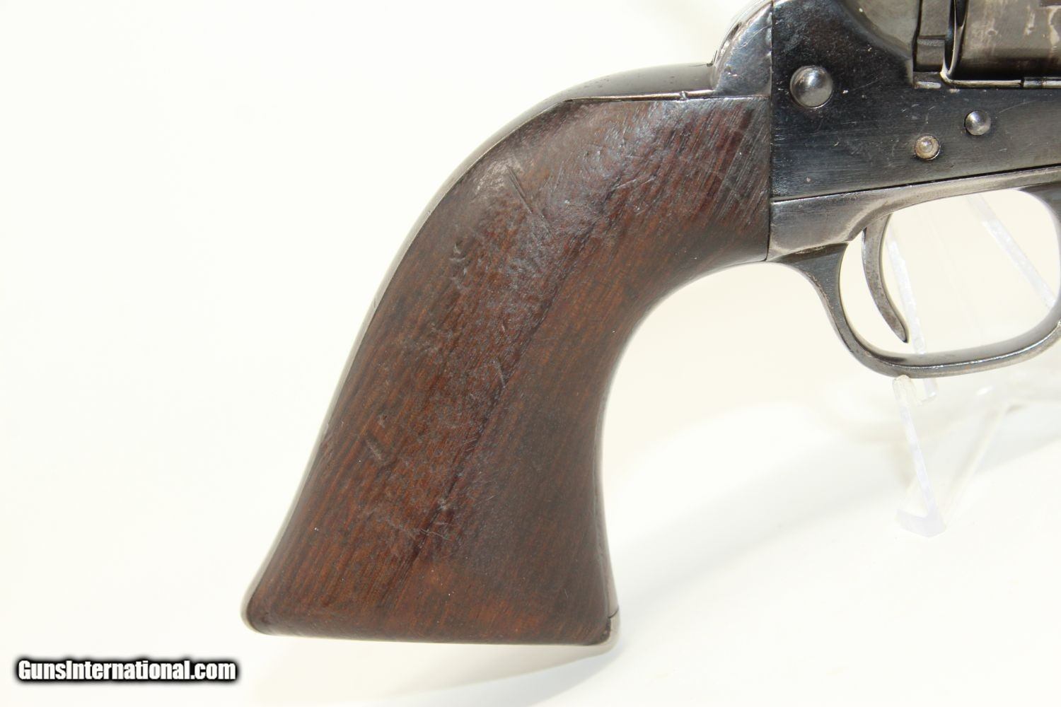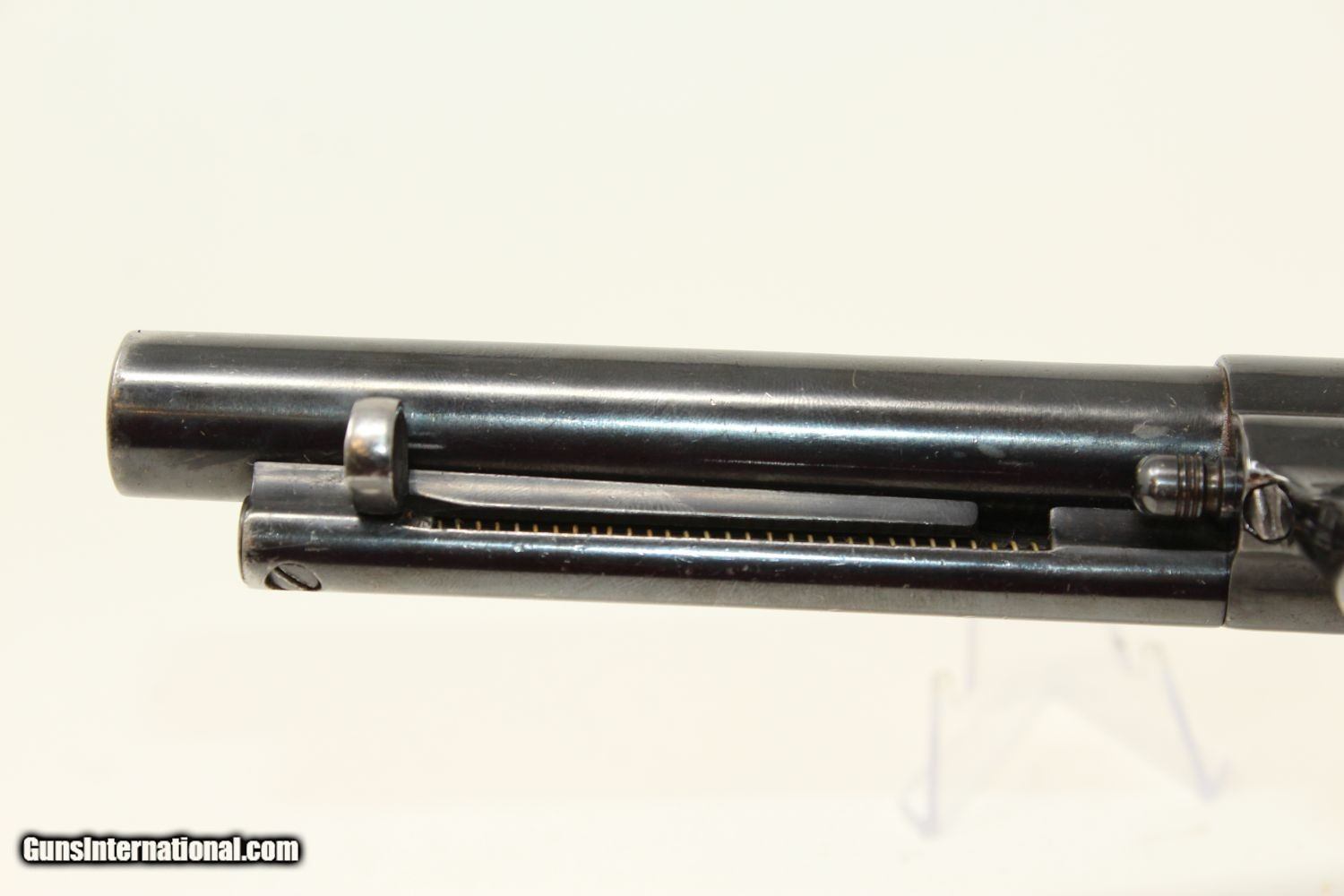 Description: BOXCAR Grip Pair of .45 COLTS in H.H. HEISER Rig! 2 Black Powder Frame Colts in Hand-Tooled Belt & Holsters Here we present a pair of antique, Black Powder Frame Single Action Army Revolvers in .45, made in Hartford, Connecticut, with the full H.H. Heiser tooled Cartridge Belt & Holsters, which were made by Hermann H. Heiser, a German immigrant to Denver, Colorado who was active in his trade under his own name from about 1874 until about 1904. He became famous worldwide for his quality leather holsters and saddlery. These classic revolvers are unique, as sometime over the years a pair of dice have been embedded into the grips, each with the 6 showing to produce what is known as “boxcars” or “midnight” in the game of craps. The holster rig is a rarity in itself and remains in good shape. There is a very old and practical repair on the right side of the belt. The gun belt is full of empty brass. The belt measures 34-3/4 inches from the bottom of the prong to the first hole, and 39 inches to the last. The overall condition of these Black Powder Frame Colts is very good. Both bores are in good condition with nice rifling. The bore of #32023 is shiny and bright. #1133’s grip is quite worn and weathered and shows a repair on the left. Strong action in all positions with the ejector rod staying smooth. Both guns in combination with the cartridge belt, this is a very neat piece of history to display or wear! This is a legitimate antique and not a reproduction. Caliber: .45 Colt Overall condition as seen in photos. Very Fast. Very Safe. FREE SHIPPING WORLDWIDE. Delivered directly to your door by express mail! Guaranteed AUTHENTIC & Includes CERTIFICATE OF AUTHENTICITY. ancestryguns $12,000 #190259 SOLD Antique: Yes |
