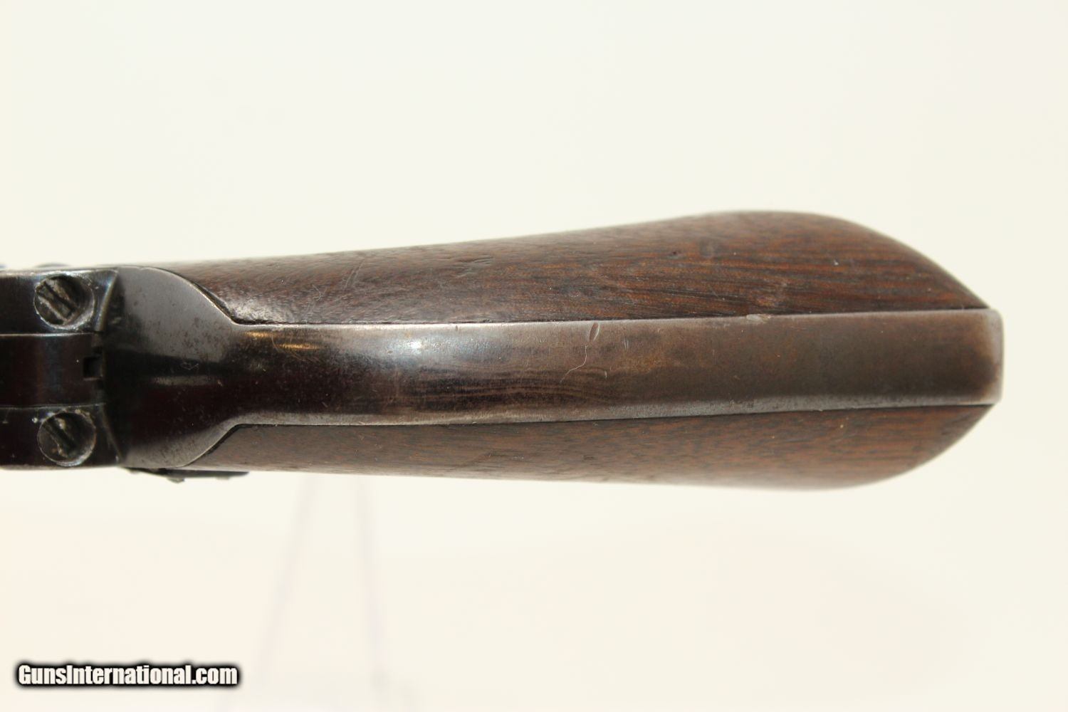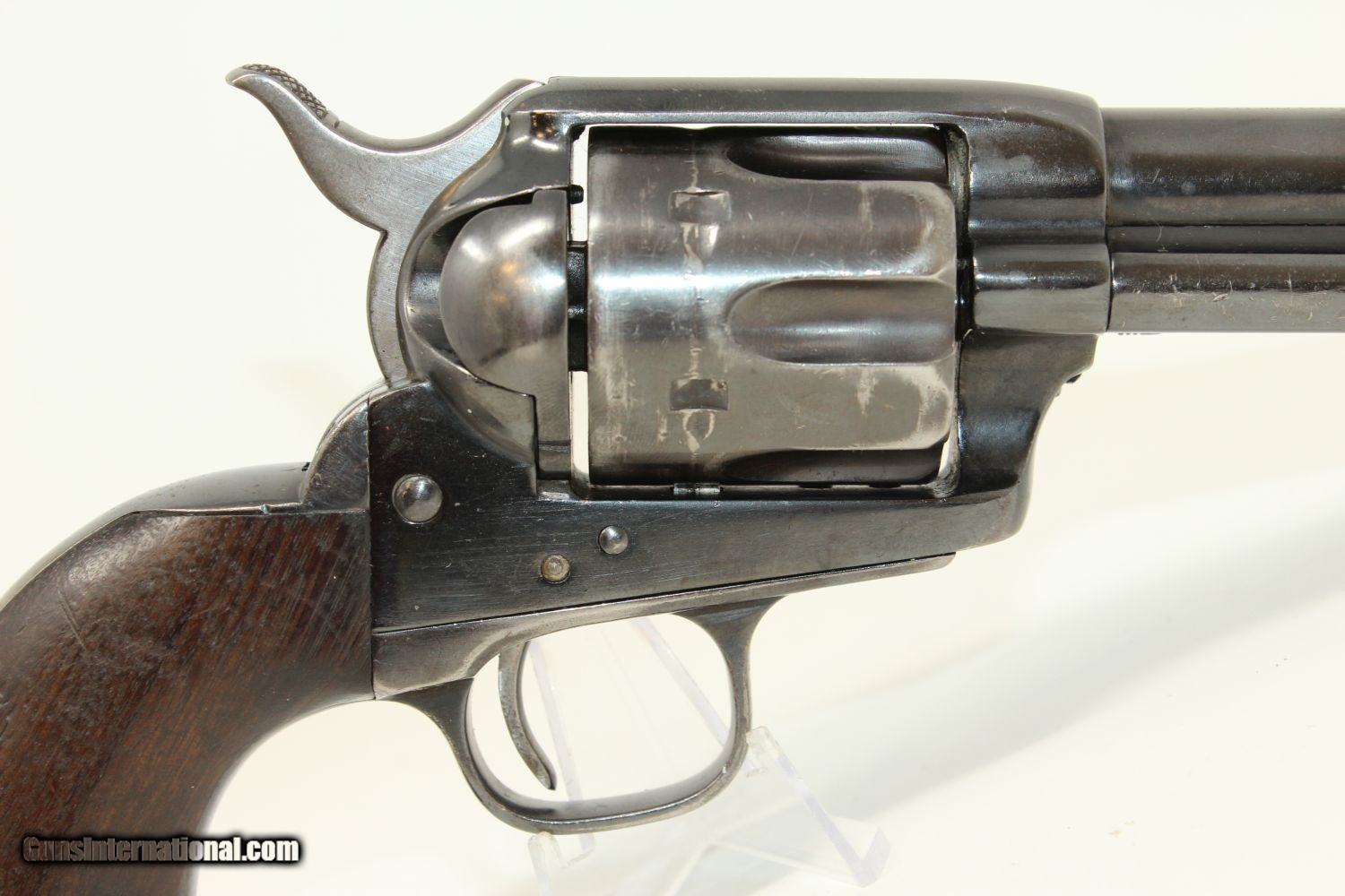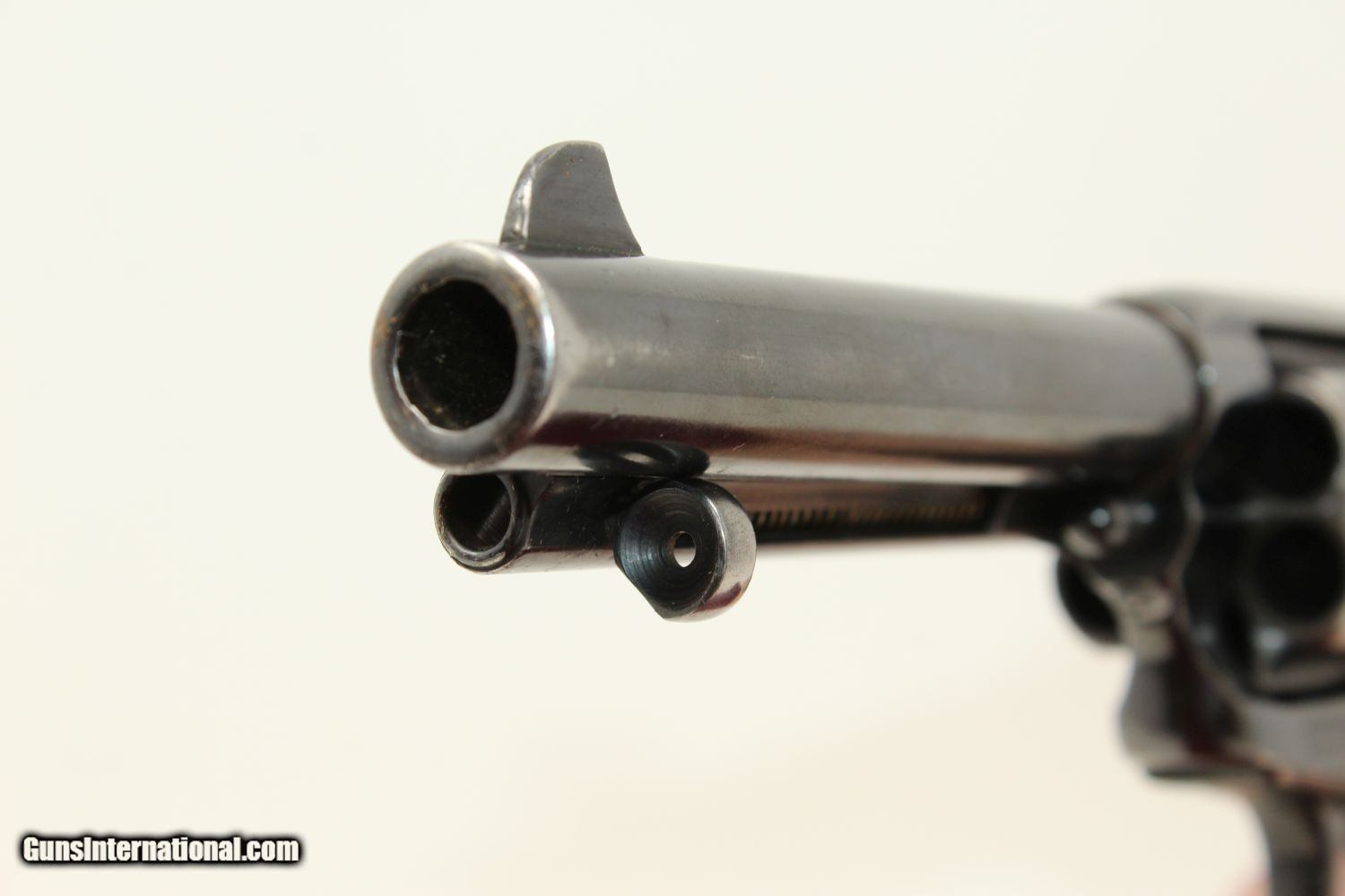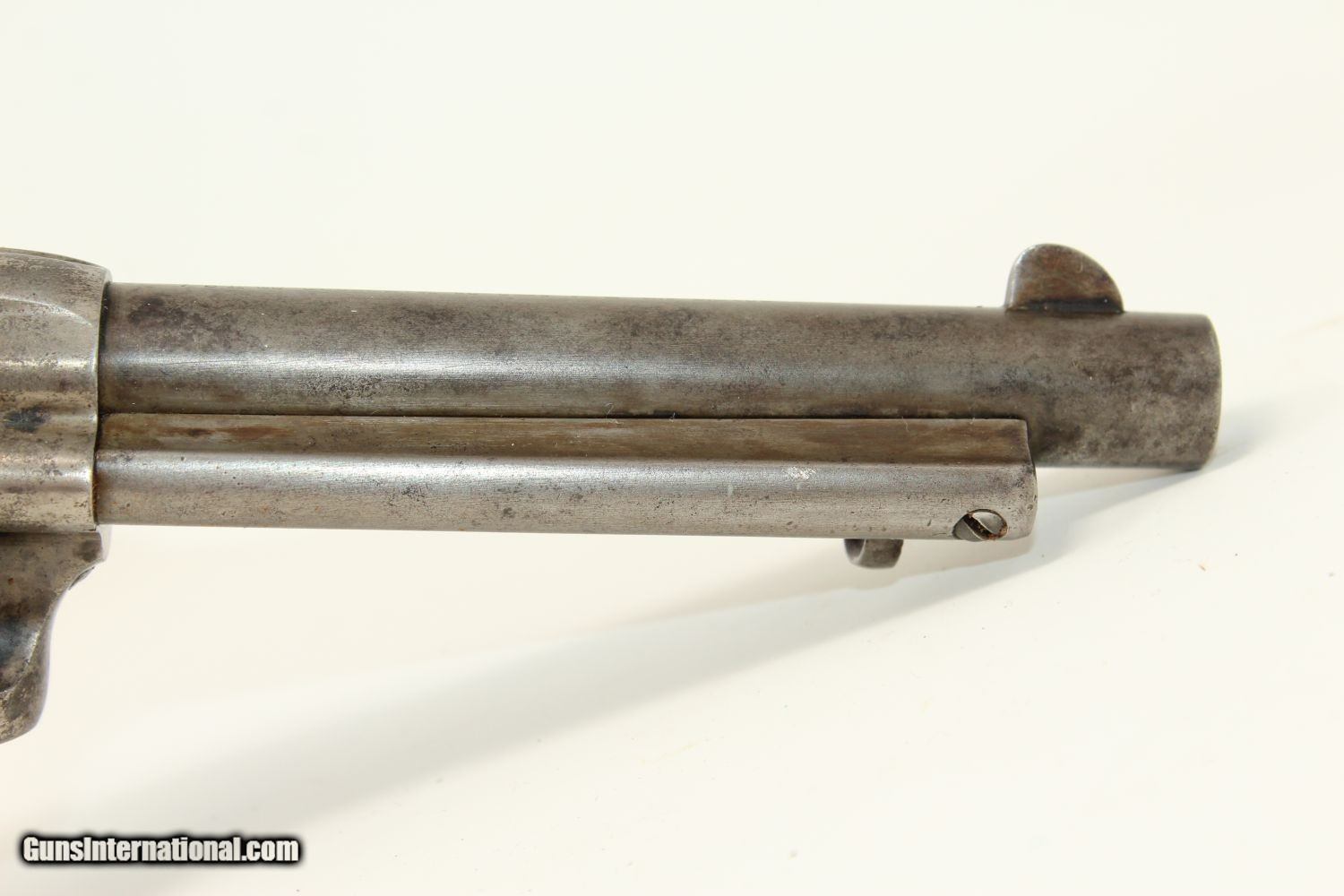 Description: BOXCAR Grip Pair of .45 COLTS in H.H. HEISER Rig! 2 Black Powder Frame Colts in Hand-Tooled Belt & Holsters Here we present a pair of antique, Black Powder Frame Single Action Army Revolvers in .45, made in Hartford, Connecticut, with the full H.H. Heiser tooled Cartridge Belt & Holsters, which were made by Hermann H. Heiser, a German immigrant to Denver, Colorado who was active in his trade under his own name from about 1874 until about 1904. He became famous worldwide for his quality leather holsters and saddlery. These classic revolvers are unique, as sometime over the years a pair of dice have been embedded into the grips, each with the 6 showing to produce what is known as “boxcars” or “midnight” in the game of craps. The holster rig is a rarity in itself and remains in good shape. There is a very old and practical repair on the right side of the belt. The gun belt is full of empty brass. The belt measures 34-3/4 inches from the bottom of the prong to the first hole, and 39 inches to the last. The overall condition of these Black Powder Frame Colts is very good. Both bores are in good condition with nice rifling. The bore of #32023 is shiny and bright. #1133’s grip is quite worn and weathered and shows a repair on the left. Strong action in all positions with the ejector rod staying smooth. Both guns in combination with the cartridge belt, this is a very neat piece of history to display or wear! This is a legitimate antique and not a reproduction. Caliber: .45 Colt Overall condition as seen in photos. Very Fast. Very Safe. FREE SHIPPING WORLDWIDE. Delivered directly to your door by express mail! Guaranteed AUTHENTIC & Includes CERTIFICATE OF AUTHENTICITY. ancestryguns $12,000 #190259 SOLD Antique: Yes |