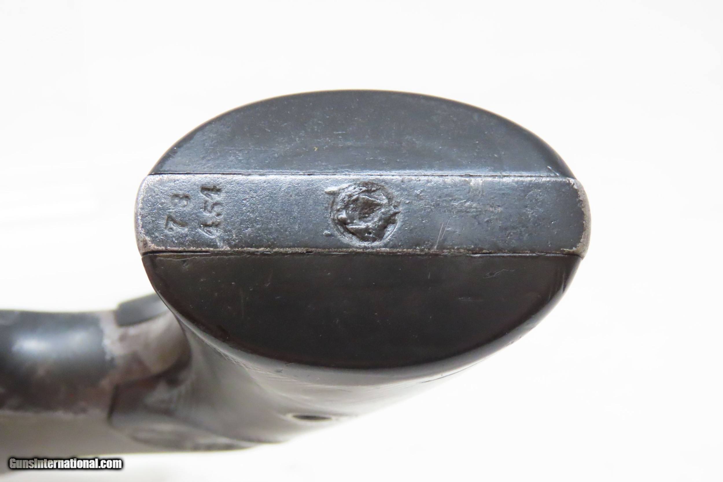 Description: c1896 CONNECTICUT NATIONAL GUARD Antique COLT Model 1892 NEW ARMY & NAVY 38 First US Military Double Action Swing Out Cylinder Here we present an antique Connecticut National Guard Marked Colt Model 1892 New Army & Navy Double Action Revolver, made in 1896 by the Colt Manufacturing Company with a production run from 1892 through 1907 in Hartford, Connecticut. The M1892 Colt Army and Navy was the first general issue double action revolver with a swing out cylinder used by the U.S. military. In 1892 the gun was adopted by the Army in .38 Long Colt caliber, and the revolver was given the name of New Army and Navy. Initial experience with the gun caused officials to request some improvements. This would be an ongoing condition, resulting in Models 1892, 1894, 1896, 1901, and 1903 for the Army. A Model 1892 revolver was recovered from the USS Maine after it exploded in Havana Harbor in 1898. It was presented to then-Assistant Secretary of the Navy Theodore Roosevelt, who would later become President of the United States. Roosevelt brandished this pistol to rally his Rough Riders during the famed charge up San Juan Hill on July 1, 1898. By the time production ceased in 1907 (the gun would be kept in the government inventory for several years after that) more than a quarter of a million versions of the Army & Navy had been made. Not a bad track record for an arm that many consider something of a failure. The overall condition is good. Refinished black long ago. Excellent action. The bore is in good shape for its age. Solid grips with smoothed checkering from handling and use. Legible markings. Numbers match throughout, including the grips. Own the original! This is a legitimate antique and not a reproduction. Barrel is 6 inches. Caliber: .38 Colt Overall condition as seen in photos. Very Fast. Very Safe. FREE SHIPPING WORLDWIDE. Delivered directly to your door by express mail! Guaranteed AUTHENTIC & Includes CERTIFICATE OF AUTHENTICITY. ancestryguns $1800 #220493 SOLD Antique: Yes |