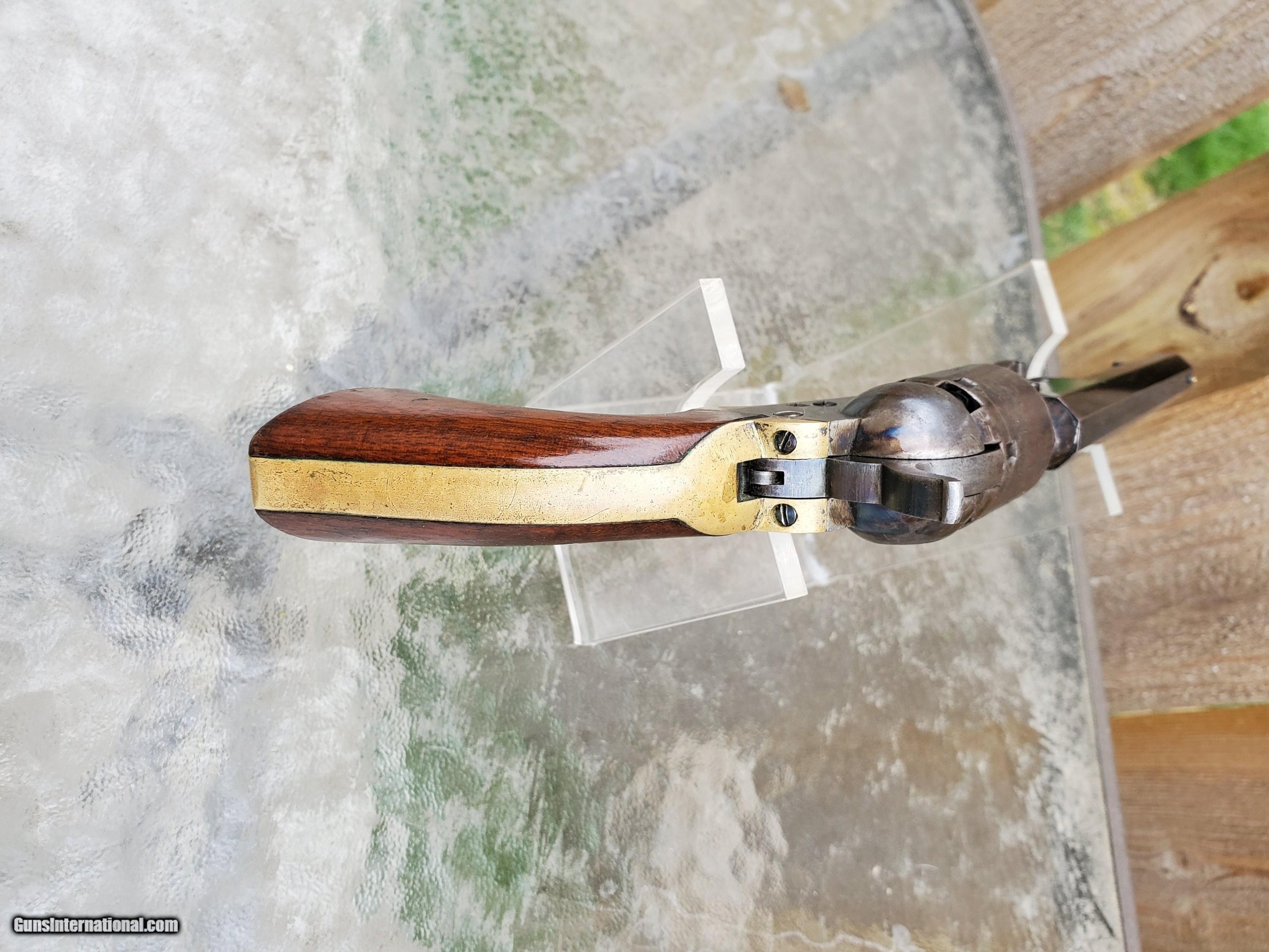 Description: ON HOLD Excellent condition Colt model 1849, This is a beautiful civil war revolver made in early 1862 when many men enlisted for the war. Just look at the photos, excellent condition over 90% ORIGINAL finish, and never cleaned or touched up. Action is perfect... I DO NOT PHOTOSHOP WHAT YOU SEE IS WHAT YOU GET, NO SURPRISES!!!! SOLD Antique: Yes Manufacturer: Colt Model: 1849 Barrel Length: 5 Caliber Info: 31 Bore Condition: excellent |