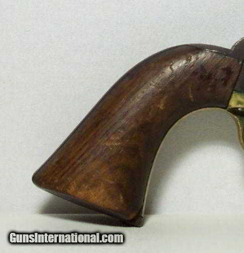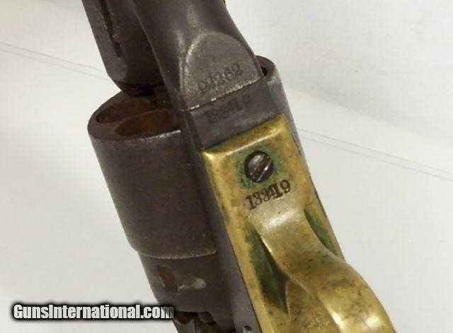 Description: Colt Model 1860 Army Percussion; .44 cal. revolver frame SN 133149; Civil War gun; made 1863; barrel lug #92262; Back strap #138110; Cylinder 2262; probably a battlefield reassembly; cartouche showing on left grip; cylinder scene present; 8” bbl.; GOOD action; Fairly Strong but pitted bore; a REAL Civil War veteran; 153 year old piece of Civil War history; antique, no FFL/C&R required for shipping; All items shipped fully insured Priority Mail- -Hand guns $30 --Long guns $45-- Spurs $30-- Knives, Swords & Sabers $30 (Texas residents please add 6.75% sales tax); return policy: three days inspection from the date the item is received; full refund of shipping both ways ONLY IF THE ITEM IS MISREPRESENTED. Note: International sales only as laws permit. Will ship C&R eligible items to C&R license. Antiques shipped without license to anyone EXCEPT New Jersey and City of New York where a FFL is required. SOLD Antique: Yes Manufacturer: Colt Model: 1860 Serial Number: 133149 |