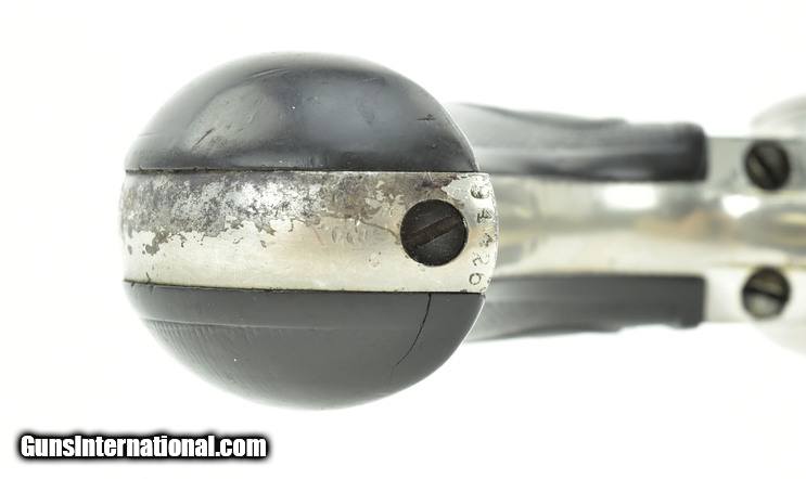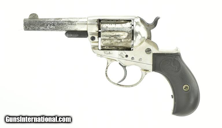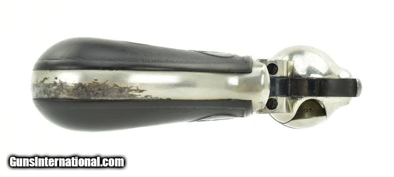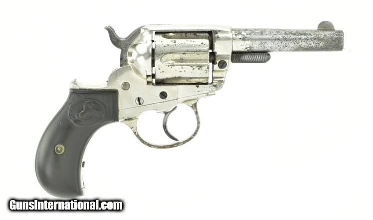 Colt 1877 Lightning Sheriff’s .38 Colt caliber revolver. With 3½” barrel. Made in 1893. Grips are worn with a crack on left-side. Approximately 60% nickel finish. Action works. Good overall condition.