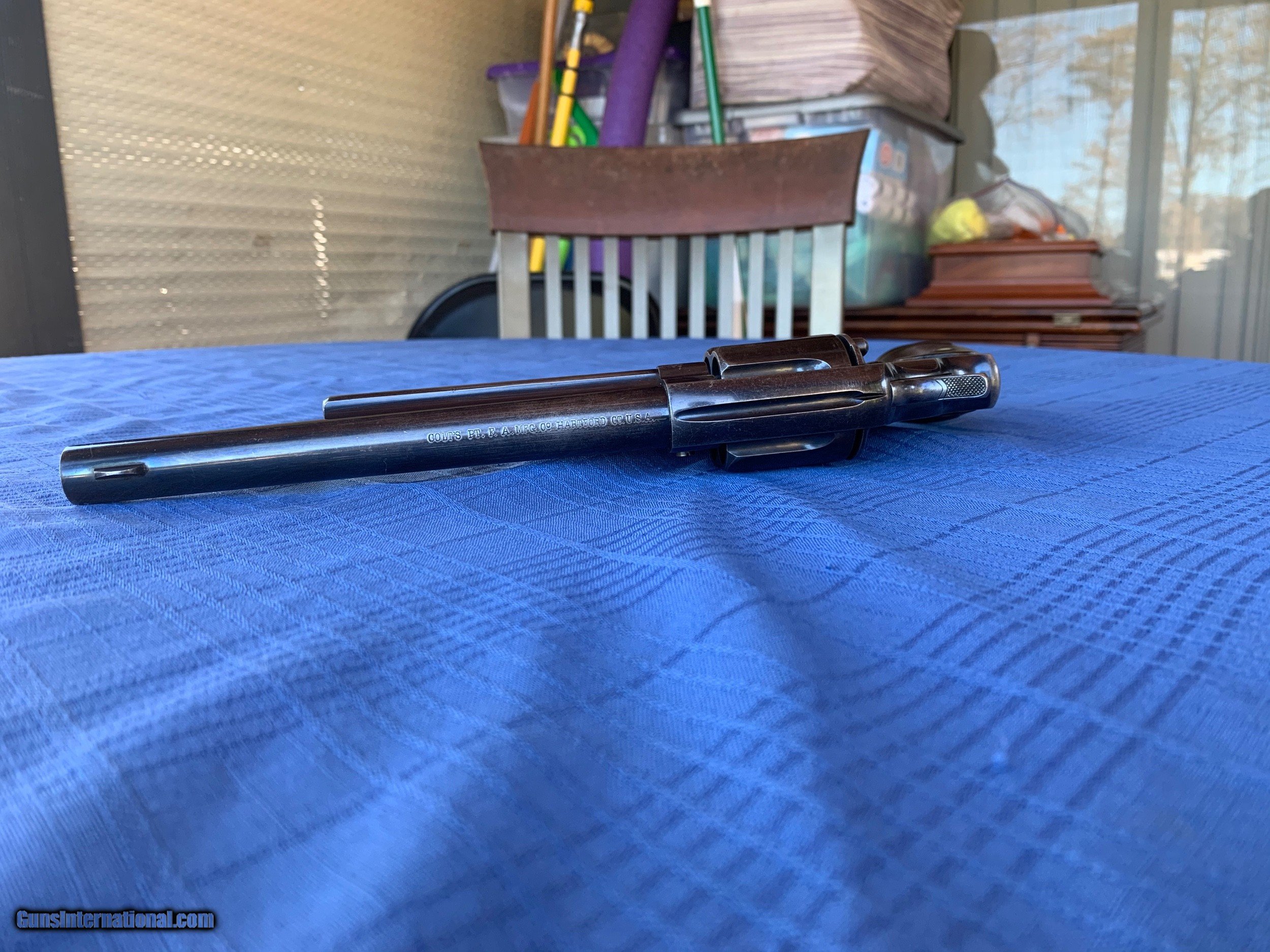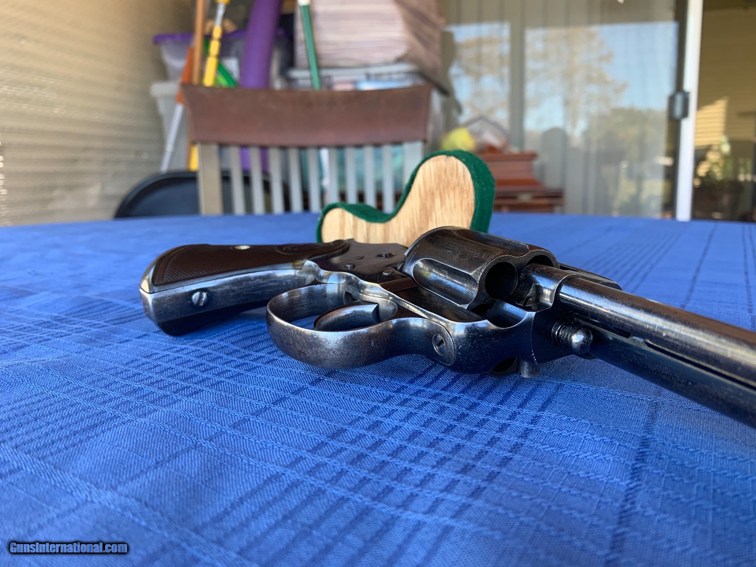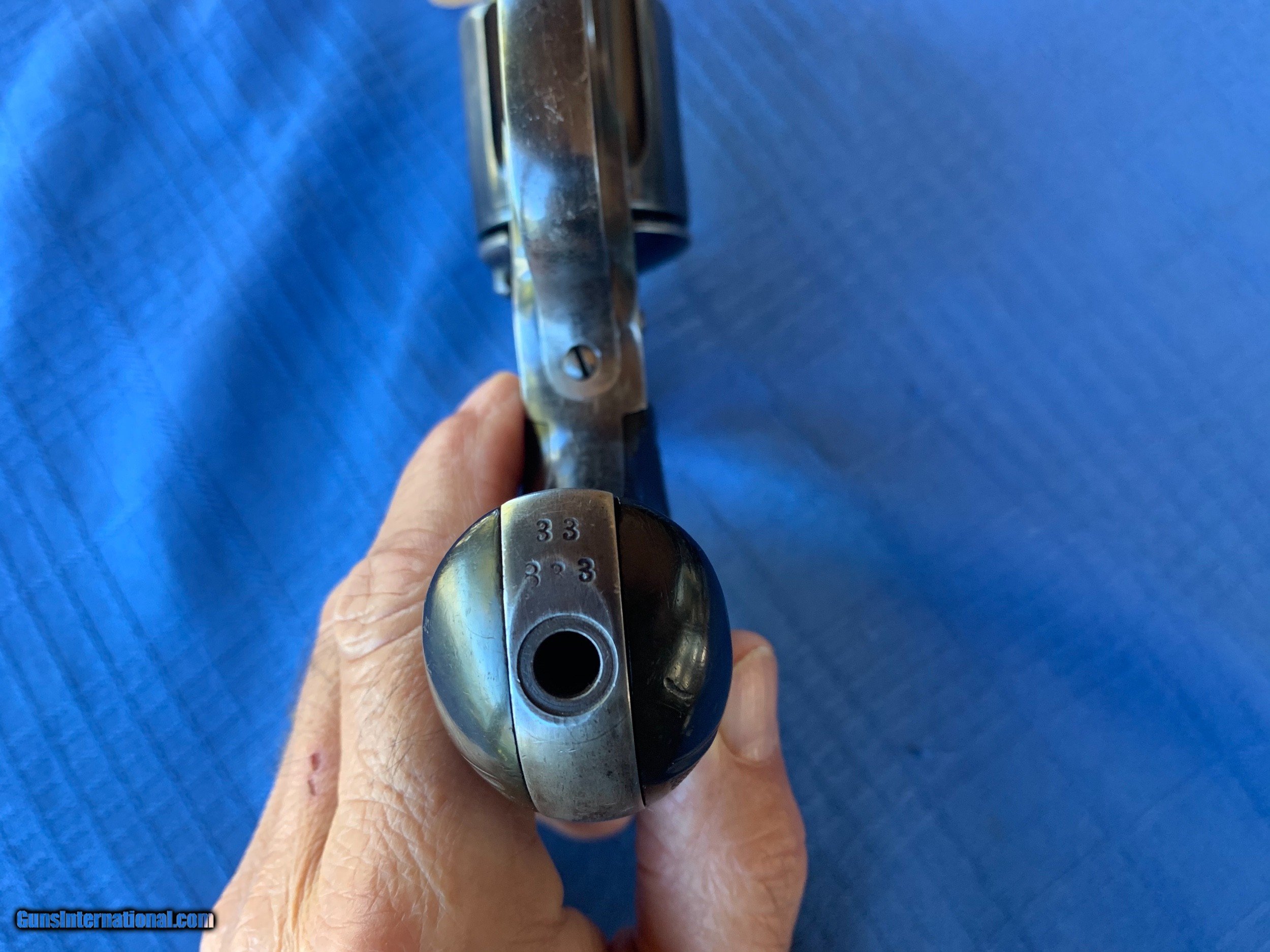 Description: Colt Model 1878 Frontier Six Shooter Double Action in Very Rare 45 caliber . Serial number 33833 . Antique . Excellent plus condition bore and Mechanics . Gun locks up tight . Gun has original Sights . Original Factory grips . Gun has a lot of original bright finish mixing with blue brown patina. Lanyard ring is missing . Factory hole remains . Ring was just removed . Very nice 45 Colt caliber 1878 Double Action Colt . Not to many 7 1/2" 45 Colt caliber where made . Please review my photos and email me with any questions ? 3 day inspection as allways . Thank you for looking Little Jo SOLD Antique: Yes Handgun Caliber: .45 Colt Manufacturer: Colt Model: 1878 Serial Number: 33833 Barrel Length: 7 1/2” |