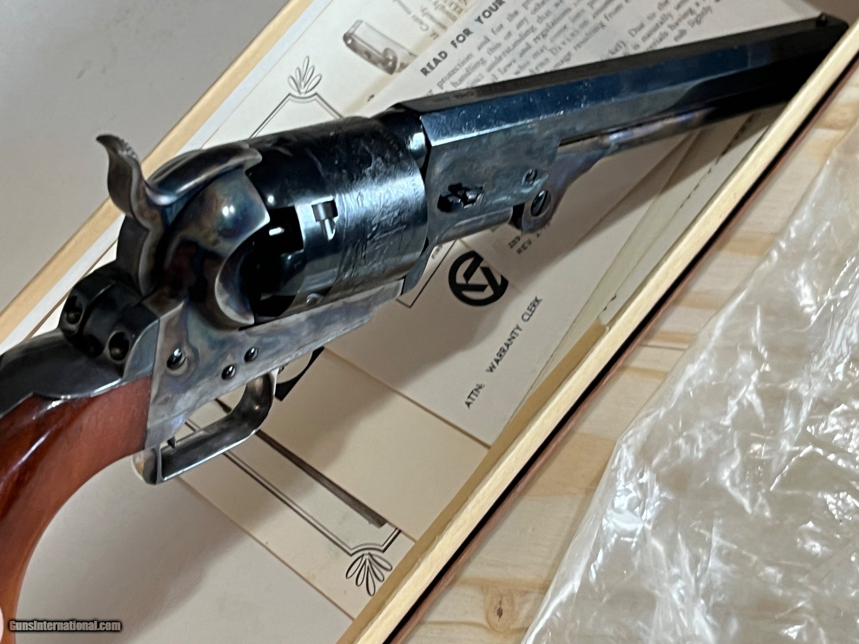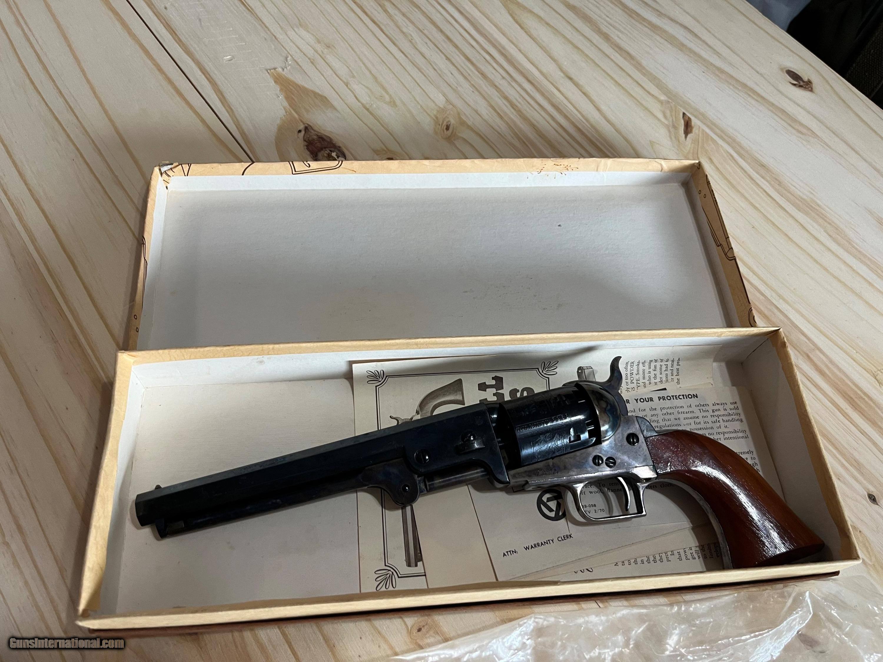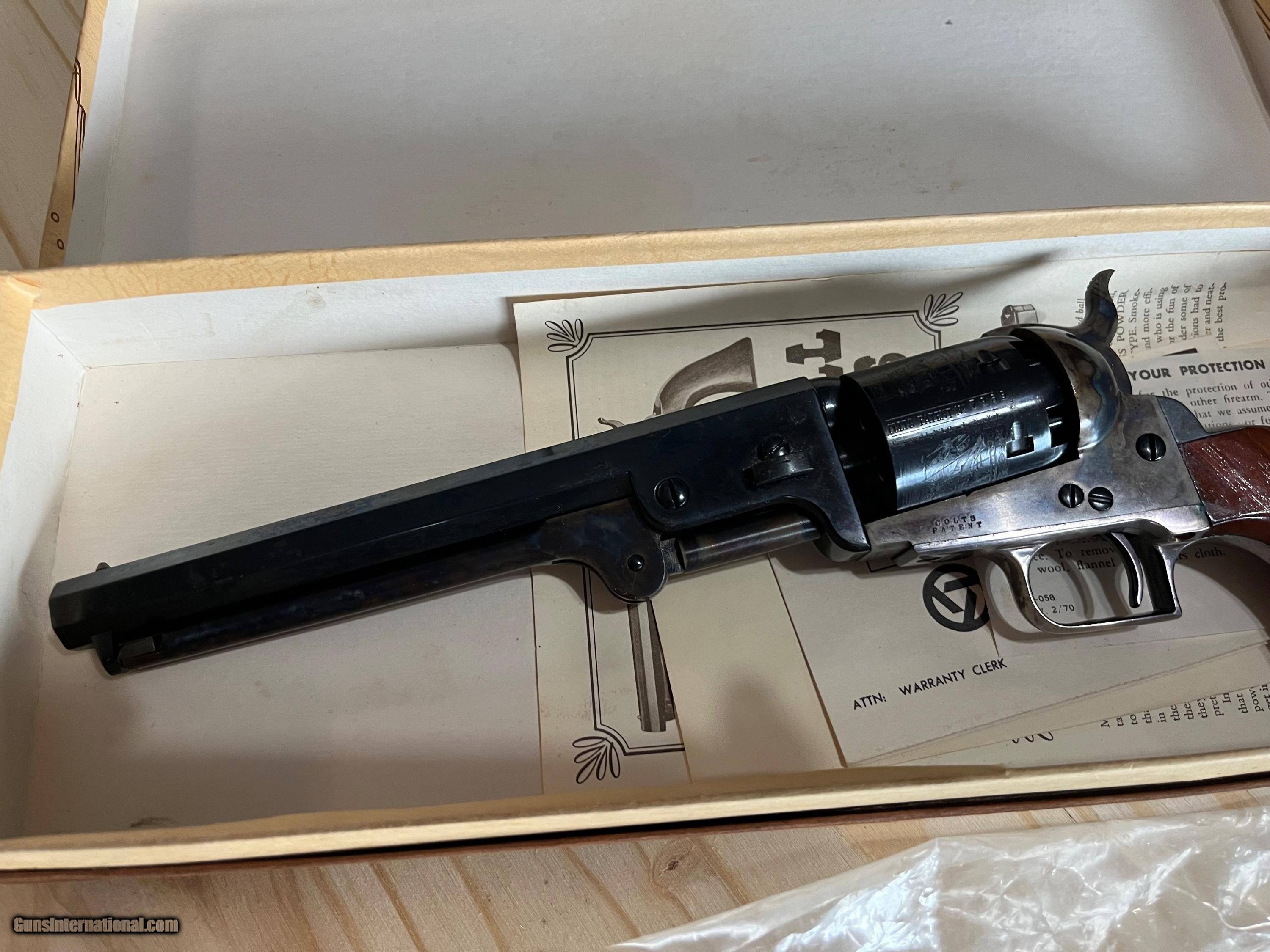 Description: COLT MODEL 1851 NAVY REVOLVER . 2ND GEN REVOLVER . SER# 7969, MADE IN 1971. GUN IS IN UNFIRED CONDITION . STILL RETAINS THE PACKING OIL ON IT. COMES WITH BOX WITH PAPERWORK . ADD 20.00 UPS GROUND SHIPPING . NO FFL LIC REQUIREDF FOR SHIPPING . EASTERN BRANCH FIREARMS ADD 50.00 SHIPPING – NEXT DAY AIR SHIPPING ADD 50.00 SHIPPING – LONG GUNS GROUND OPTIONAL INSURANCE IS AVAILABLE AT 1.25 PER 100.00 Questions e-mail or call Glen at Eastern Branch Firearms 207-215-5021 TERMS – PLEASE READ BEFORE I DO NOT HAVE A LAYAWAY OPTION ( WE ACCEPT CREDIT CARDS ) -- I GET ALOT OF REQUEST FOR TRADES, I WOULD PERFER NOT TO DO TRADES ON MY INTERNET LISTINGS PAYMENT OPTIONS- We accept money orders, cashier’s checks , bank checks. sorry no personal checks. We accept all major credit cards please add 3% to the ’s cash discount price.(Shipping within the state of Florida - Florida Residents must pay sales tax) .Handguns and long guns do need to be shipped separate. PLEASE do not send payment via FED EX . USPS & UPS are fine. Thank you. We include a signed copy of our FFL with each firearm shipped. SAFTY NOTICE- Buyer is solely responsible for determining that a used gun is safe to shoot. The firearms offered have not been test fired but have been given a visual inspection only for purposes. It is a requirement that every used firearm is inspected by a qualified gunsmith before firing. By , the buyer agrees to hold seller harmless against damages, injury, or death caused by defective merchandise. RETURN POLICY- All firearms come with a 3-day non firing , non messing with ( turning srews ,taking apart,removing parts, scoping. firing, cleaning or messing with in anyway) inspection/return privilege.Inspection is based on a visual review of the gun to confirm the gun is in the condition stated. In the case of a return, buyer pays all shipping charges & if paid for with a credit card buyer absorbs the 3% credit card charges . So please ask questions BEFORE you bid. Thanks for Looking and Good Luck!! U.S. sales only, no exports…this includes antiques. I will ship to third party for exporting SOLD Antique: Yes |