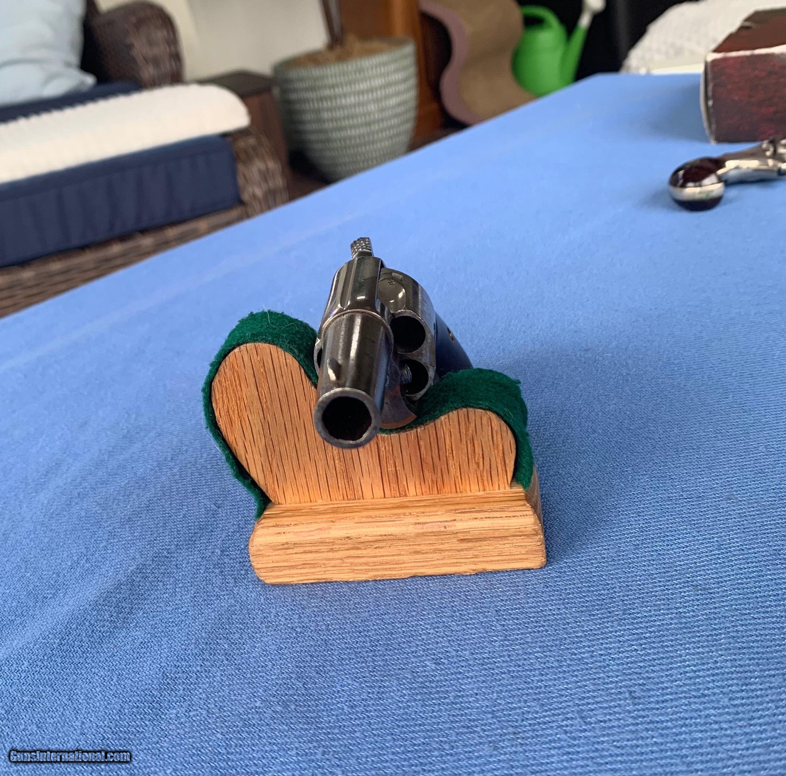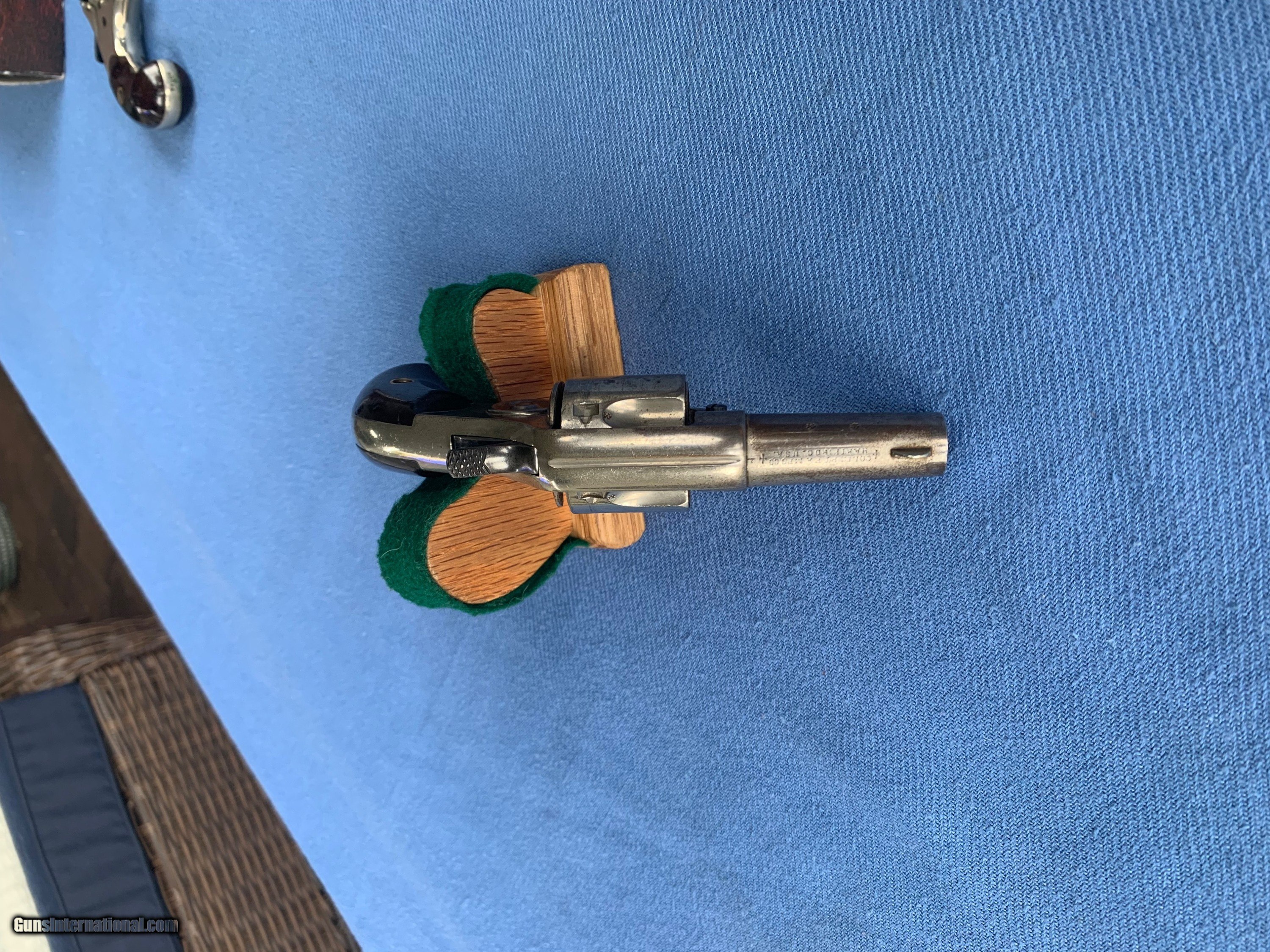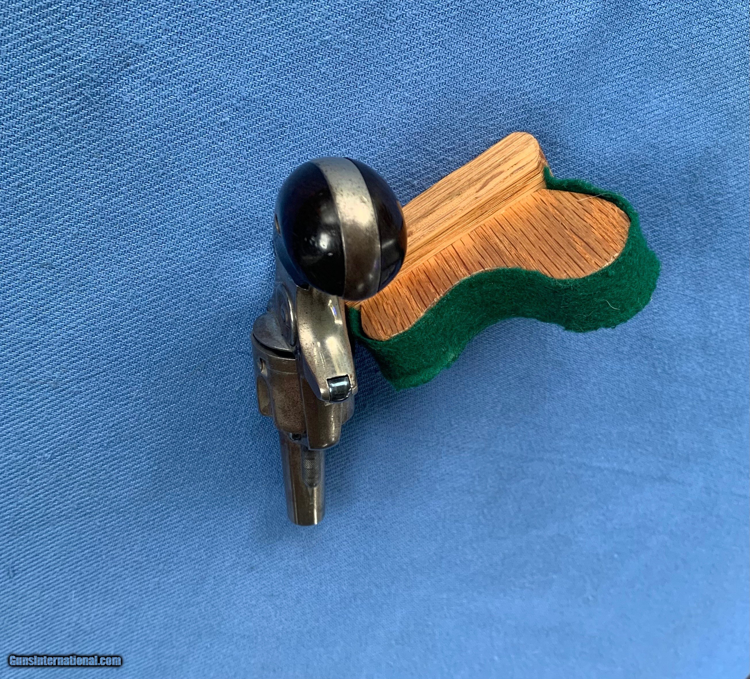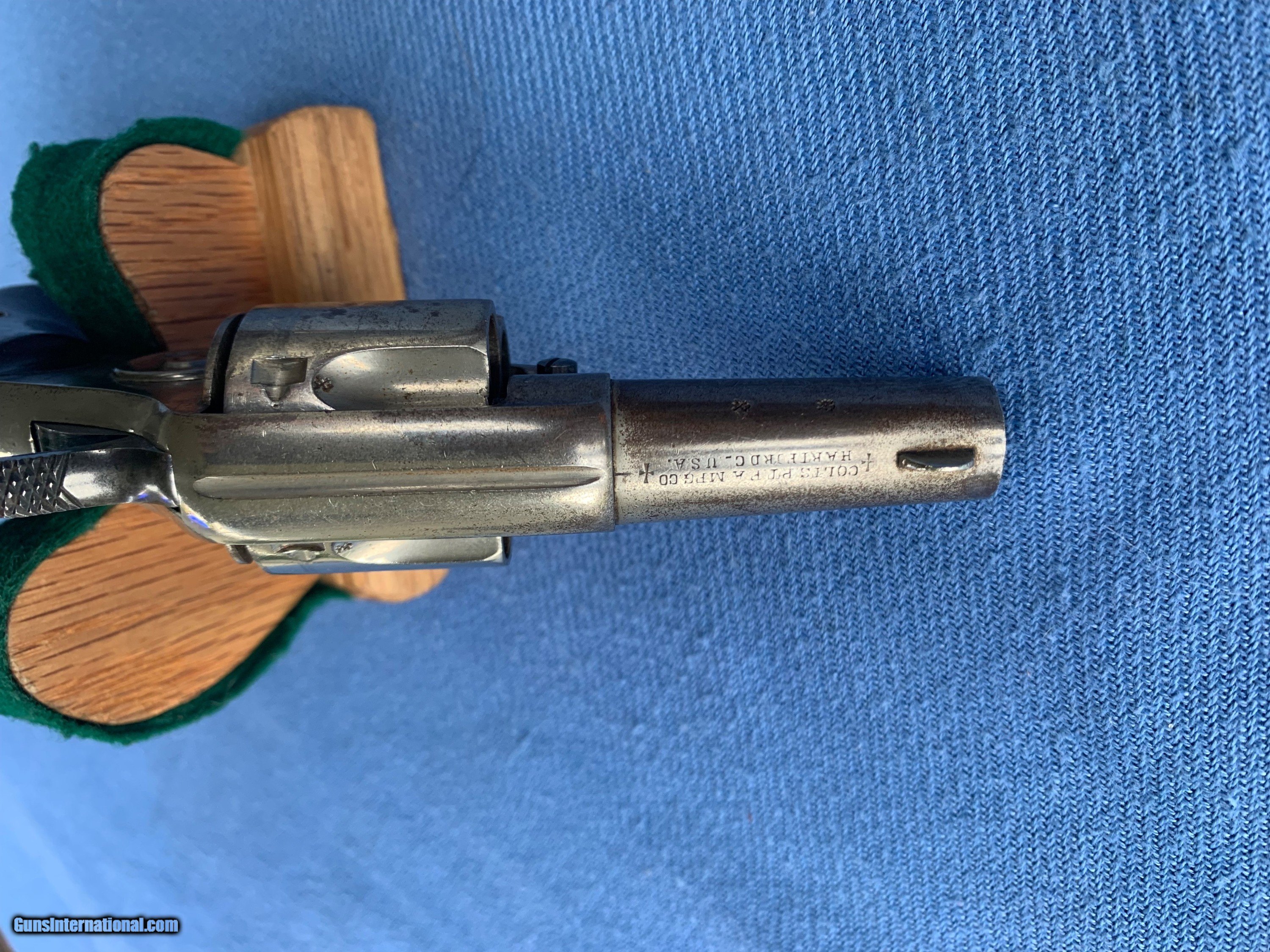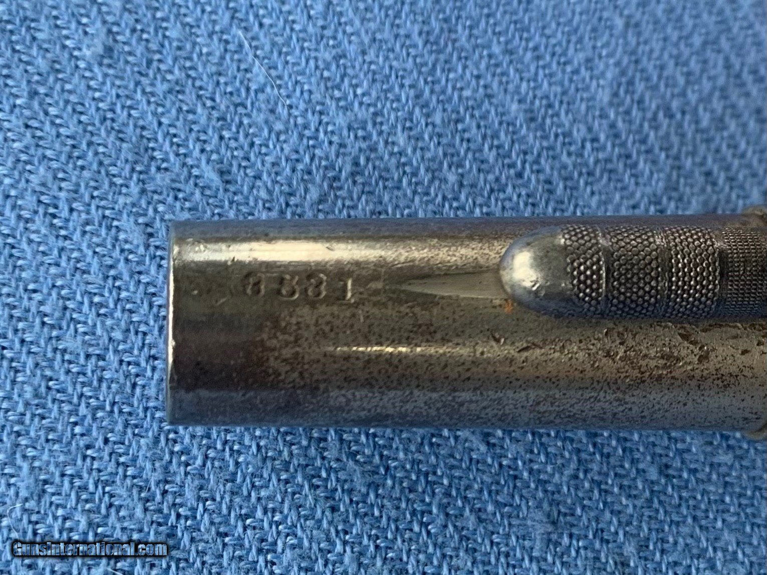 Description: Here's a Excellent Example of a Colt Single action etched panel, 41 cal. Revolver! Serial number 838 . Most all of the dull nickel finish still remaining mostly a dull nickel finish remaining. Original Walnut Burl grips are in excellent original condition! Most all of the original finish remaining on the grips . Etched panel dulling but all there and very visible. Bore and mechanics are in excellent condition. Gun locks up tight and is in excellent working condition. Please review my photos and email me with any questions? 3 day inspection as allways . Thank you for looking, Little Jo SOLD Antique: Yes Handgun Caliber: .41 Colt Special Manufacturer: Colt Model: 41 cal Serial Number: 838 Condition: Excellent |