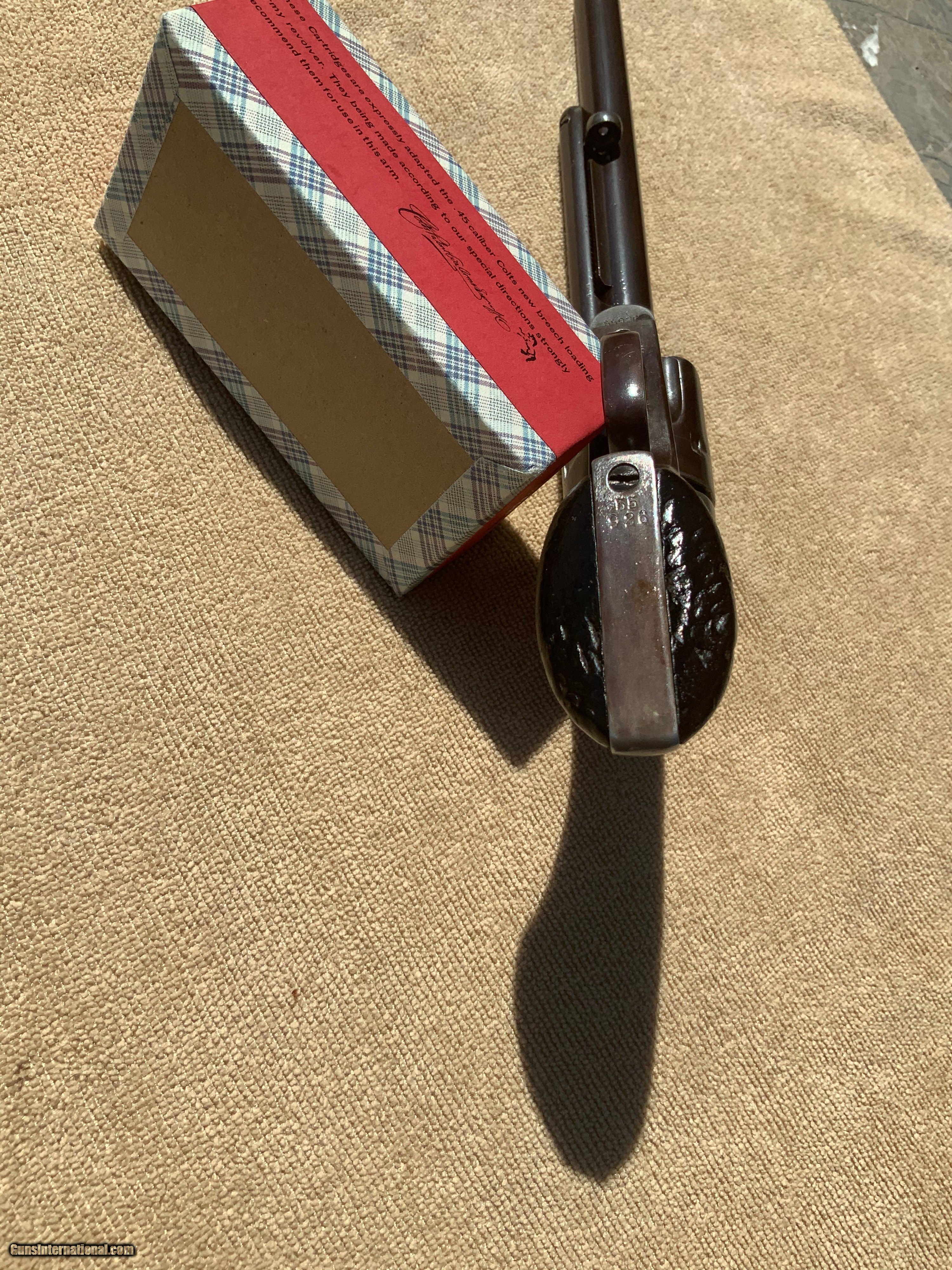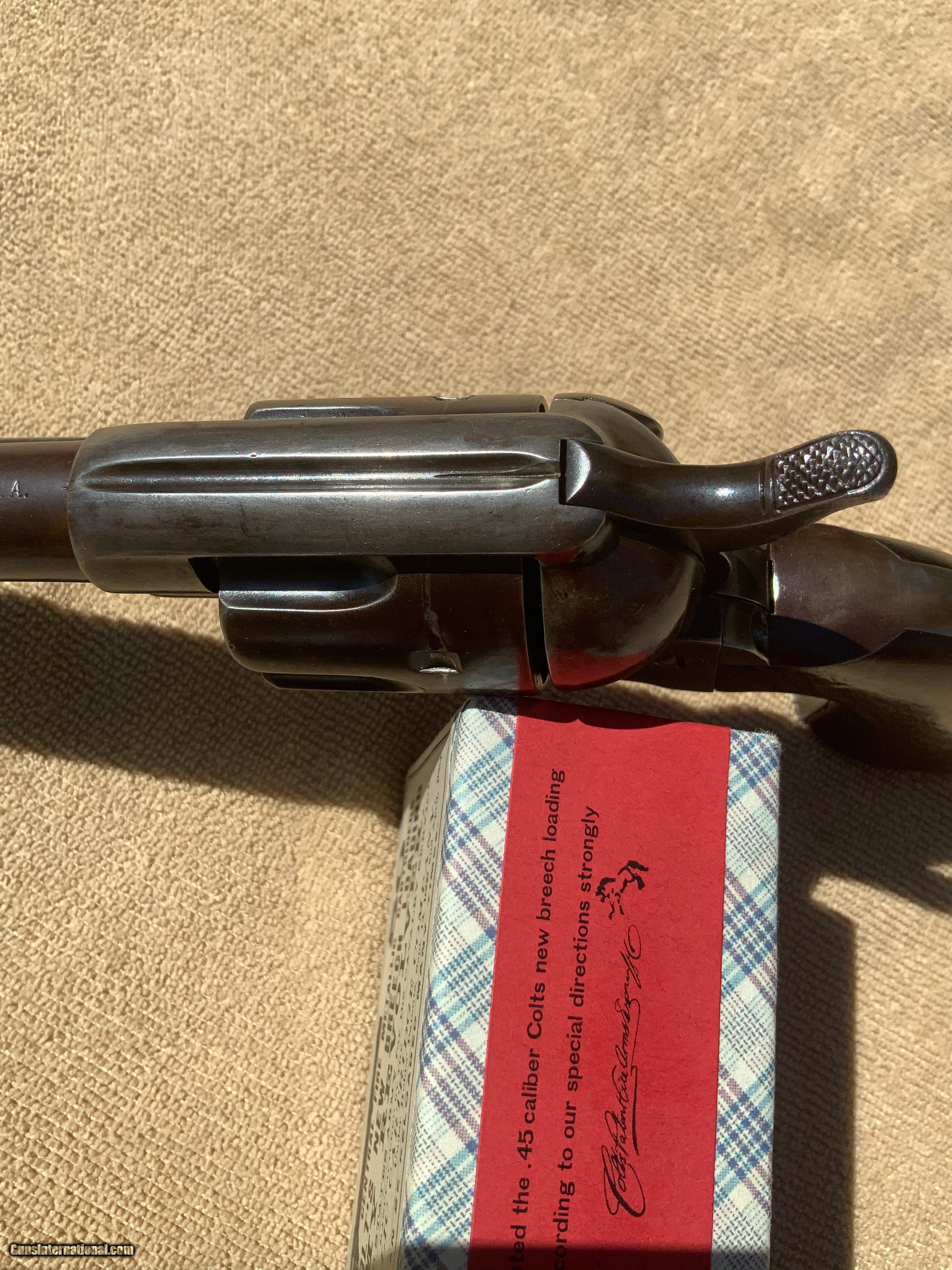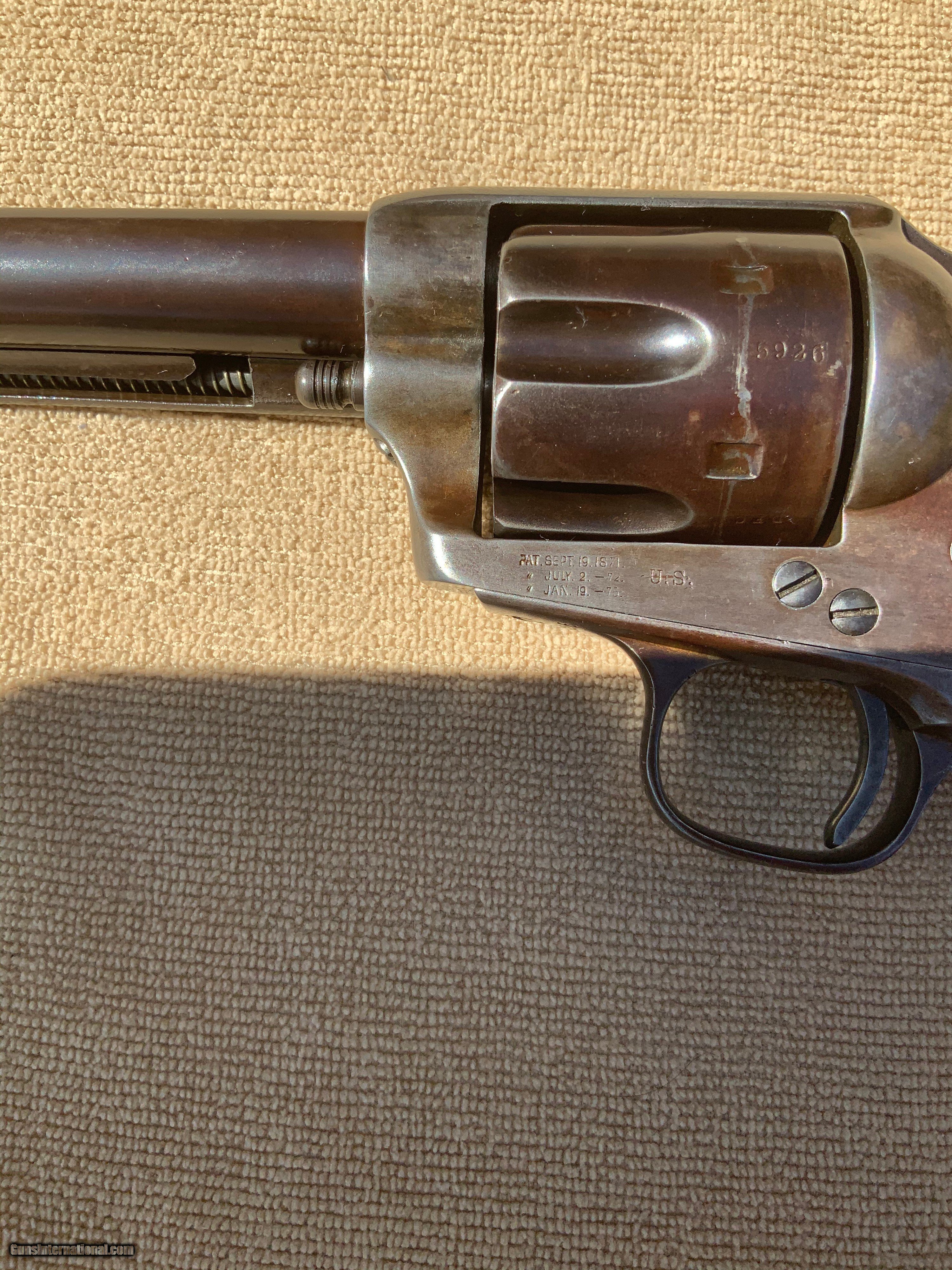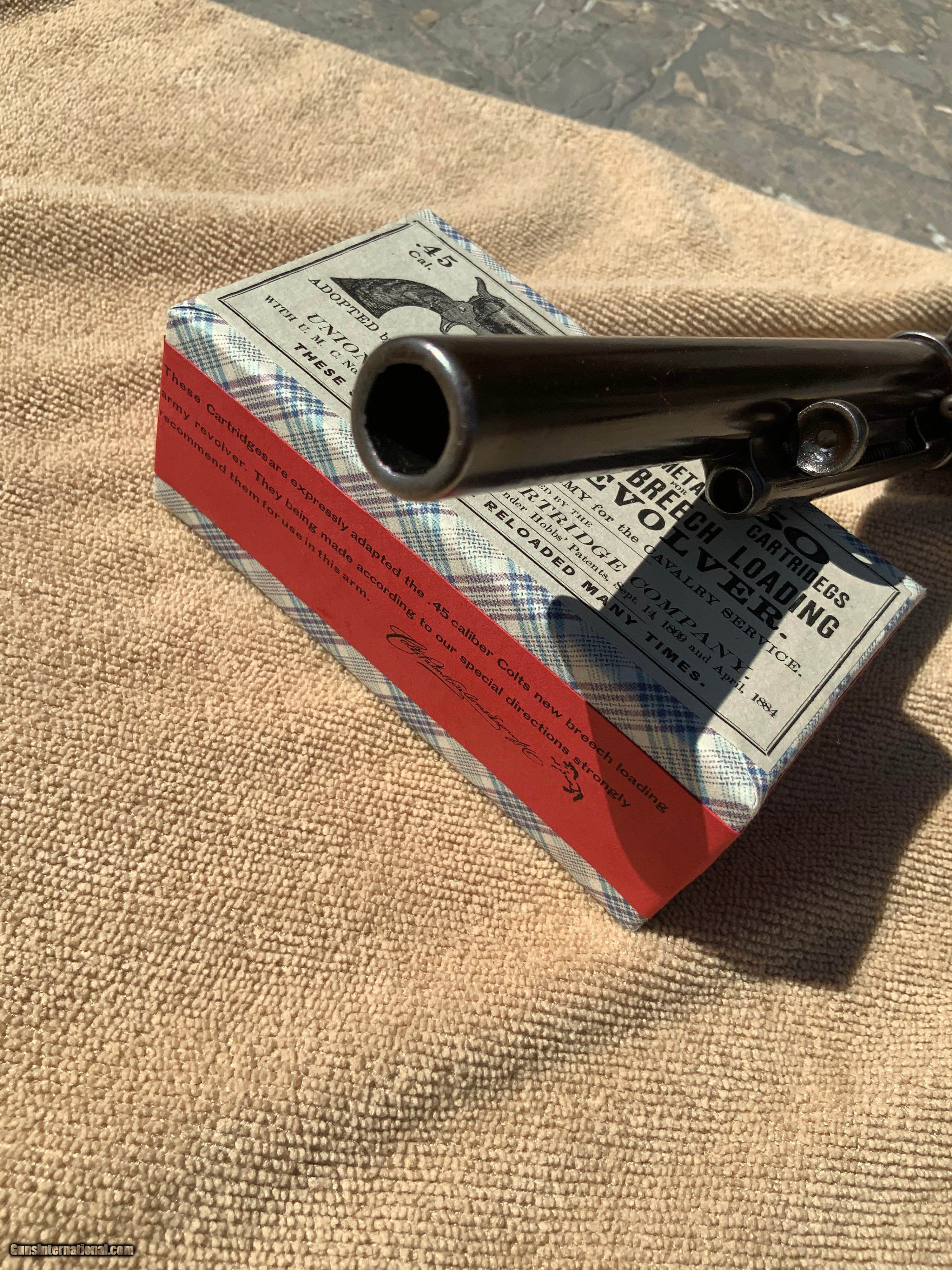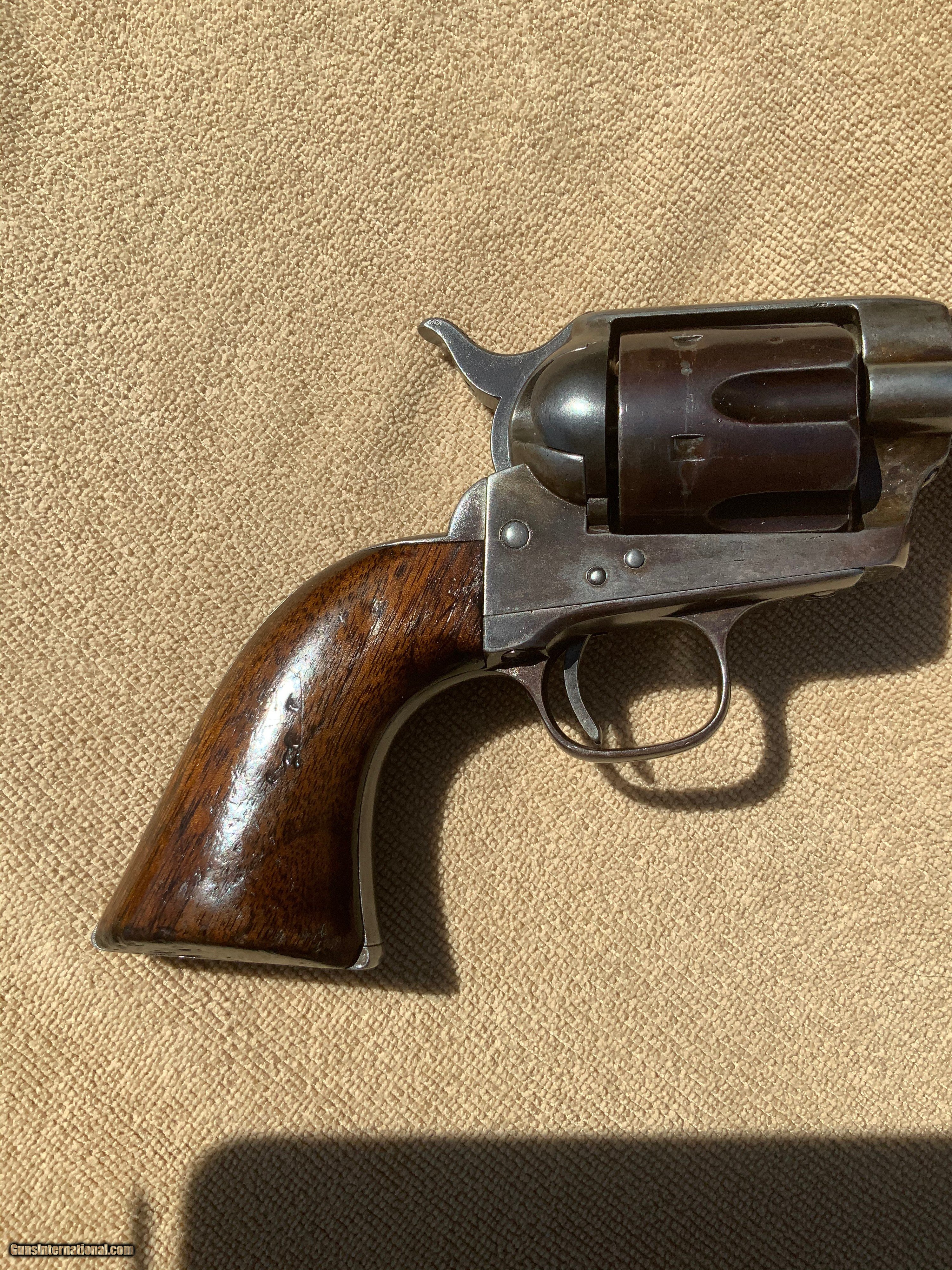 Description: HERE IS A VERY NICE COLT CAVALRY SINGLE ACTION ARMY REVOLVER SHIPPED IN 1880 PER THE ENCLOSED COLT LETTER ALL MARKINGS ON THIS GREAT COLT ARE SHARP AND CRISP, INCLUDING A VERY NICE CARTOUCHE ON THE GRIP. THE CONDITION OF THIS HANDSOME REVOLVER IS VERY GOOD AND THE GRIPS FIT NICELY. THE BORE AND RIFLING OF THE BARREL ARE VERY GOOD. THE REVOLVER HAS A NICE EVEN PATINA TO IT, VERY PRESENTABLE. ACTION IS PERFECT, NICE AND STRONG. A DECENT LETTERED EARLY U.S. MARKED SINGLE ACTION ARMY SERIAL NUMBER 55926 ALL MATCHING DFC AND PROOF ON BARREL THESE IMAGES ARE VERY DETAILED AND SHOW CONDITION ACCURATELY I AM A COLLECTOR SELLING FROM MY OWN COLLECTION. I TOOK THE PICTURES IN BRIGHT NATURAL SUNLIGHT. ANY QUESTIONS PLEASE FEEL FREE TO CONTACT ME SOLD pending payment SOLD Antique: Yes |