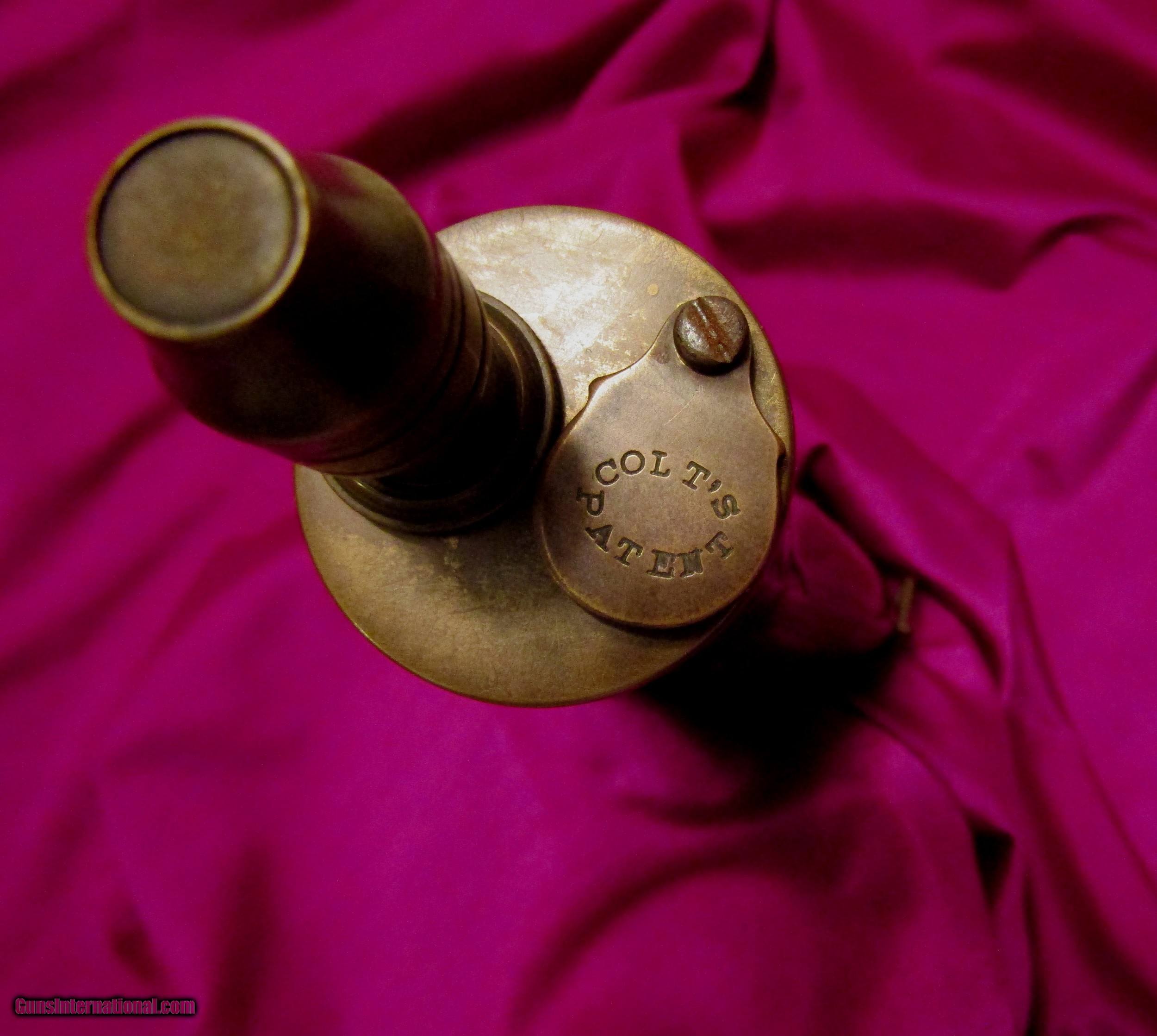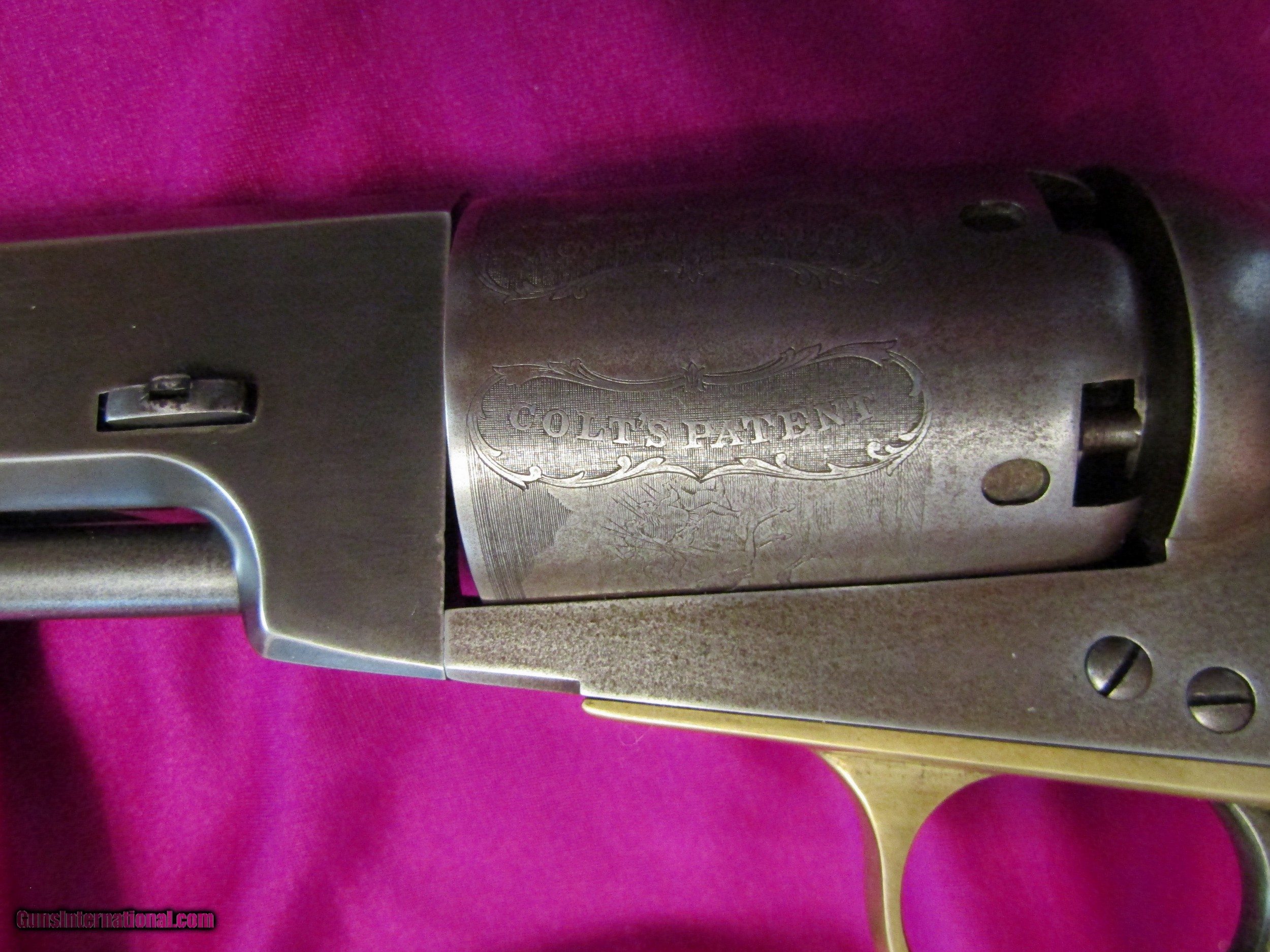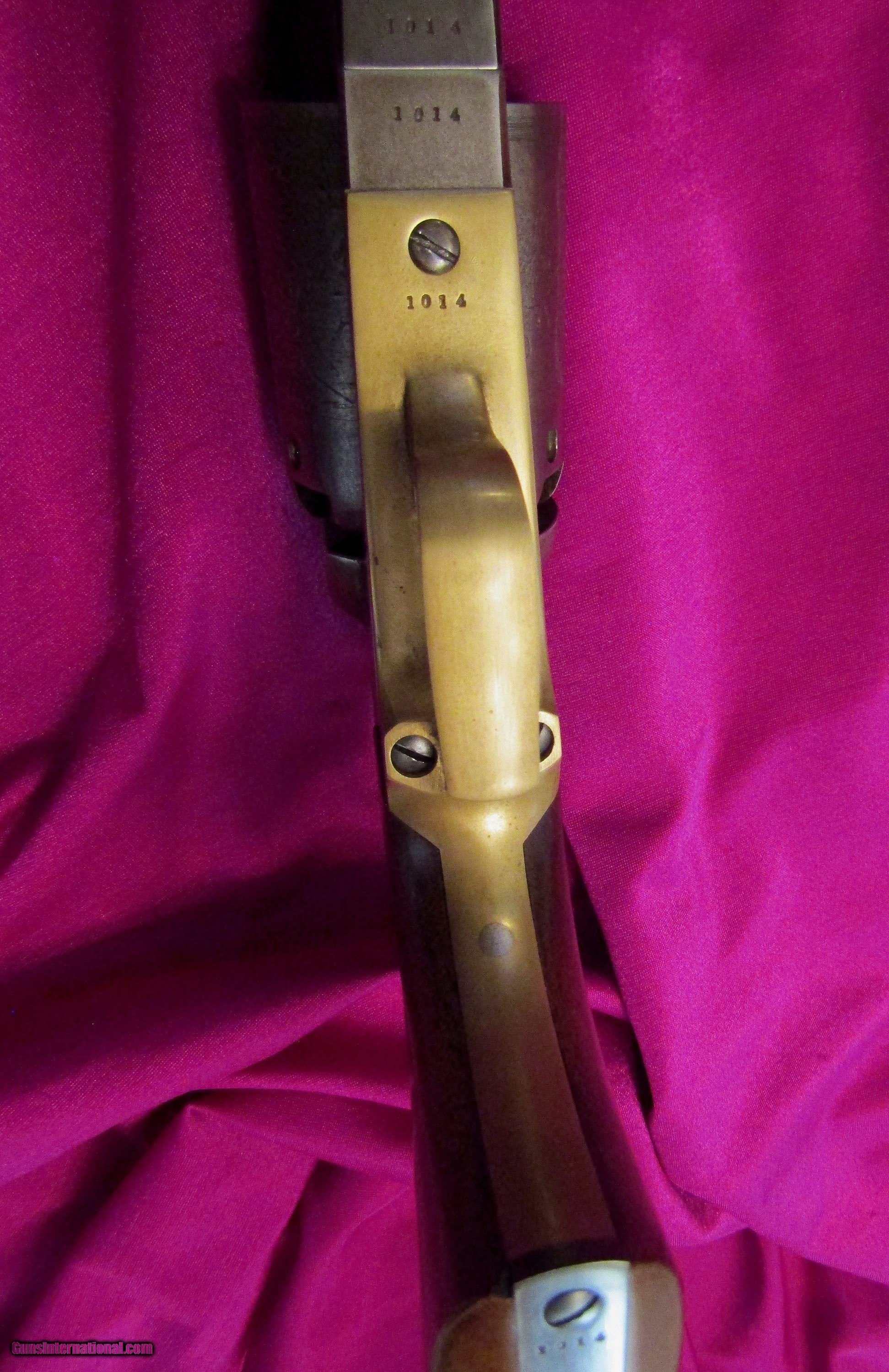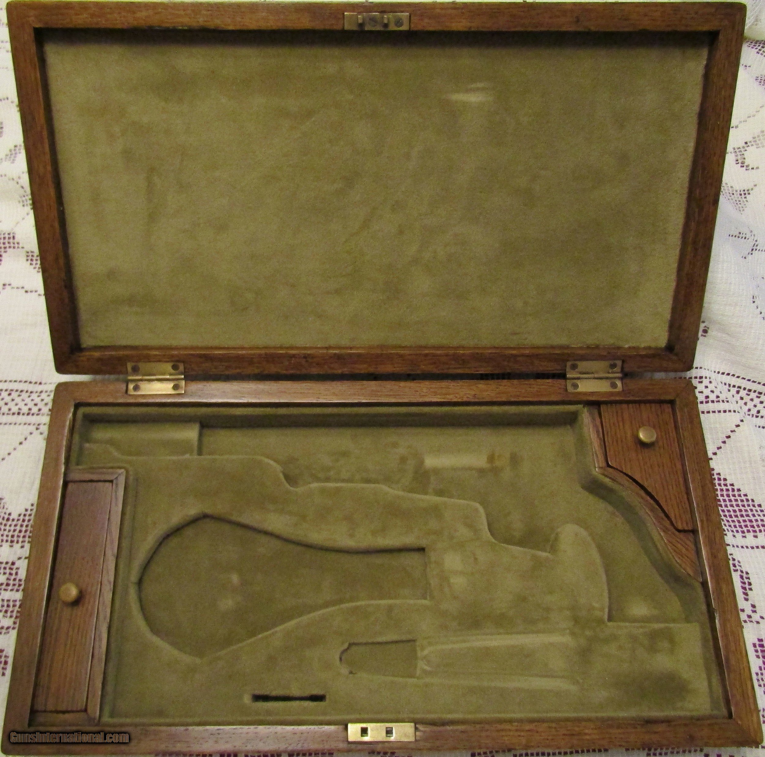 Description: In 1847 there were approximately 1100 Walkers made by Colt. It was a massive 44 caliber, 6-shot revolver. There were 1000 military models marked A, B, C, D and E Co. and 100 civilians. Of the 1100 Walkers made only about 10% are known to have survived. The Walker is considered to be the greatest prize of any Colt collection. The civilian Walkers are the most rare of all because only 100 were built. Because of high demand and only a few surviving Walkers, some of the best gunsmiths have made very accurate copies and some of the biggest collectors own them to fill that important spot in their collection. This Walker is a tremendously accurate COPY of a civilian Walker, cased and with accoutrements. It has the correct size and style serial numbers in all the correct places, including the cylinder where it correctly appears at the end of the cylinder and not between the two panels on the side of the cylinder. The only civilian Walkers that have the serial numbers between the panels would be the Walkers built with military-refused parts. This Walker, case and accoutrements are very similar to the Danish Sea Captain Walker that recently sold for $1.8 million. I have never seen a cased Walker outfit for sale that is as accurately built as this one. It is easy to see no expense was spared in the building. It has the original-style Colt bluing and the cylinder was left in the white just as it should be. I have dealt in antiques for years and can see the case was built with antique oak wood. This is a great opportunity to own a truly impressive and amazingly accurate Walker at a fraction of the cost of an original. SOLD Antique: Yes |
