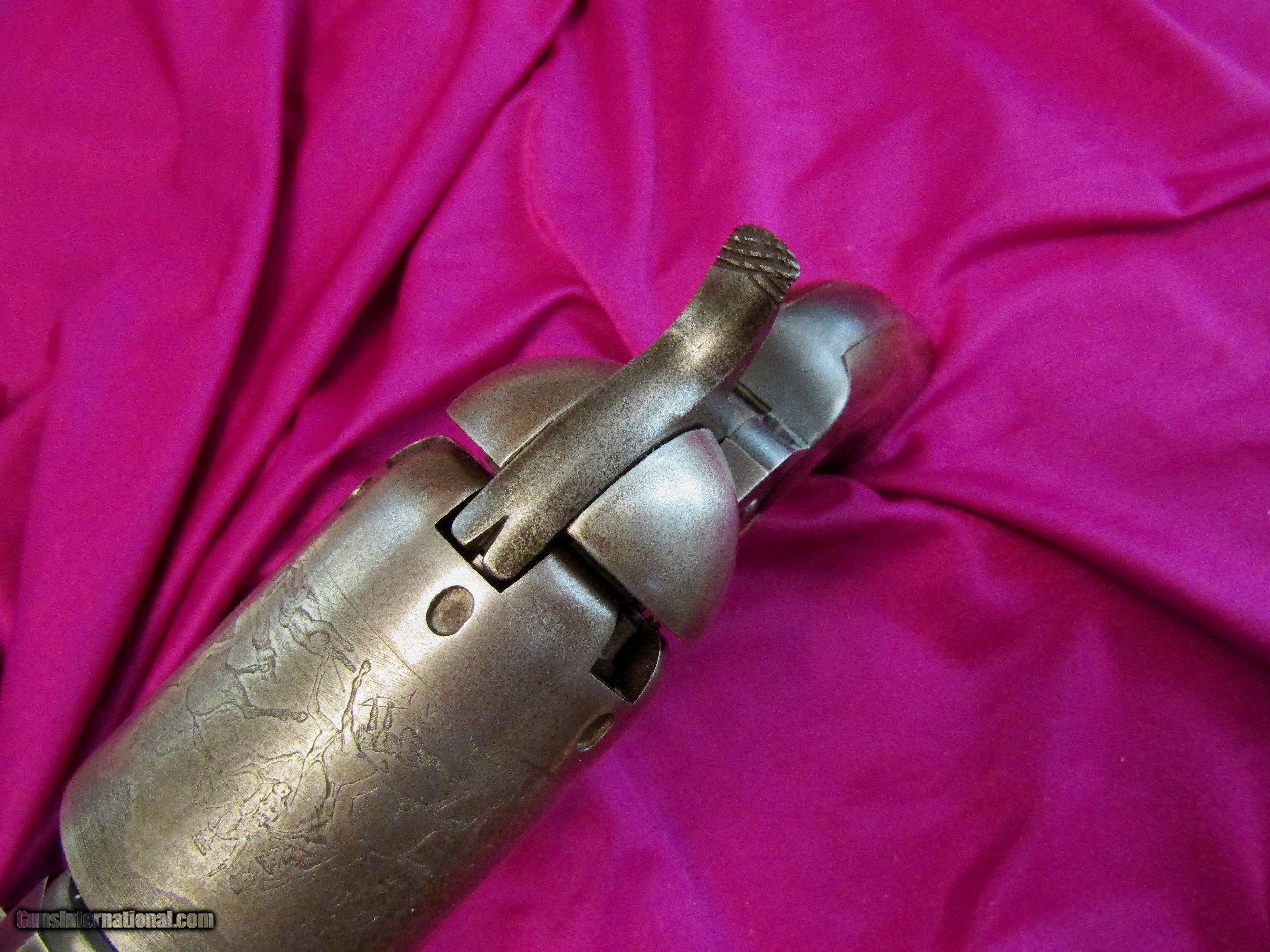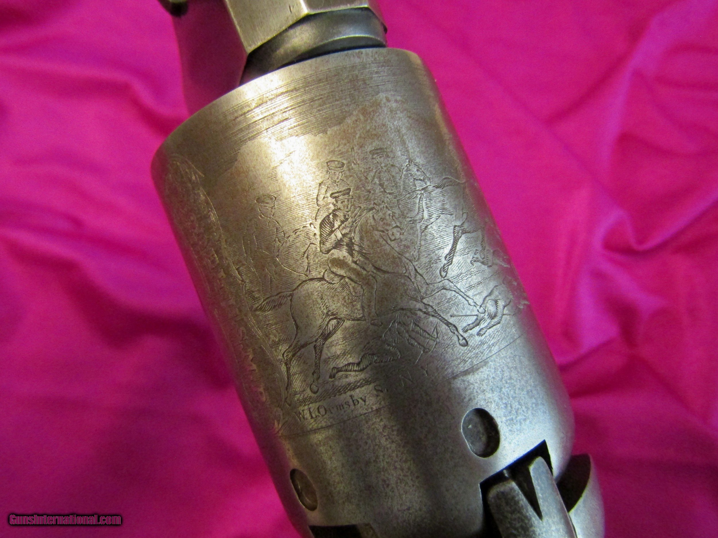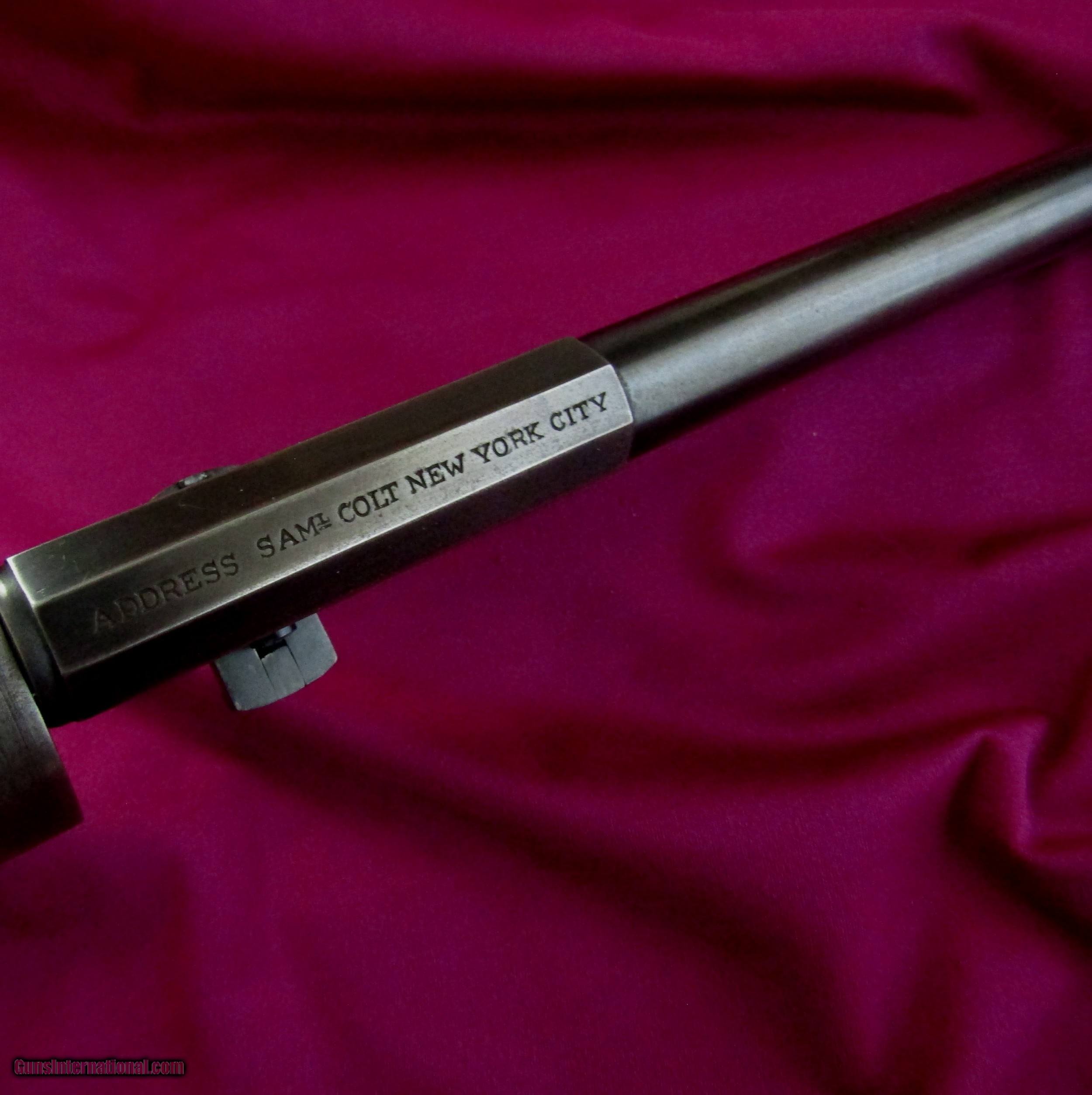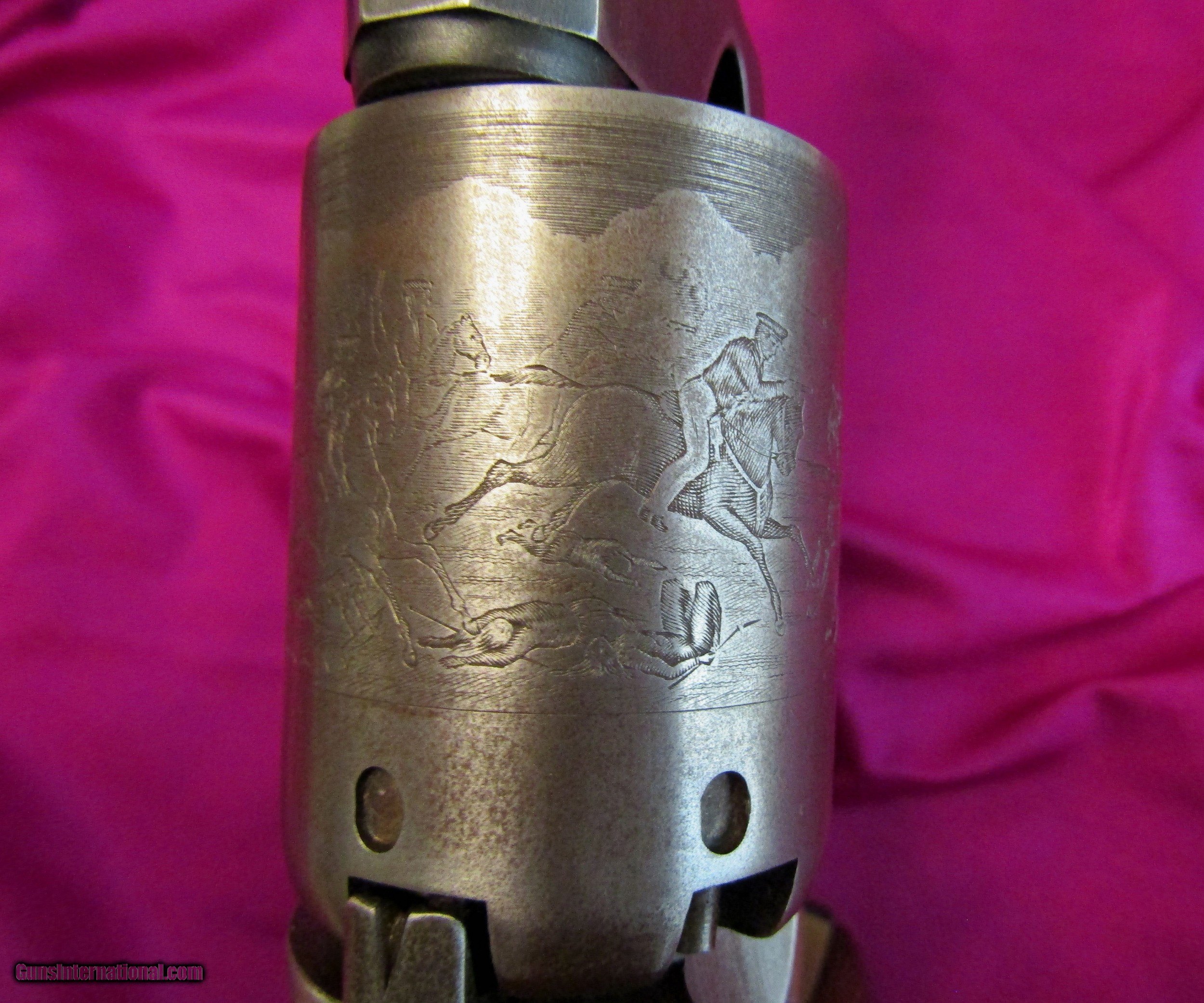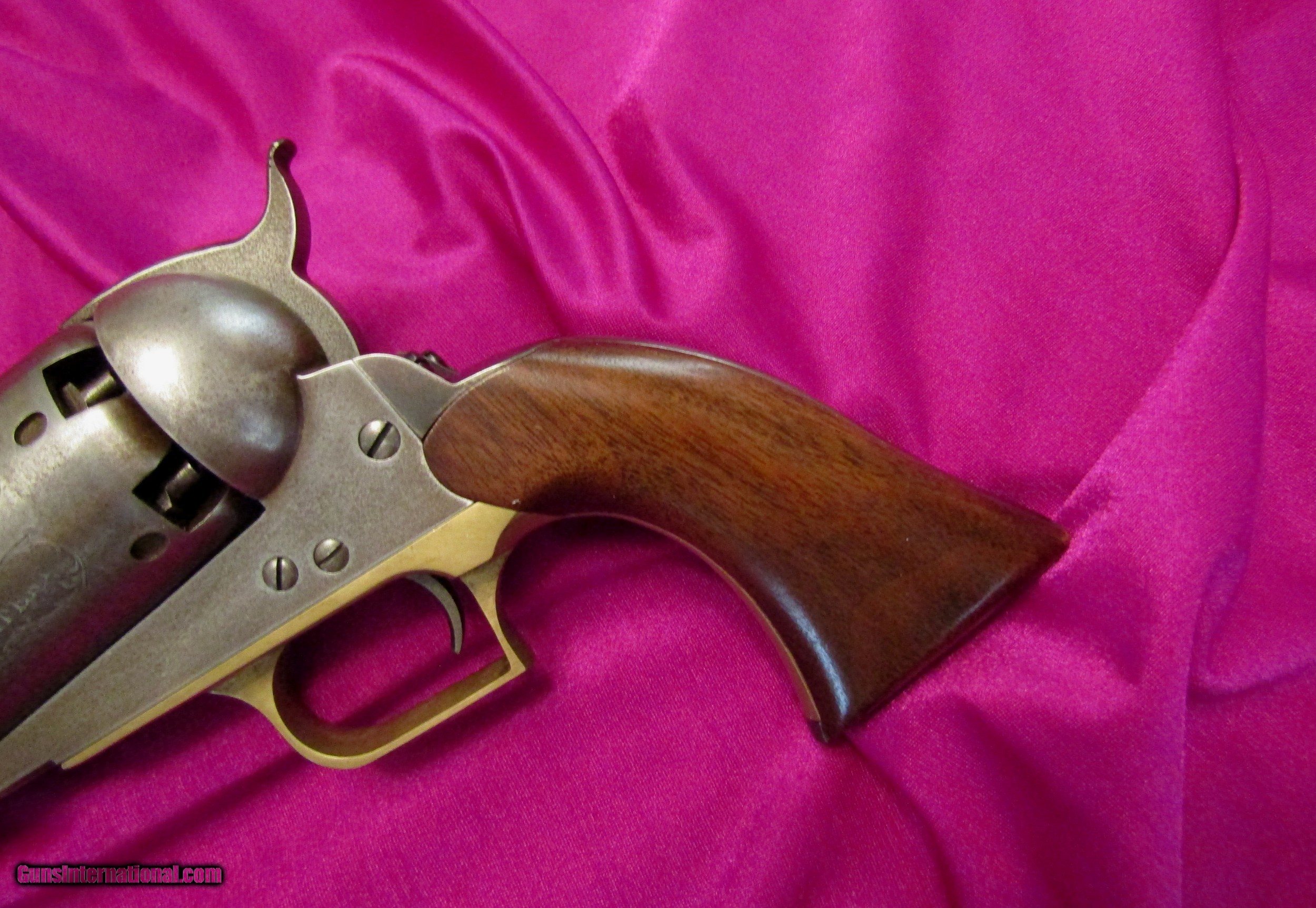 Description: In 1847 there were approximately 1100 Walkers made by Colt. It was a massive 44 caliber, 6-shot revolver. There were 1000 military models marked A, B, C, D and E Co. and 100 civilians. Of the 1100 Walkers made only about 10% are known to have survived. The Walker is considered to be the greatest prize of any Colt collection. The civilian Walkers are the most rare of all because only 100 were built. Because of high demand and only a few surviving Walkers, some of the best gunsmiths have made very accurate copies and some of the biggest collectors own them to fill that important spot in their collection. This Walker is a tremendously accurate COPY of a civilian Walker, cased and with accoutrements. It has the correct size and style serial numbers in all the correct places, including the cylinder where it correctly appears at the end of the cylinder and not between the two panels on the side of the cylinder. The only civilian Walkers that have the serial numbers between the panels would be the Walkers built with military-refused parts. This Walker, case and accoutrements are very similar to the Danish Sea Captain Walker that recently sold for $1.8 million. I have never seen a cased Walker outfit for sale that is as accurately built as this one. It is easy to see no expense was spared in the building. It has the original-style Colt bluing and the cylinder was left in the white just as it should be. I have dealt in antiques for years and can see the case was built with antique oak wood. This is a great opportunity to own a truly impressive and amazingly accurate Walker at a fraction of the cost of an original. SOLD Antique: Yes |