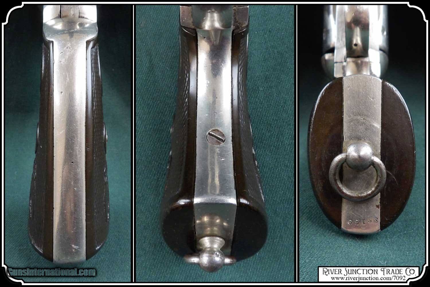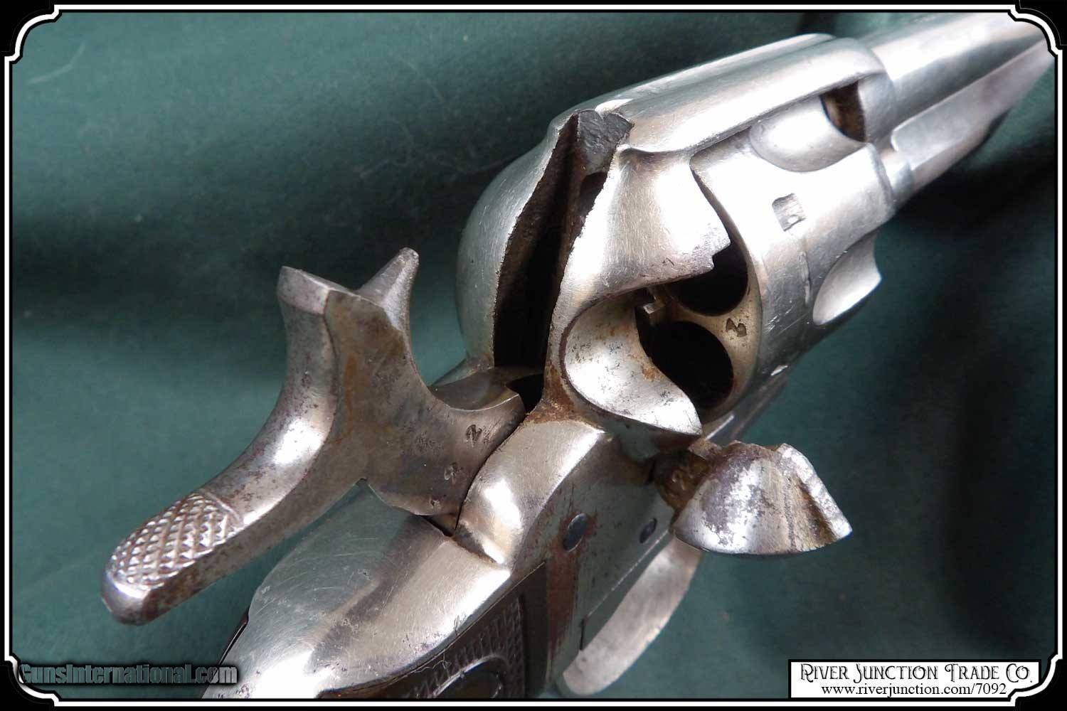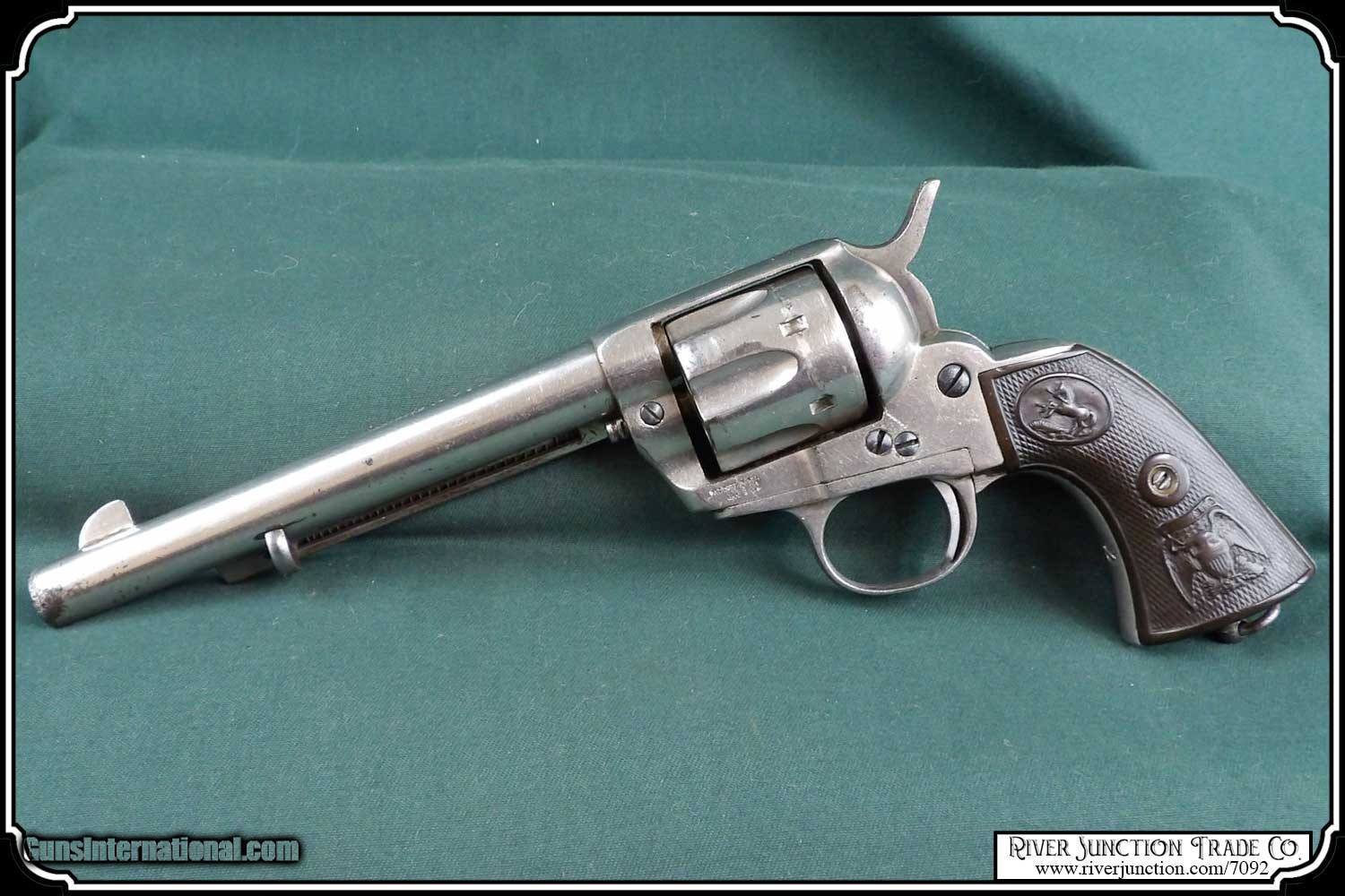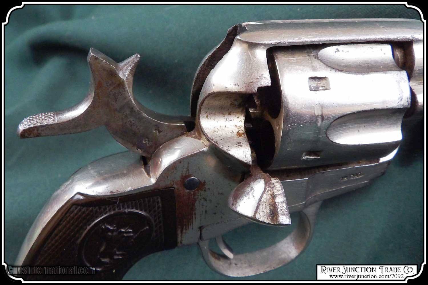 Description: There was a time when the American West was a wide and wild country, shaped not by polished treaties but by the grit of frontier justice and the cold steel of a six-shooter. This Colt Copy revolver, serial numbers 6122 & 38159, hails straight from that era—bearing the soul and substance of an age when a man’s word rode side by side with his sidearm. Chambered in .38 caliber, this single-action beauty boasts a 5 1/2 inch barrel, a standard sight setup, and the kind of clean nickel finish that only a true survivor could carry through the decades. With original Colt labeling clearly stamped, the prancing pony and eagle grip design proudly declare its pedigree. There’s no mistaking the authenticity in those deep cuts and visible checkering—the kind that’s lasted through saloon shootouts, prairie crossings, and years of respectful ownership. The original nickel finish glistens like a tin star under the desert sun, only lightly kissed by age. And though there’s a whisper of powder frosting in the bore, the rifling remains strong and ready—proof of a firearm that’s been cared for with reverence. Mechanically, it stands tall: tight lockup, perfect timing, and a hammer spring with the kind of strength frontier folk would’ve relied on. Whether you're a collector of Western heritage or a lover of classic American craftsmanship, this revolver embodies the rugged determination and artistry of yesteryear. Key Features: