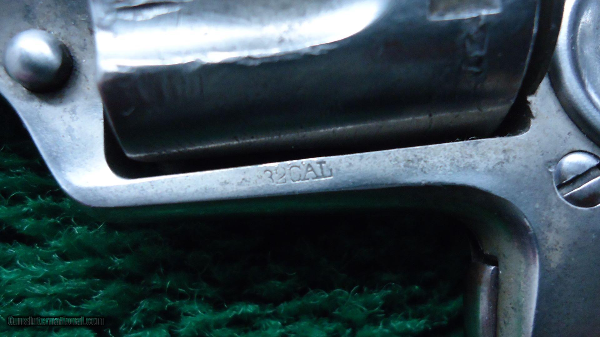 Description: 5-shot 32 RF caliber with short cylinder flutes. 2-1/4 inch round barrel. Full nickel finish with wear to the edges. 2-piece wood grips with some original varnish remaining. Traces of fire blue on hammer. Spur trigger. Nice functioning action. Good bore with visible rifling. Early gun with all matching serial number 357. These were made 1873-1884. Leroy Merz Antique Firearms specializes in antique and vintage Winchesters and other fine American firearms. Since 1965 Mr. Merz has taken part in the world of firearms and has been a contributor to many well known reference books. Just recently we mailed the 128th edition of our privately-published catalog. We have hundreds of additional guns in every price range at our home online. Search for Merz Antiques in google. SOLD Antique: Yes |